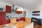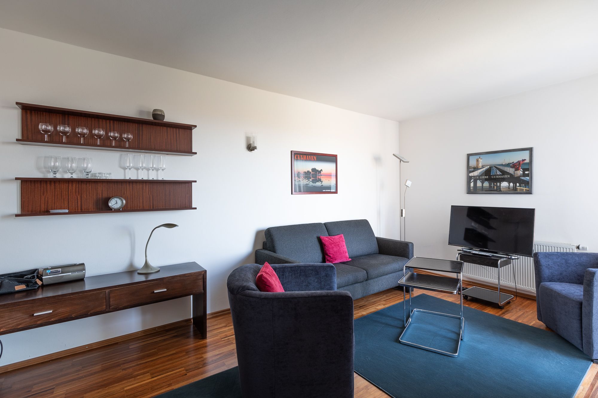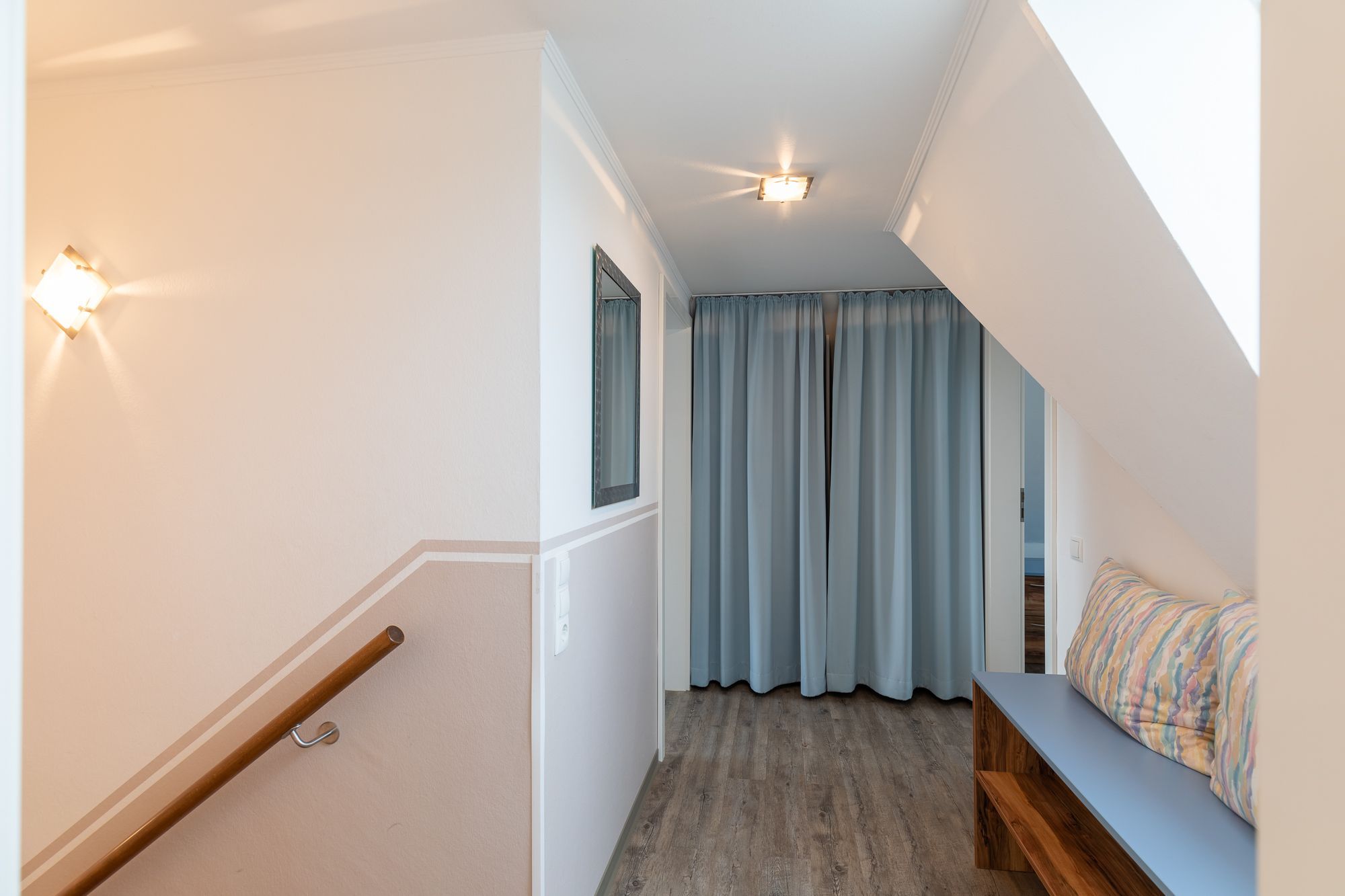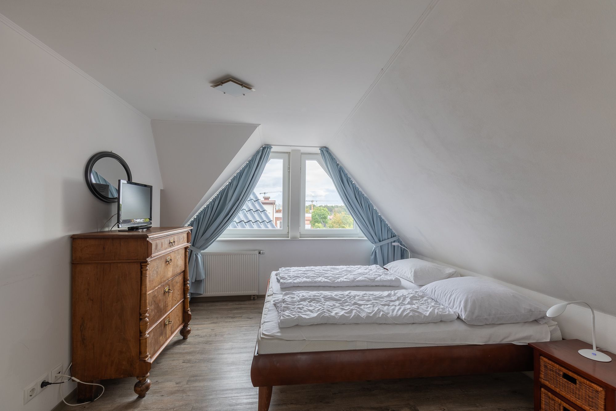 Schöne 3 Raum Wohnung mit einer Größe von ca. 70 m² Wohnfläche im 2. OG (Fahrstuhl im Haus), ist komplett für bis zu 4 Personen ausgestattet. 2 Schlafzimmer jeweils mit Doppelbett (ein Schlafzimmer verfüg über ein TV), großzügiges Wohnzimmer mit Einbauküche (Geschirrspüler, Ceranfeld, Backofen, Mikrowelle, Kühlschrank, Wasserkocher, Toaster und Kaffeemaschine) und Zugang zum Balkon (west), Essplatz, gemütliches Sofa, 2 Sessel und Flatscreen TV, innenliegendes Bad mit Dusche, WC, Fön und Handtuchheizkörper, im Dachgeschoss Tageslichtbad mit Dusche, WC und Handtuchheizkörper. Die Wohnung verfügt über eine Treppe in das Obergeschoss. Vom Balkon (mit Balkonmöbeln ausgestattet) aus haben Sie direkten Blick auf die Nordsee und das Wattenmeer.