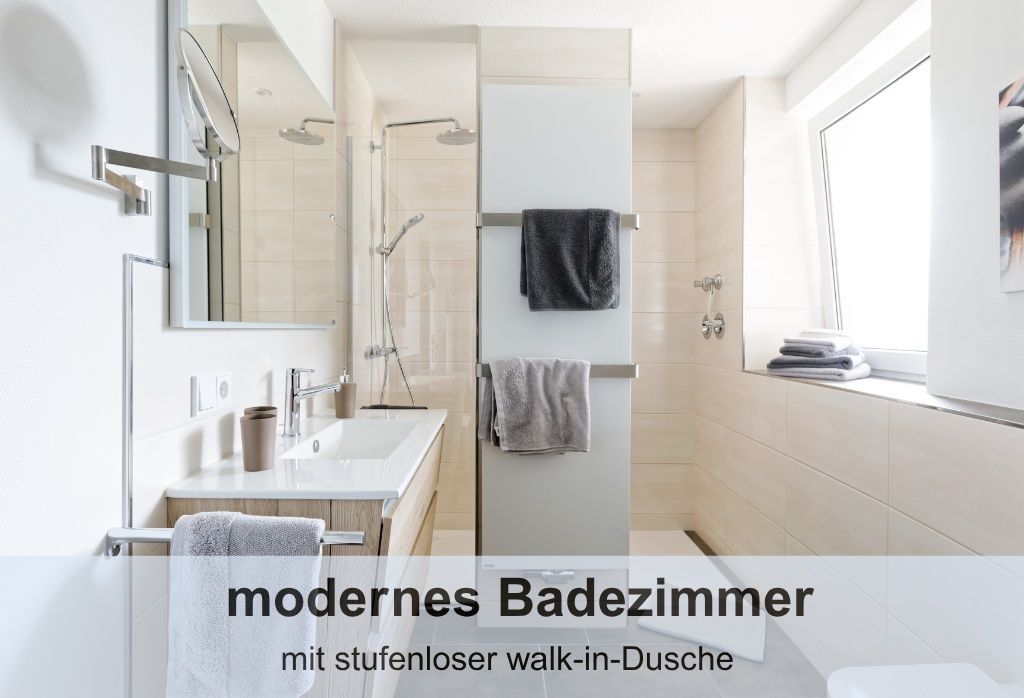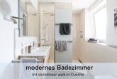 Das großzügige Badezimmer verwöhnt Sie mit einer ebenerdigen Walk-in-Dusche, einem großen Waschbecken mit beleuchtetem Spiegel, Tageslichtfenster und stilvollen Details. Die Glasabtrennung, durchdachte Ablagen und stimmungsvolle Beleuchtung sorgen für echtes Spa-Feeling.