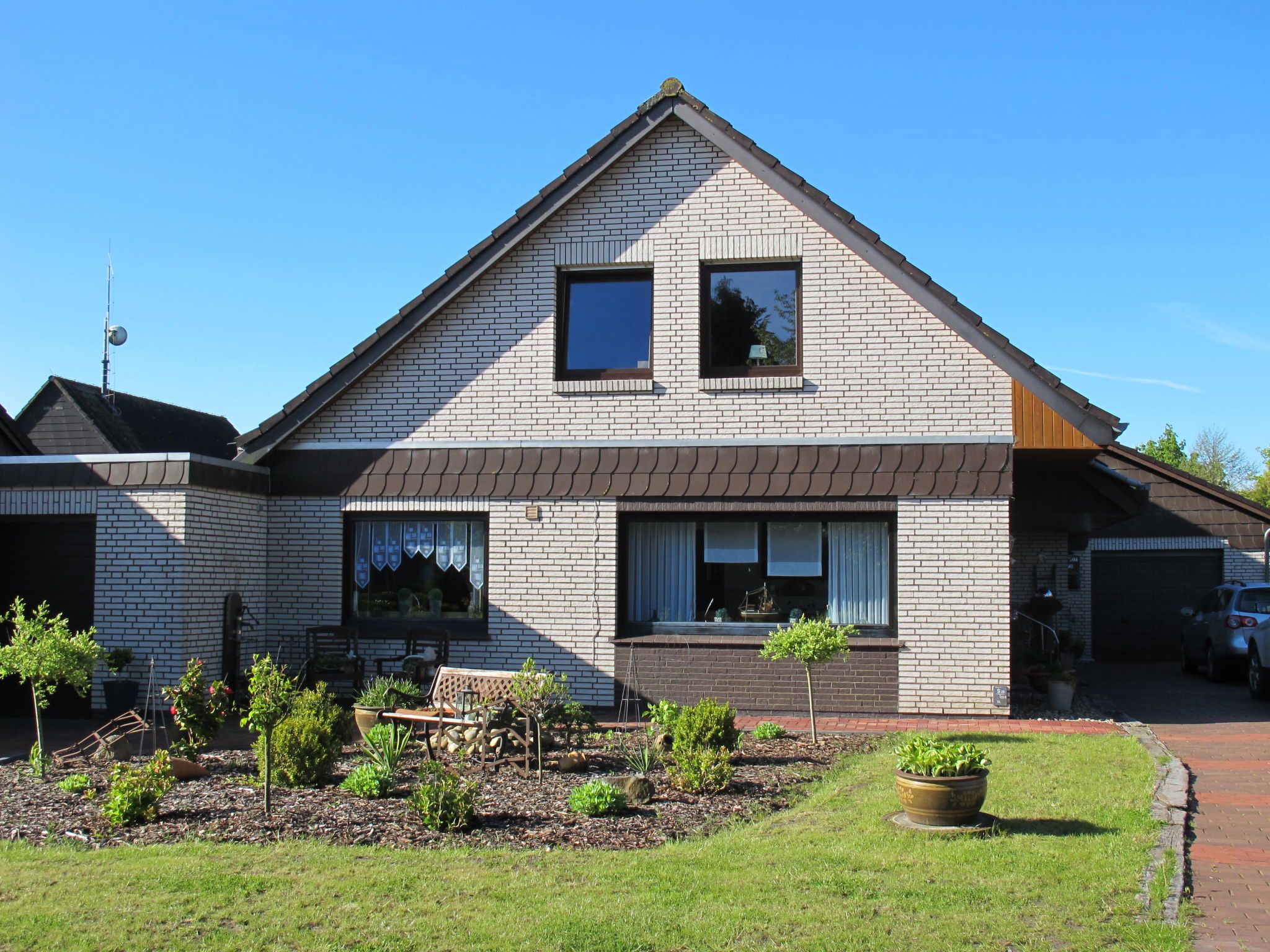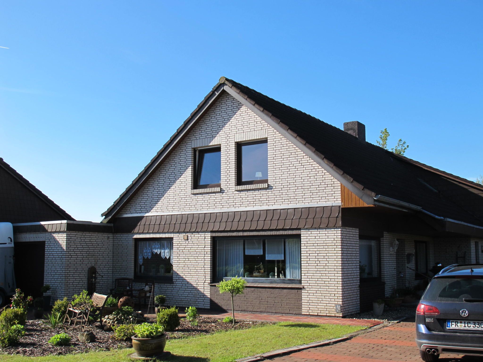 Zweifamilienhaus. Im Ort, 500 m vom Zentrum von Ditzum, 3 km vom Meer, 650 m vom Kanal. Zur Alleinbenutzung: kleiner Garten mit Rasen. Im Hause: Zentralheizung. Parkplatz (für 2 Autos) beim Haus. Einkaufsgeschäft 500 m, Restaurant 500 m, Bäckerei, Café, Bushaltestelle 350 m, Bahnstation Leer 22 km, Fähre Ditzum 750 m, Sandstrand Norddeich 88 km, Freibad 20 km, Hallenbad 23 km. Dollart 3 km.