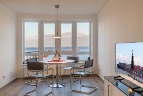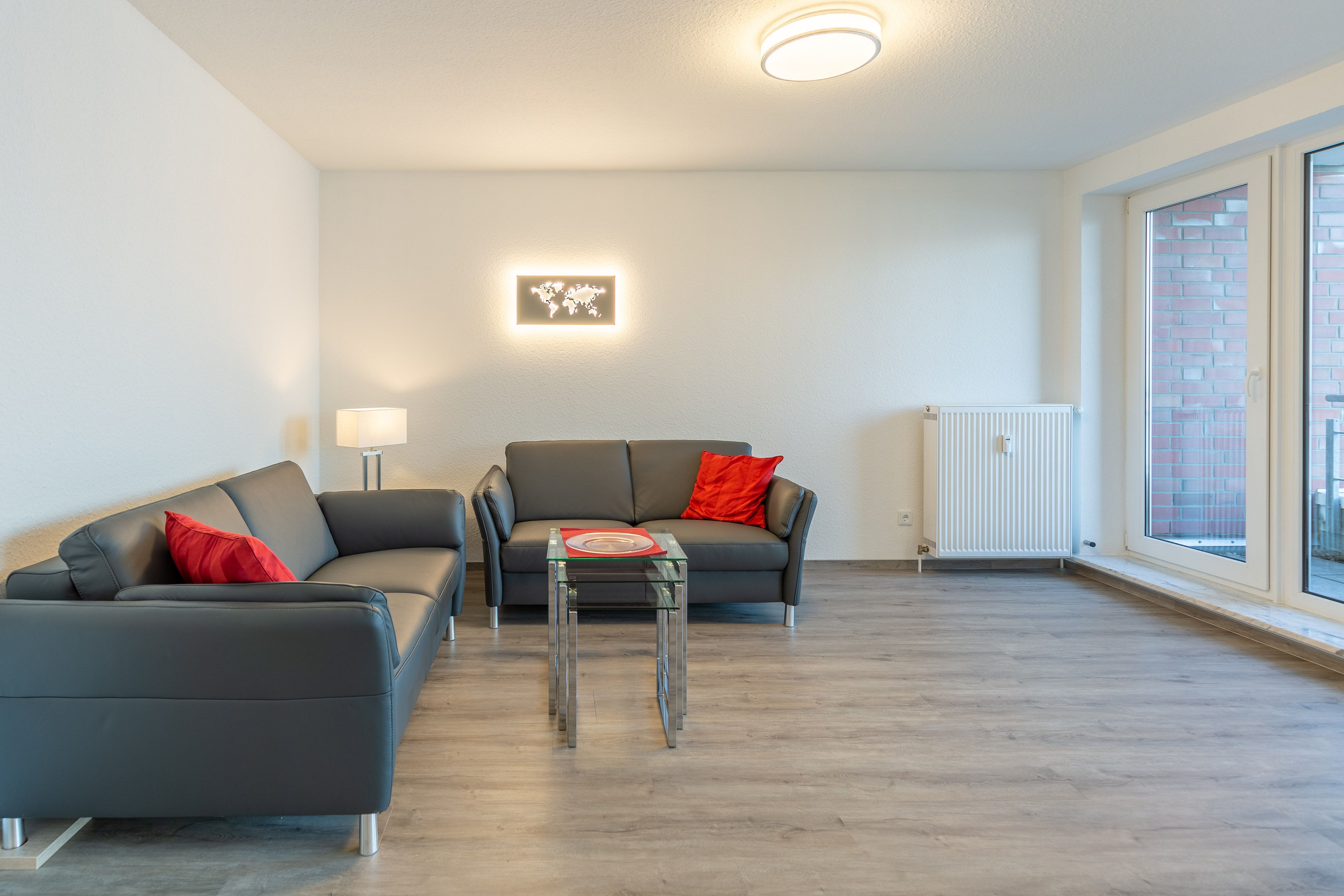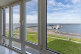 Moin, moin von der Waterkant! Ferienwohnung 27 im Haus Seeterrassen besticht durch eine moderne Ausstattung und einen traumhaften Blick auf den Weltschifffahrtsweg, die Elbe und den Fährhafen. Der Ausblick bietet Erholung und Erlebnis zugleich. Beobachten Sie Kreuzfahrtschiffe, Kutter und Großsegler direkt aus Ihrer komfortablen Ferienwohnung. Auf 70 m² bietet Ihnen die 2-Zimmer-Ferienwohnung mit separatem Schlafzimmer ausreichen Platz für 2 Personen.