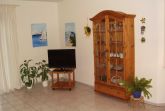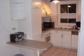 Offener Wohn- und Essbereich mit gemütlicher Couchgarnitur und Flachbild-TV, Essgruppe mit Bestuhlung, Einbauküche mit Spülmaschine, Kühlschrank mit Gefrierfach, VierPlattenElektroherd mit Backofen und allen erforderlichen Elektrogeräten.