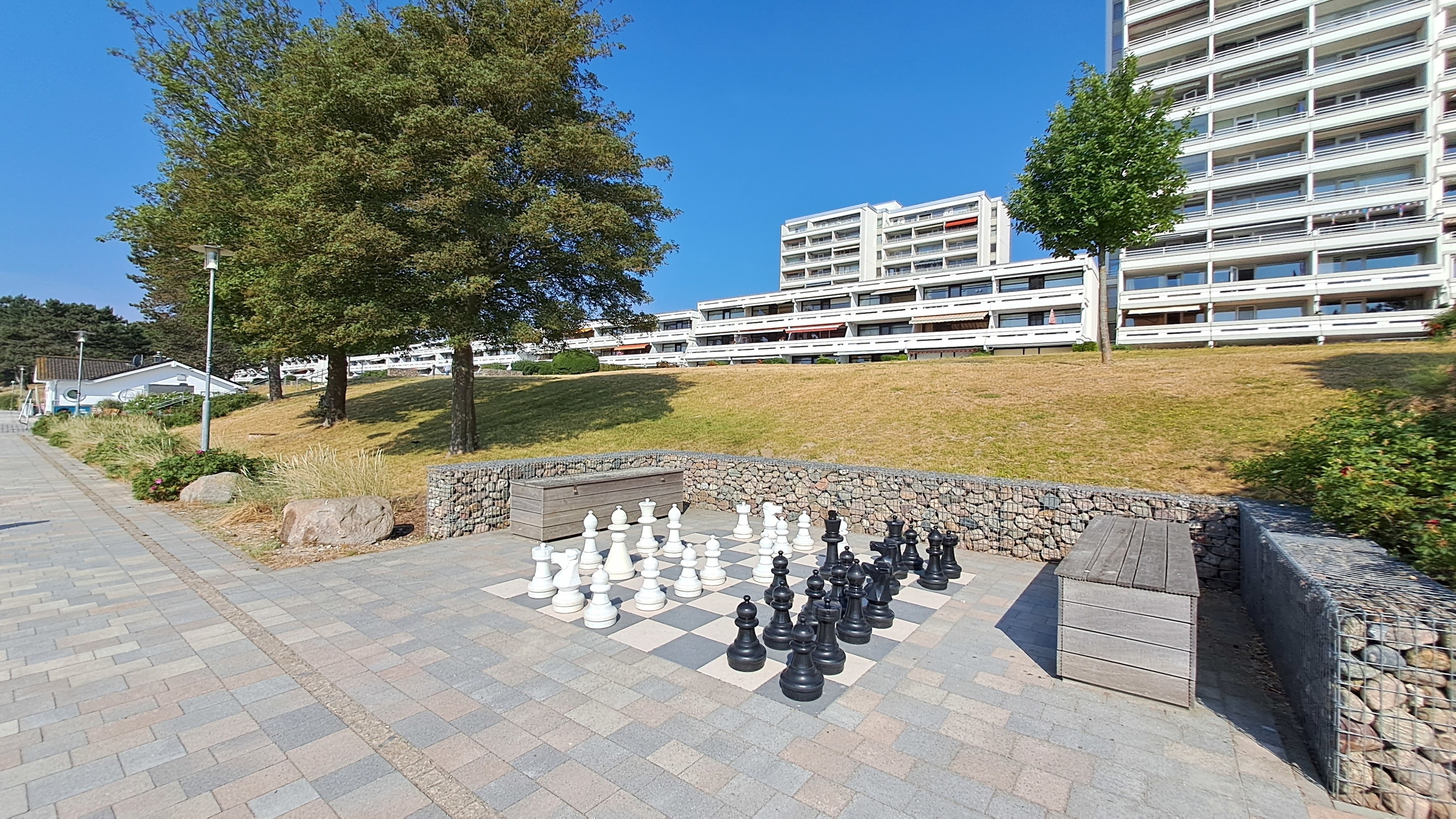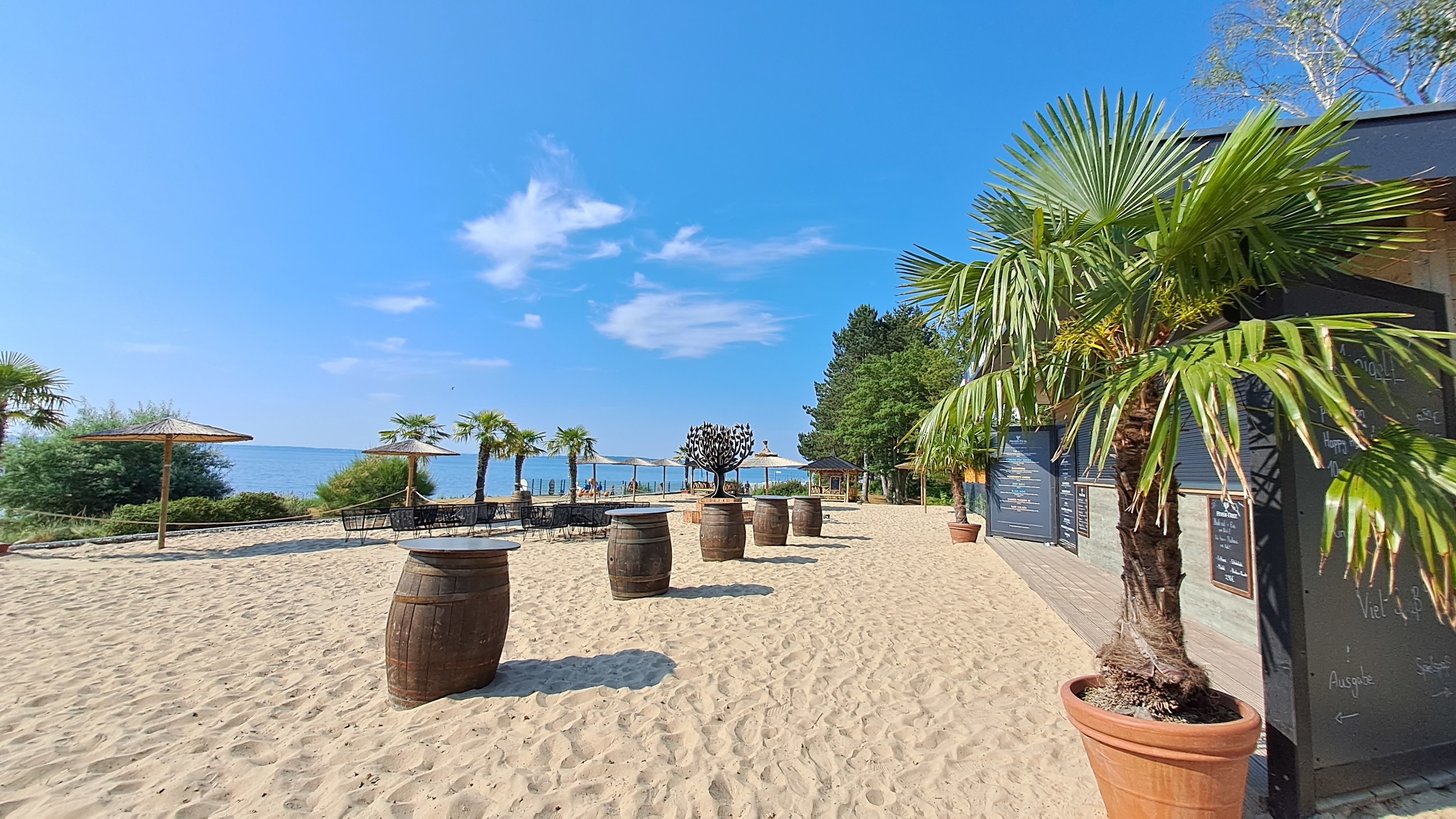 Der offen gehaltene WOHN- und ESSBEREICH ist modern eingerichtet. Vom Wohnbereich mit Sofa und 2 Sesseln genießen Sie den Blick aufs Meer. Für Unterhaltung sorgen Flachbild-TV, DVD-/CD-Player und Radio. Esstisch mit 4 Stühlen.