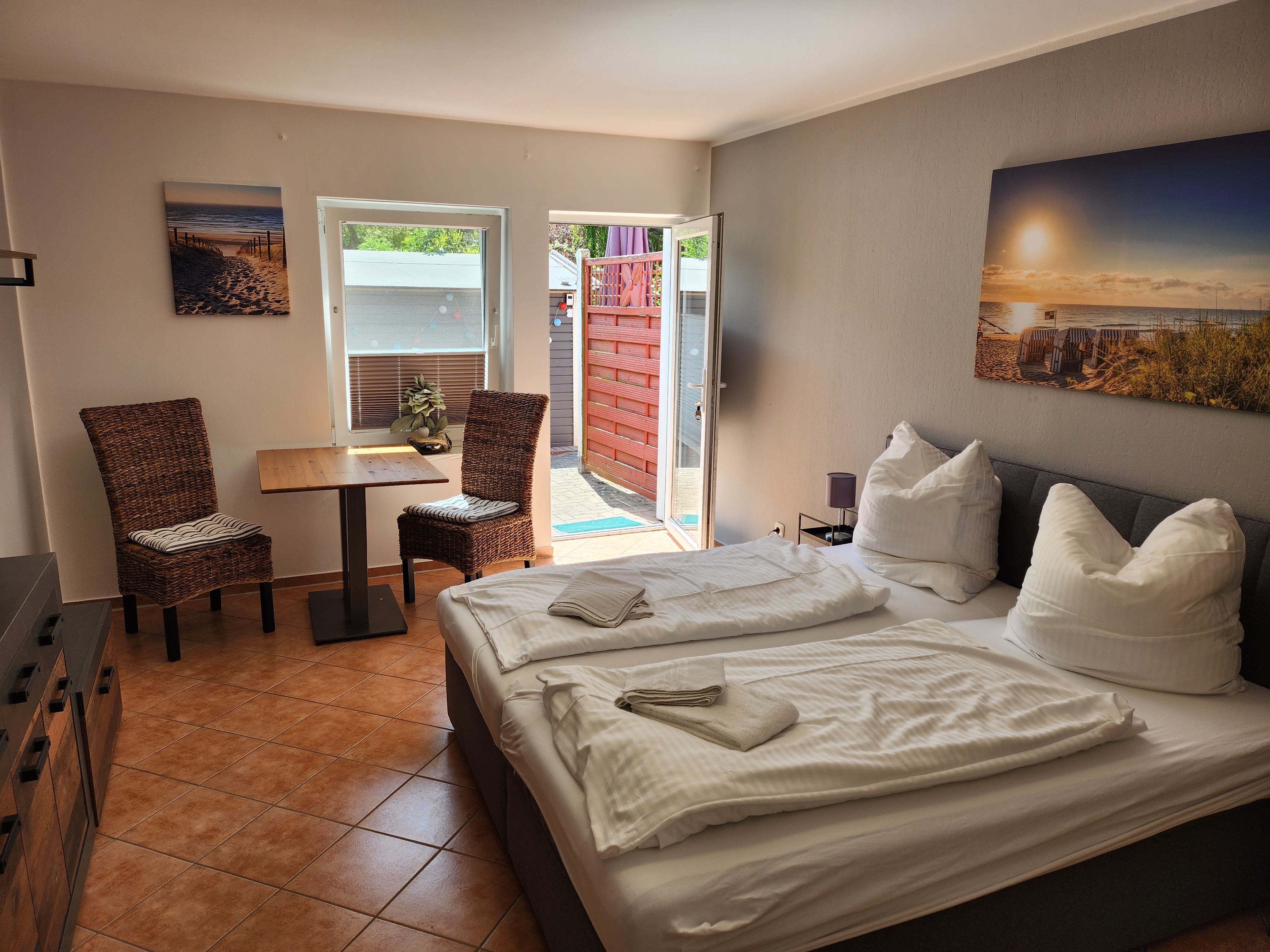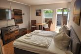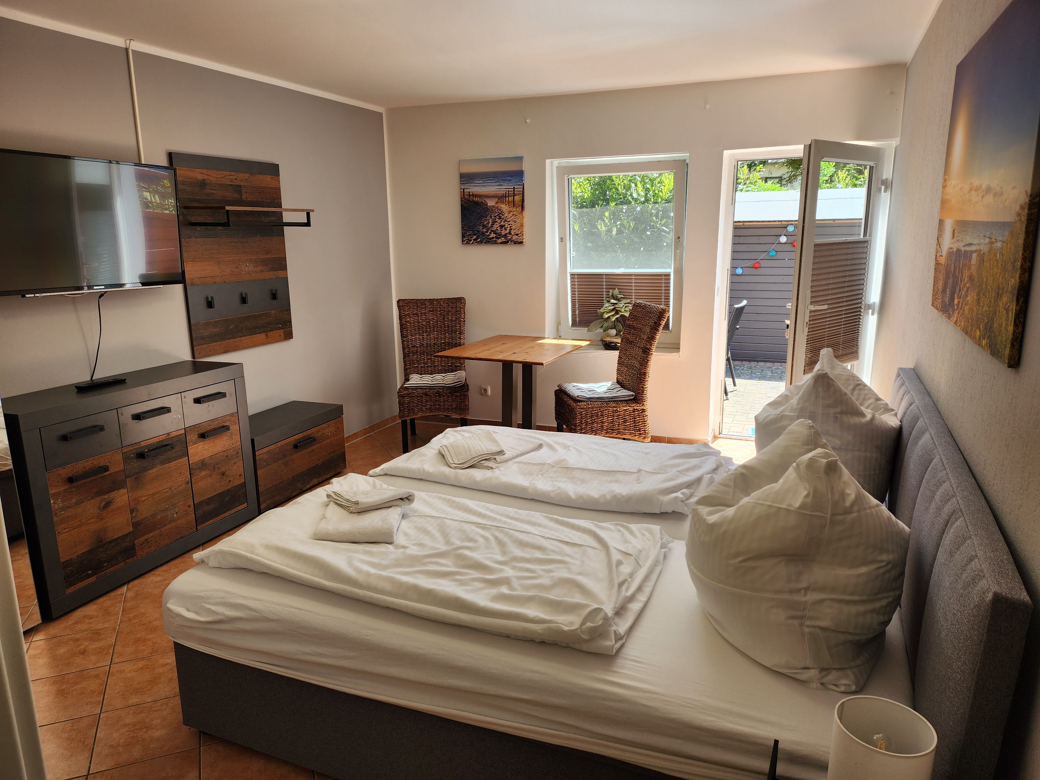 Wir bieten Ihnen in unserer Pension Doppelzimmer, teilweise mit seperater Küche Bad, und Terrasse an.