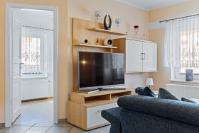 Die drei Ferienwohnungen sind umfangreich und komfortabel ausgestattet und bieten Platz für 2 - 4 Gäste und jeweils ein Kleinkind. Jede Wohnung verfügt über einen Terrassenbereich mit Strandkorb und der Garten bietet viel Platz zum Erholen, Spielen, Draußensein.