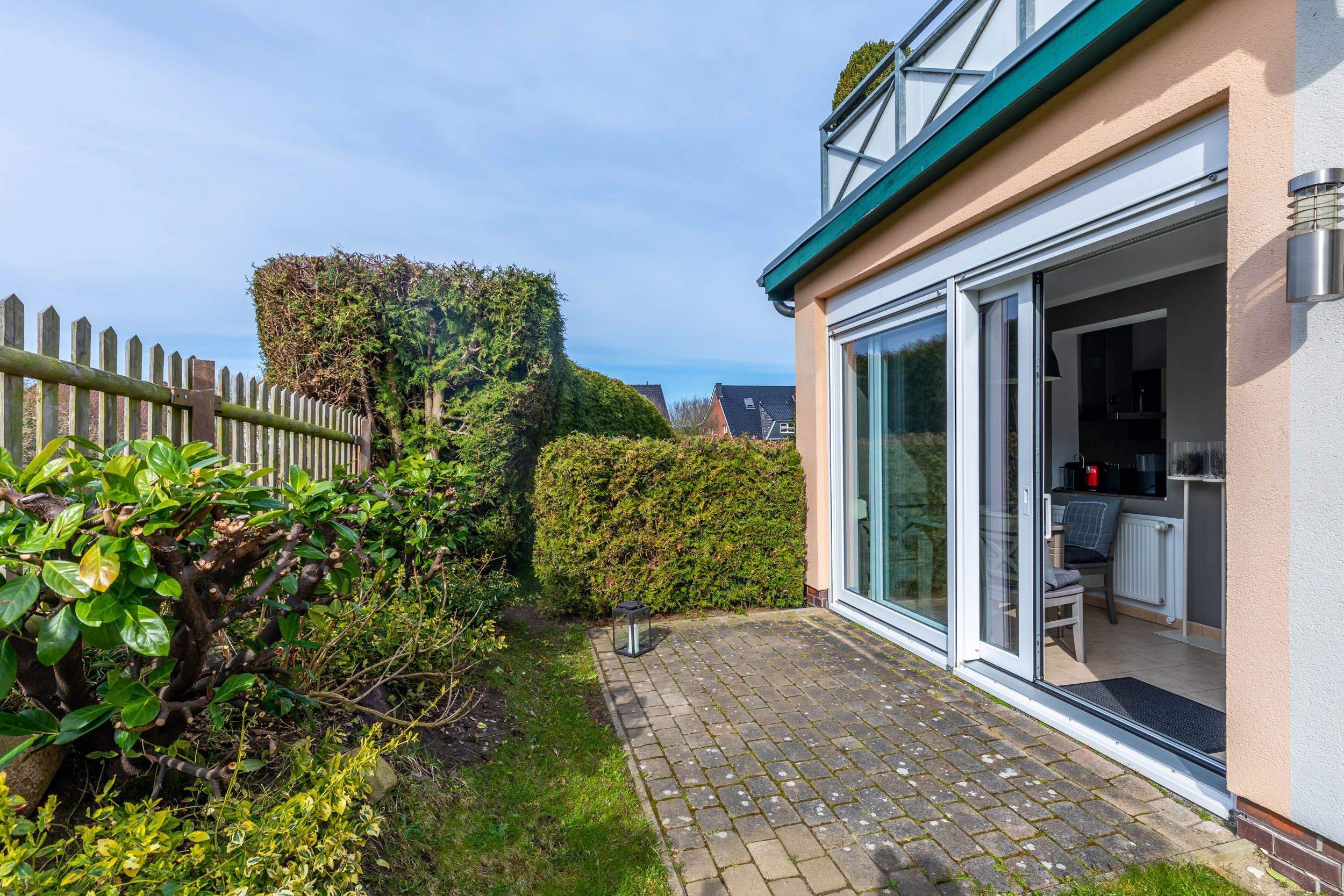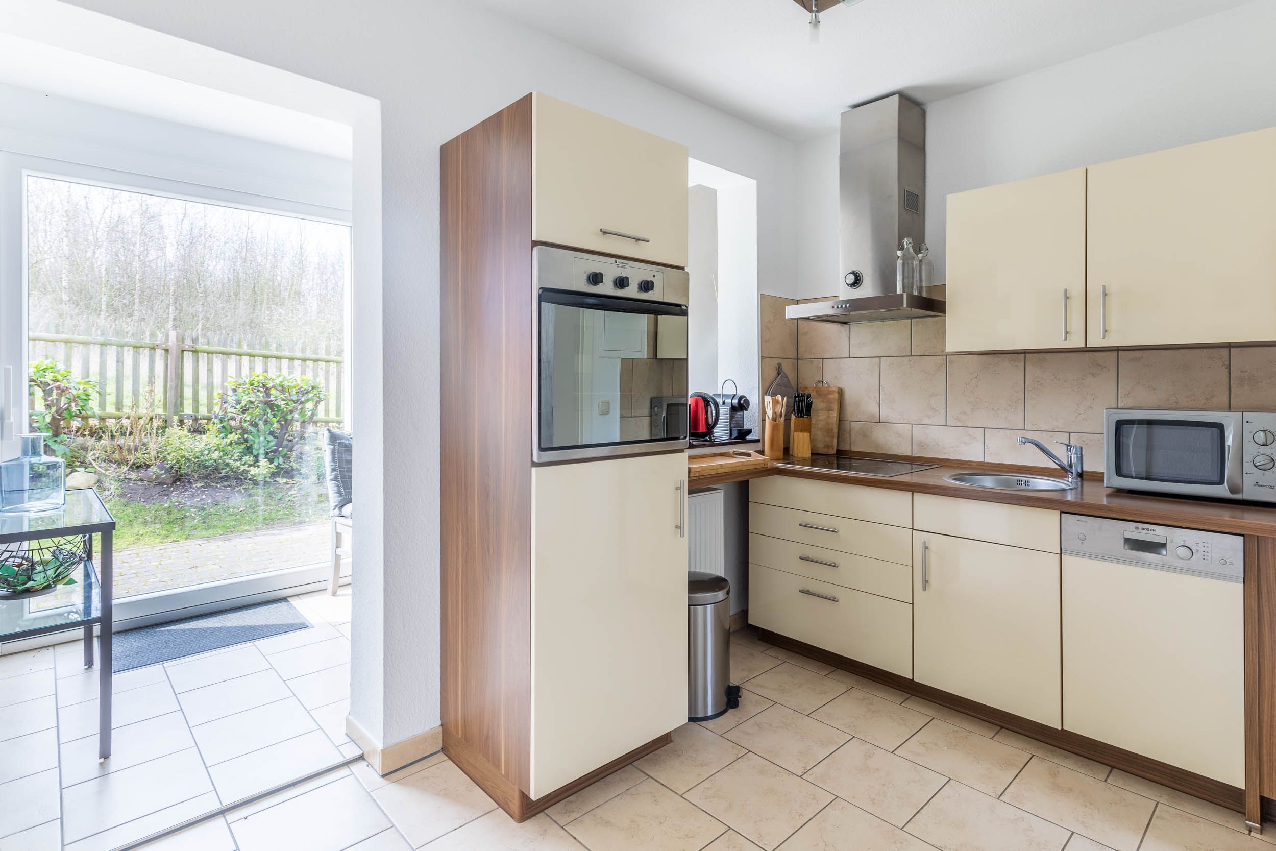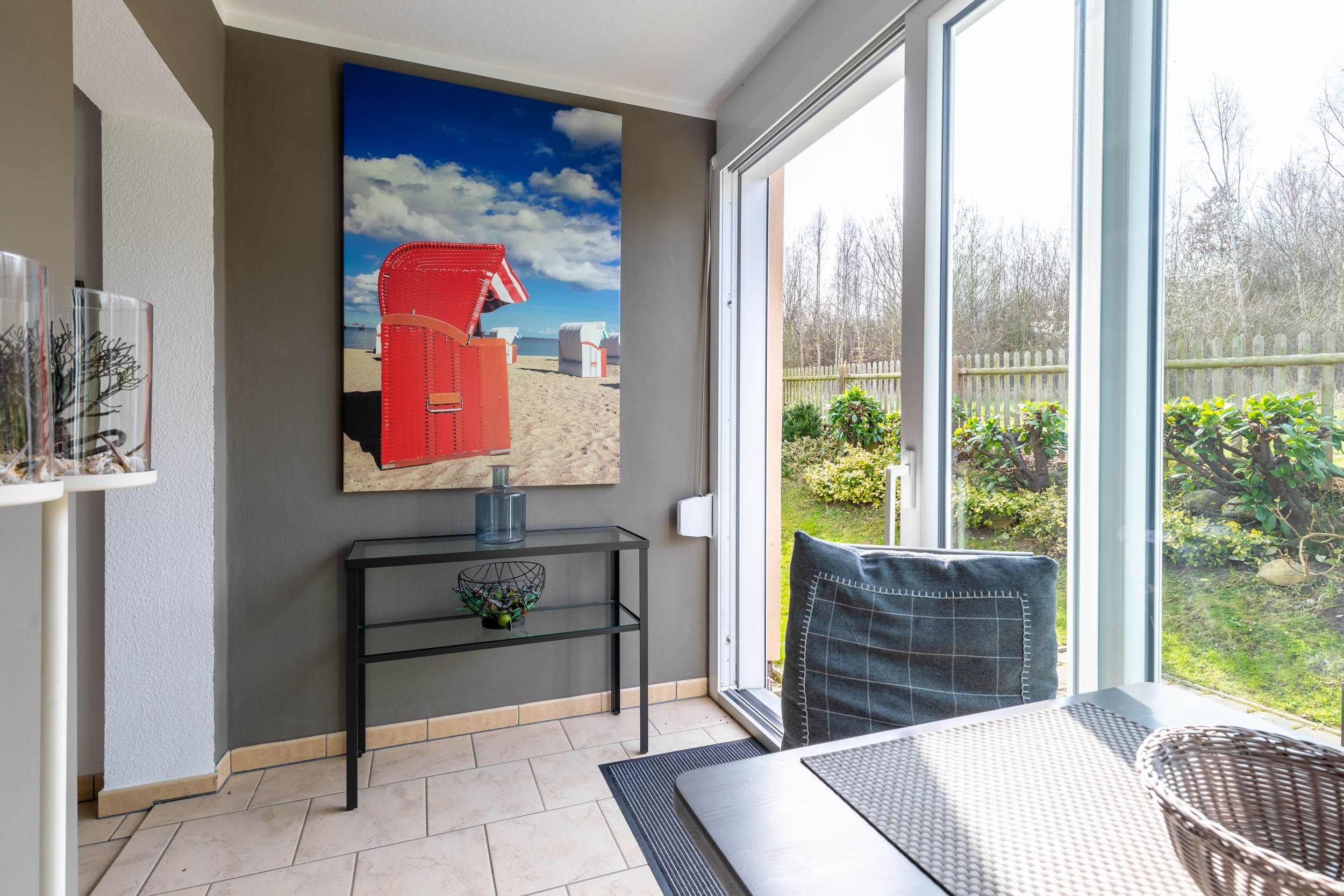 Die Ferienwohnung bietet für 2 Gäste Platz. Der Eingangsbereich ist überdacht. In einem separaten Raum befindet sich die Garderobe, ein großer Spiegel und ein Haushaltsschrank. Im Wohnbereich befindet sich eine komfortable Couch mit Schlaffunktion. Das Schlafzimmer ist mit einem 1,80 m x 2,00 m (2 Matratzen je 0,9 m x 2 m) Bett, einem Kleiderschrank sowie Sat-TV eingerichtet. Die Küche ist mit einem Kühlschrank mit Gefrierfach, Backofen, 4er Ceranfeld, Geschirrspüler, Wasserkocher, Toaster, Mikrowelle sowie Filterkaffeemaschine und Nespresso-Maschine (Zusatz) ausgestattet. Von der Küche aus betritt man den Wintergarten mit Essbereich und Zugang zur Sonnenterrasse.