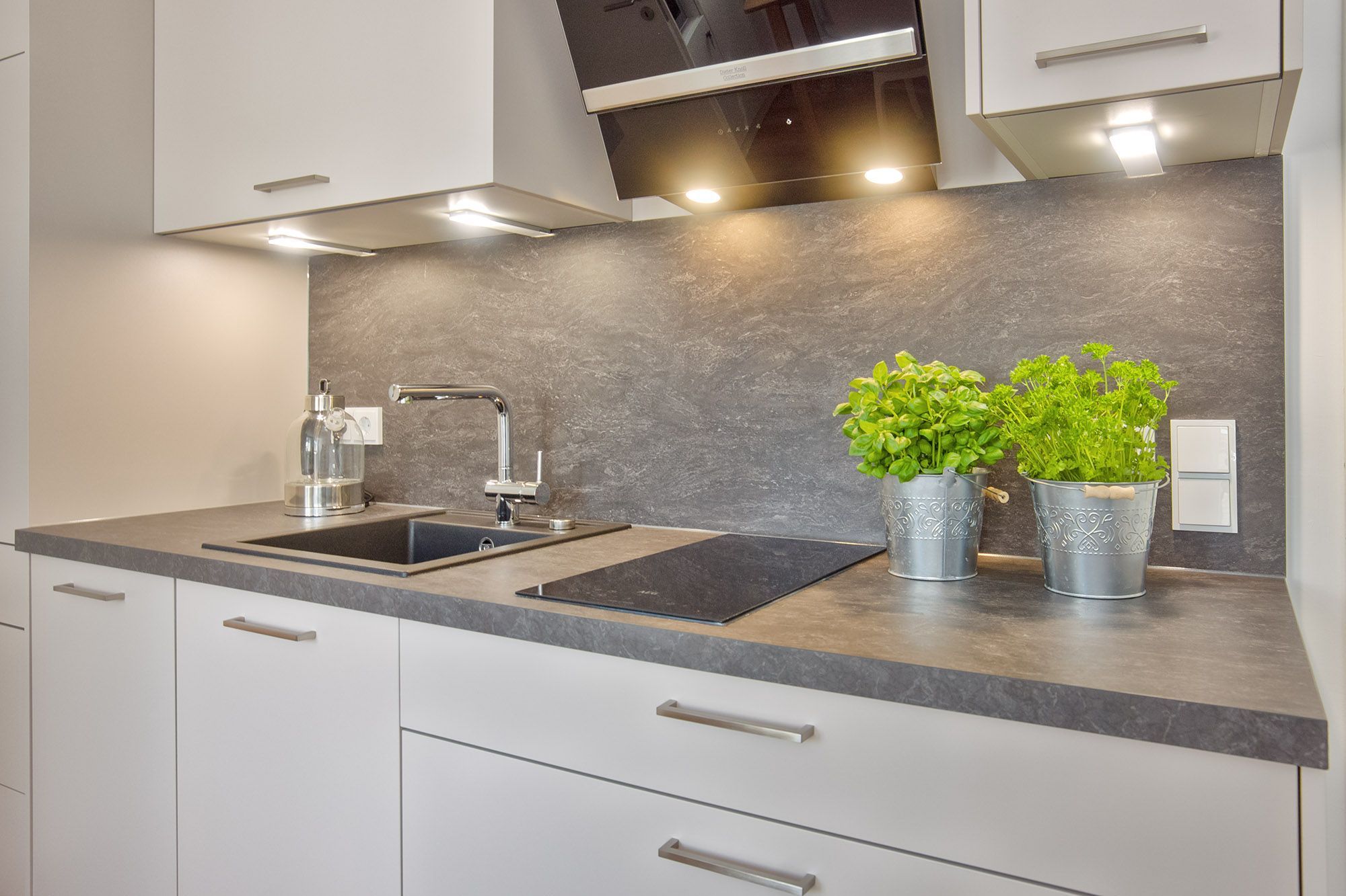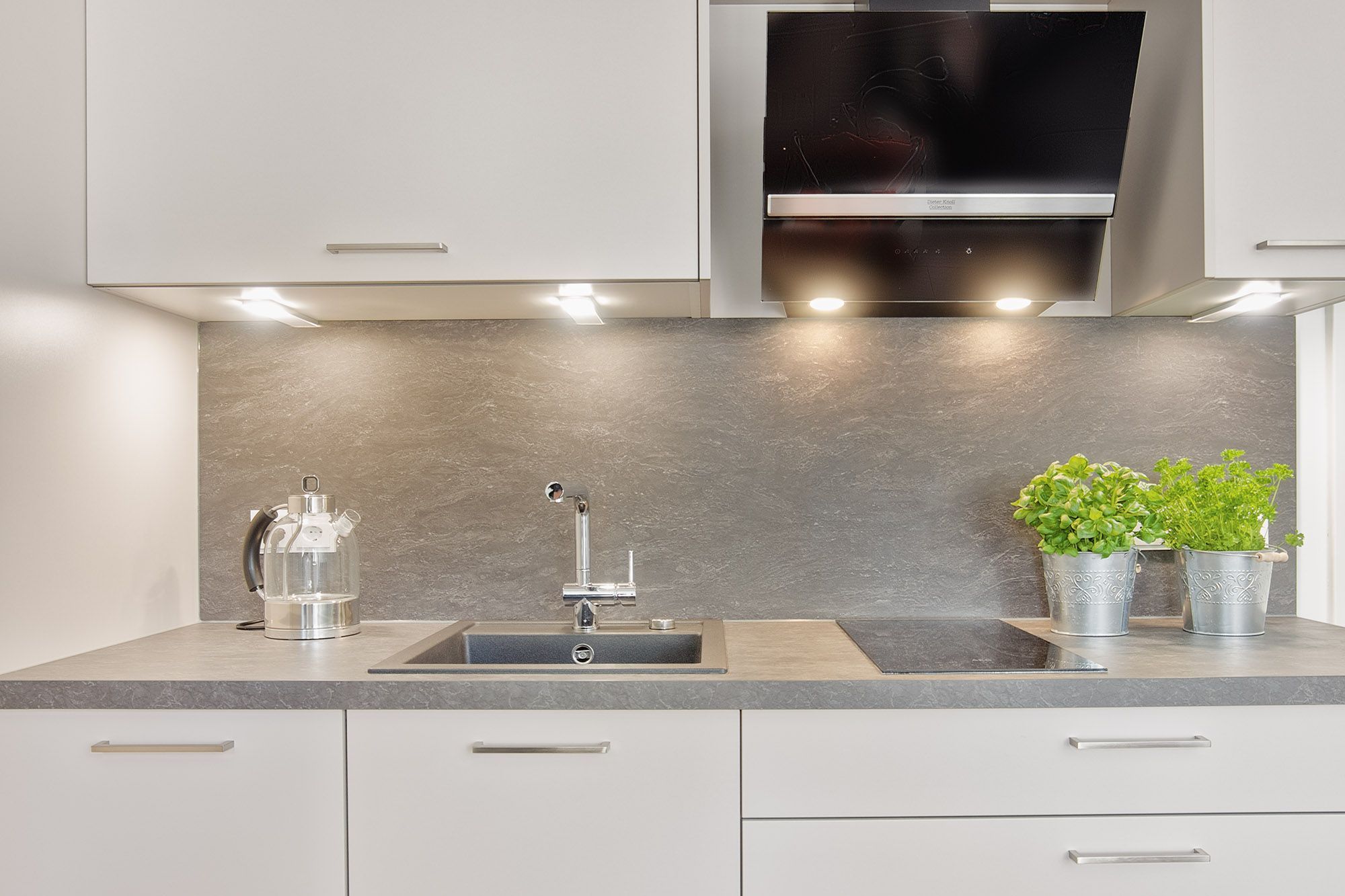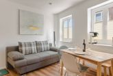 Das Konzept: Küche/Wohnen/Essen und Schlafen/Wohnen/Bad. Die beiden Räume durch eine Tür getrennt ermöglichen auch ein getrenntes Arbeiten im Homeoffice.