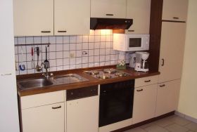 Die Küche ist mit einer EBK mit Vier-Plattenherd und Backofen, Geschirrrspülmaschine, Microwelle, etc. ausgestattet.