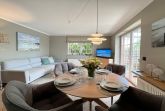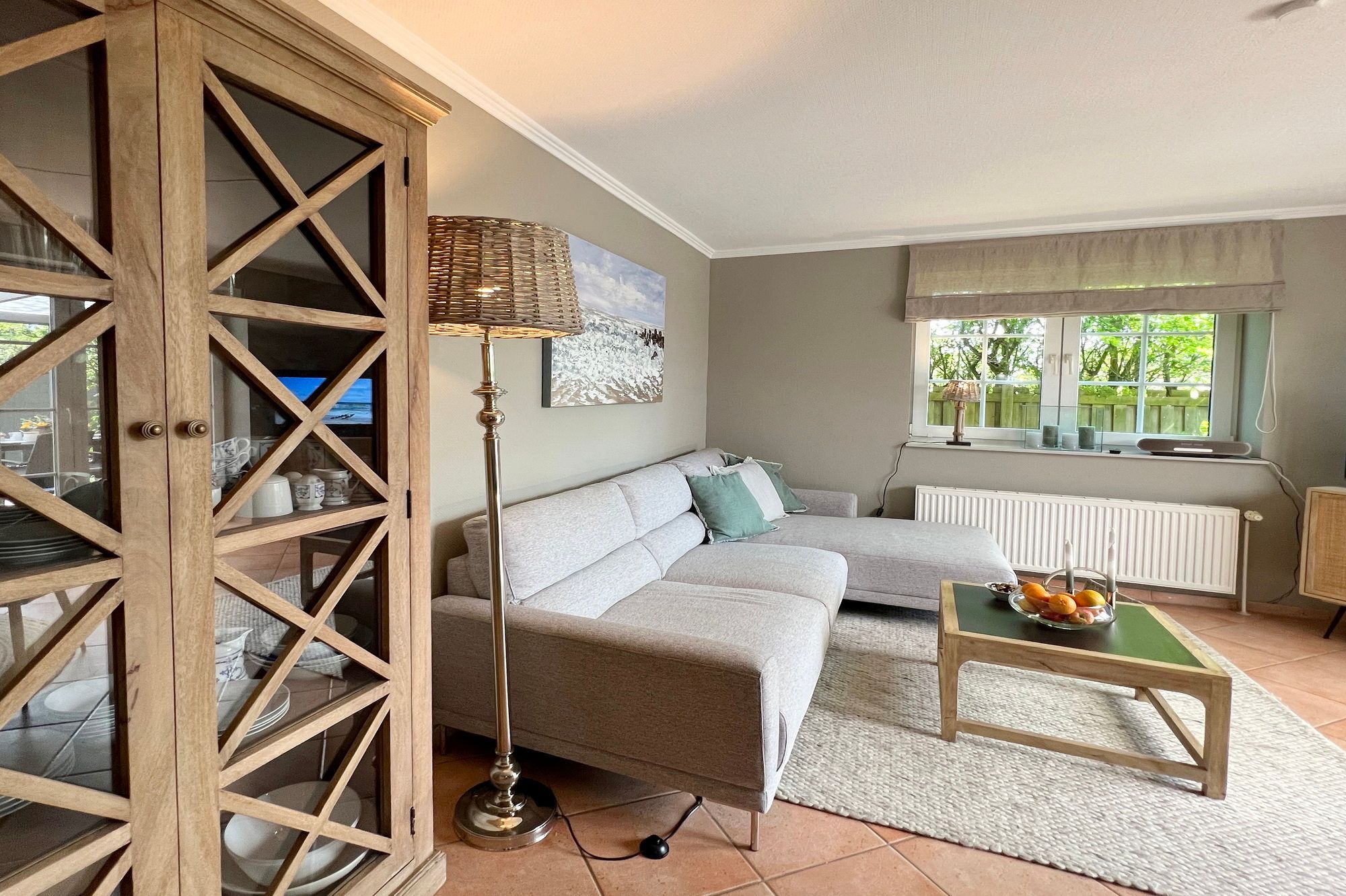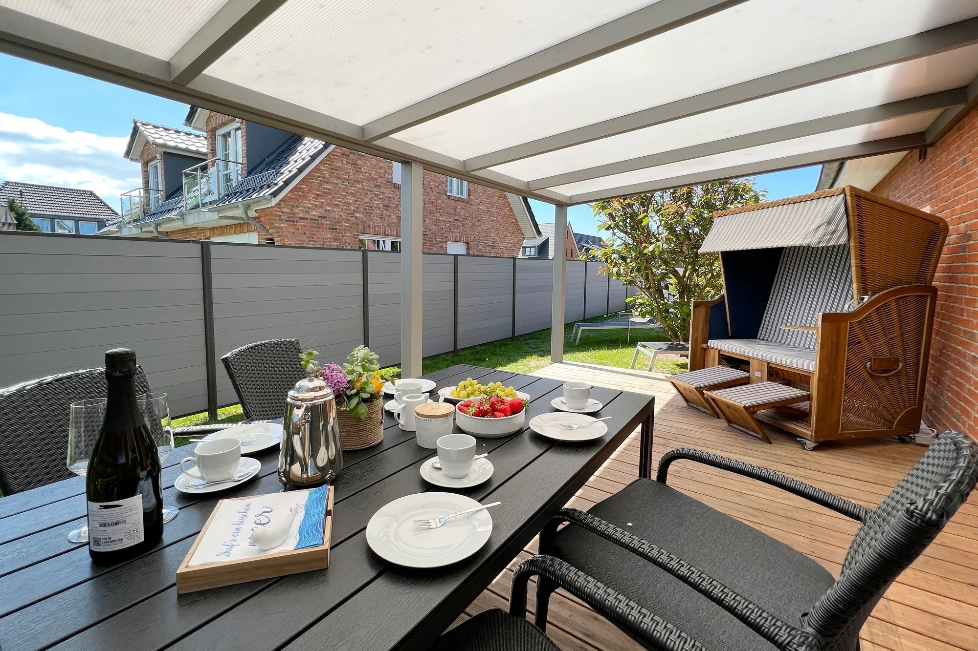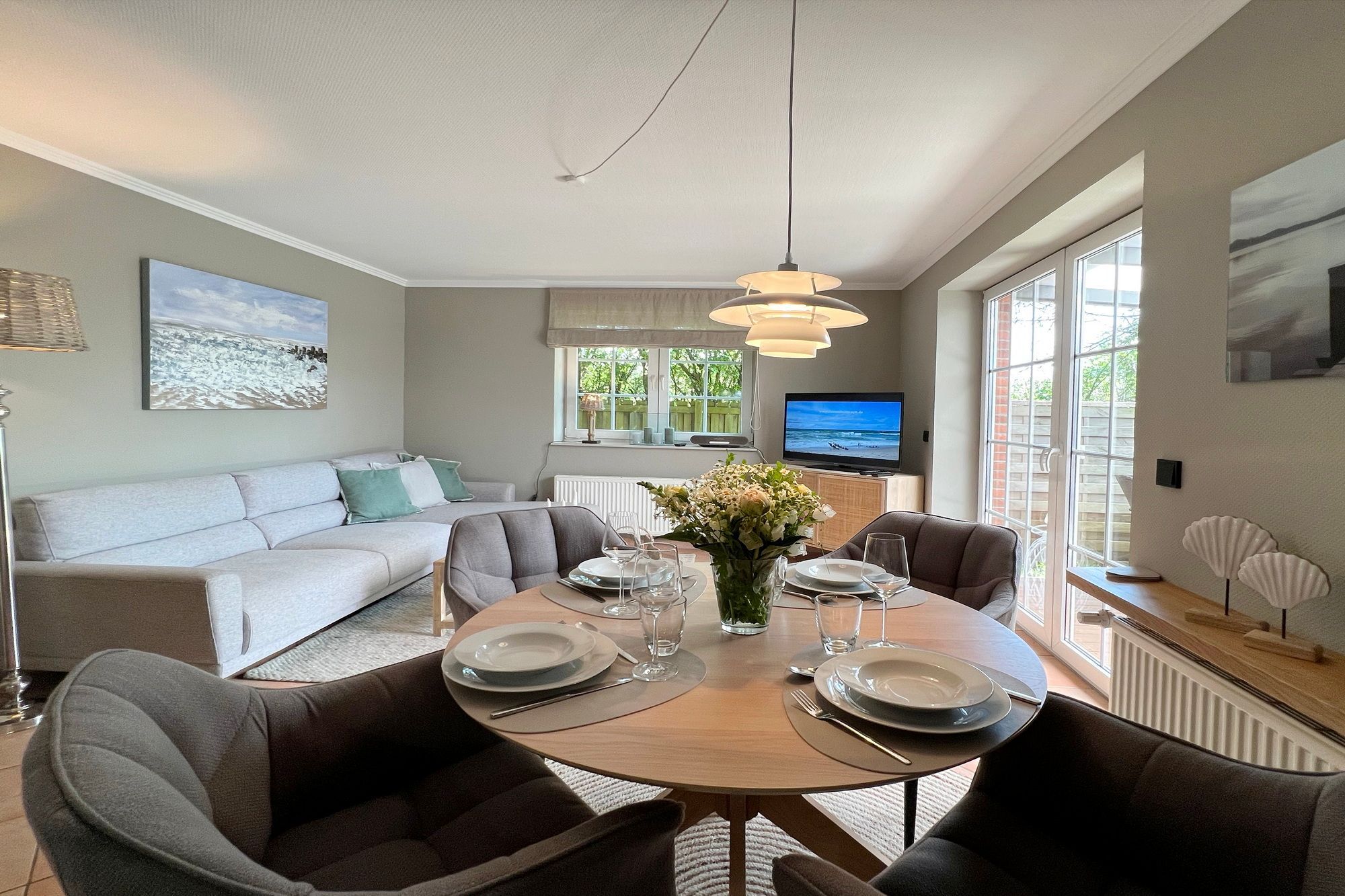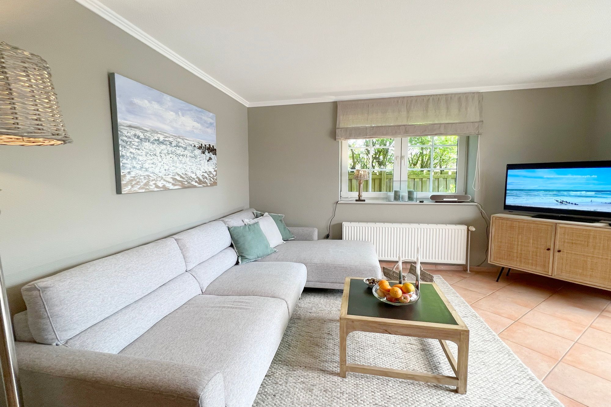 Die ebenerdige Ferienwohnung Kampen hat eine Größe von etwa 75 m² und befindet sich in einer ruhigen Lage auf dem hinteren Teil eines Grundstücks am Ortsrand im Norden von Westerland. Das Wohnzimmer ist modern eingerichtet und verfügt über eine offene Küche. Von dort aus gelangt man auf die überdachte Terrasse, die nach Süden ausgerichtet ist und mit einem Strandkorb, Gartenmöbeln und Sonnenliegen ausgestattet ist. Die Wohnung verfügt über zwei Schlafzimmer mit jeweils einem Doppelbett sowie ein großes Badezimmer mit Dusche, WC und Waschbecken. Auf dem Grundstück befindet sich ein PKW-Stellplatz. Während der Sommerferien beträgt die Mindestmietdauer 14 Übernachtungen, bei kürzeren Aufenthalten kann dies auf Anfrage ermöglicht werden. Gerne dürfen Sie hier ein gut erzogenes Haustier mitbringen. Dafür wird dann eine einmalige Haustiergebühr berechnet.