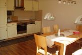 Offener Wohn- und Essbereich mit gemütlicher hochwertiger Couchgarnitur und grossem Flachbild-TV, Essgruppe mit Bestuhlung. Küche mit Spülmaschine, Kühlschrank mit Gefrierfach, VierPlattenElektroherd mit Ceranfeld und Backofen und allen erforderlichen Elektrogeräten.
