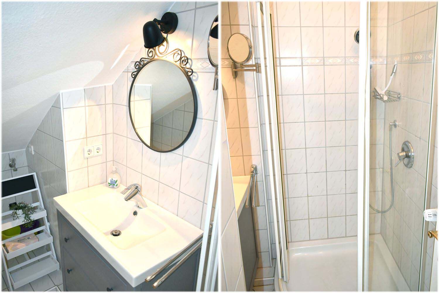 Bad 2: Duschkabine, Kosmetikspiegel, Spiegel, Waschtisch mit Unterschrank