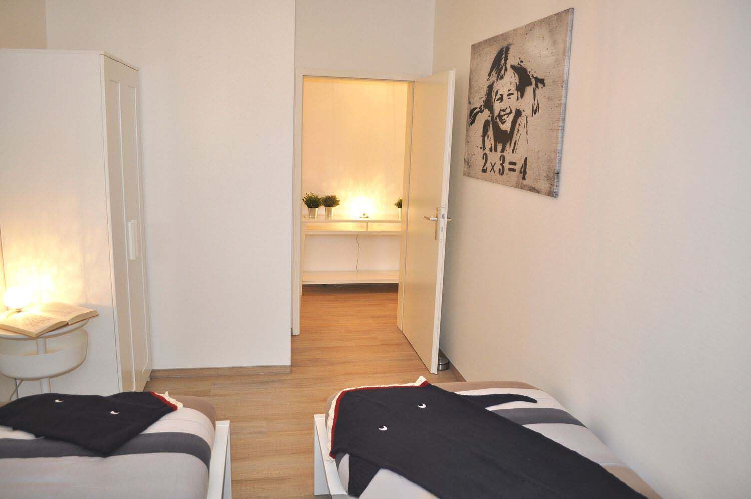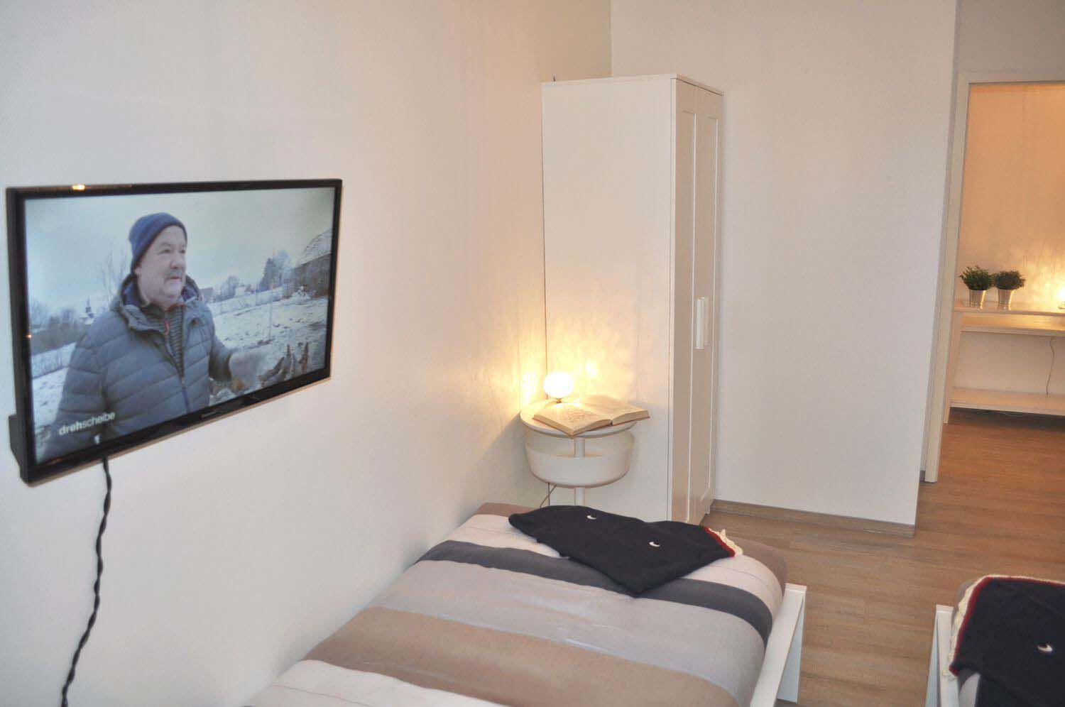 Schlafzimmer 2: 2 Einzelbetten 2,00 x 0,90 m, Bügelbrett, Flachbildschirm, Kleiderschrank, Nachttisch