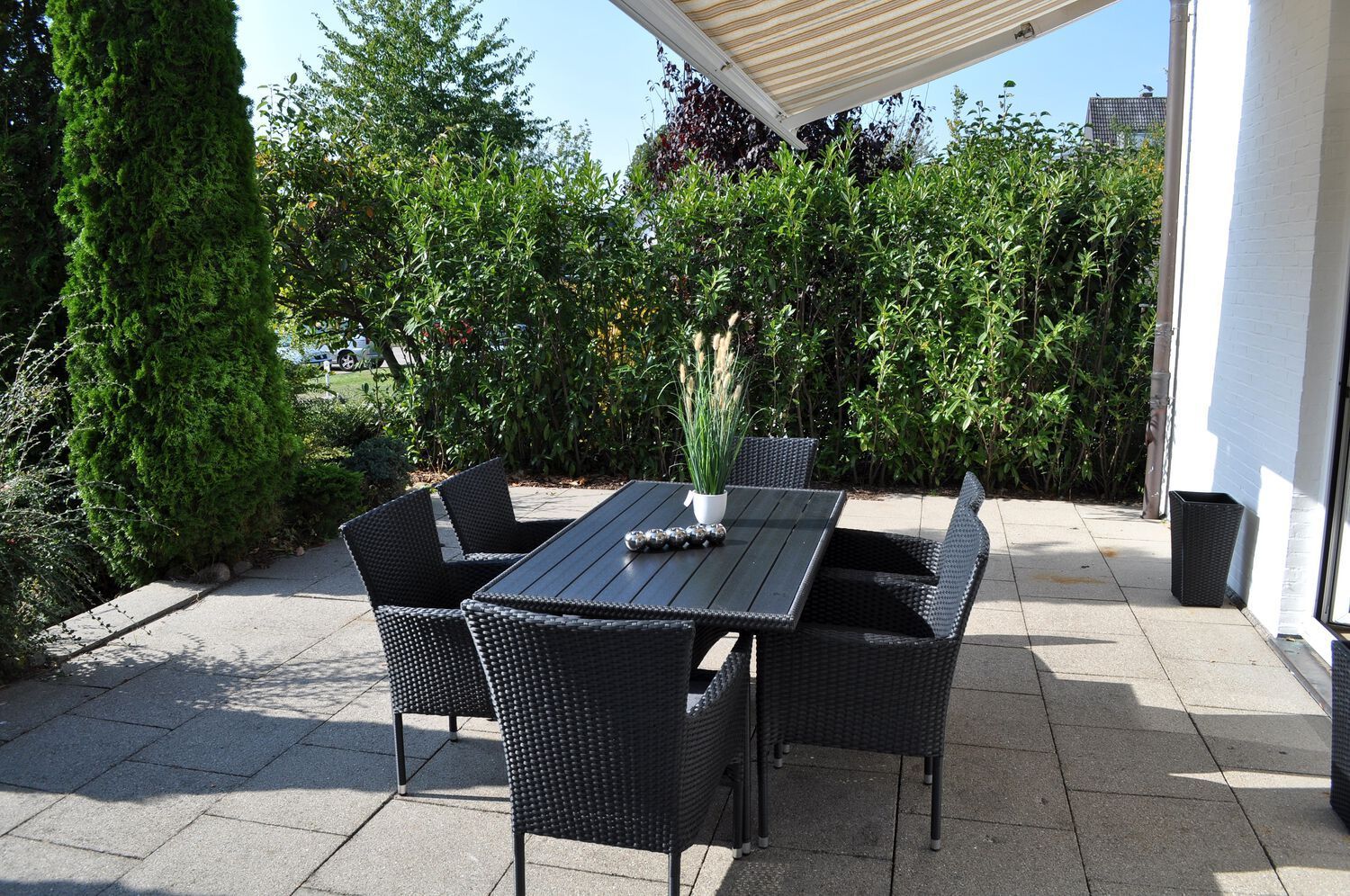 Terrasse: 6 Stühle, elektrische Markise, Nachmittagssonne, Südlage, Tisch