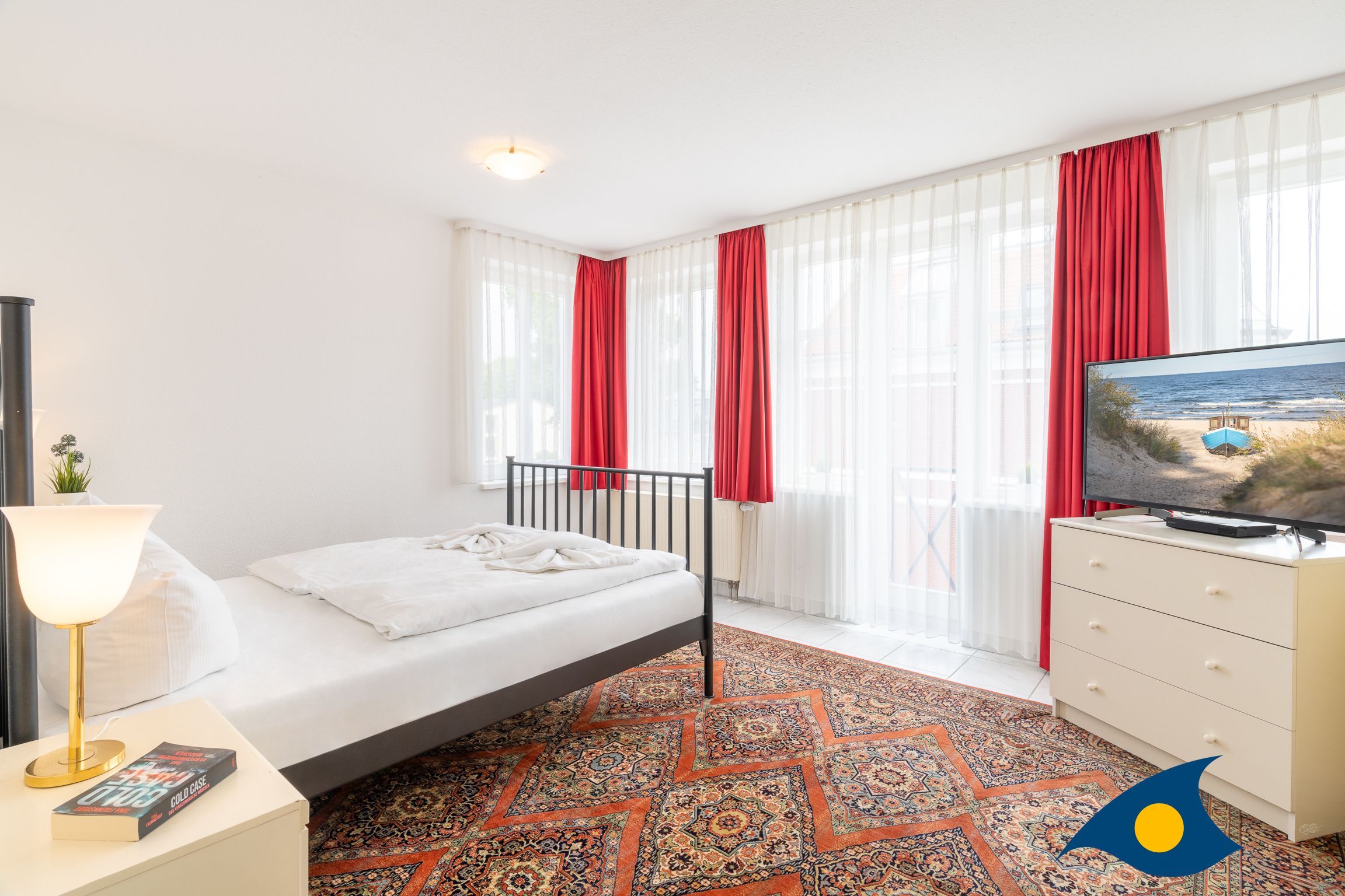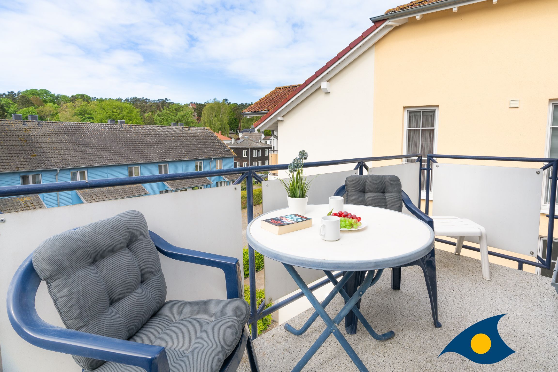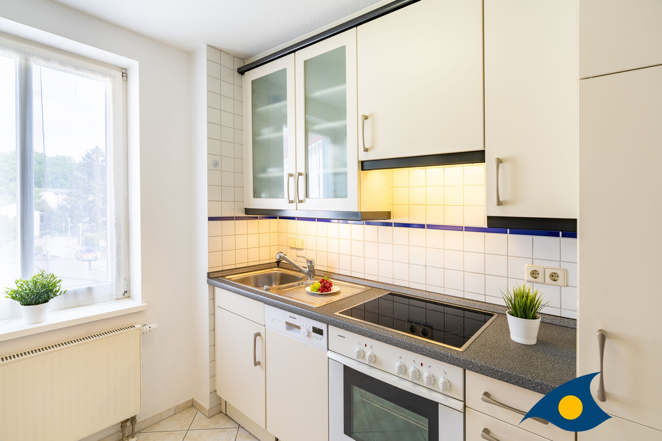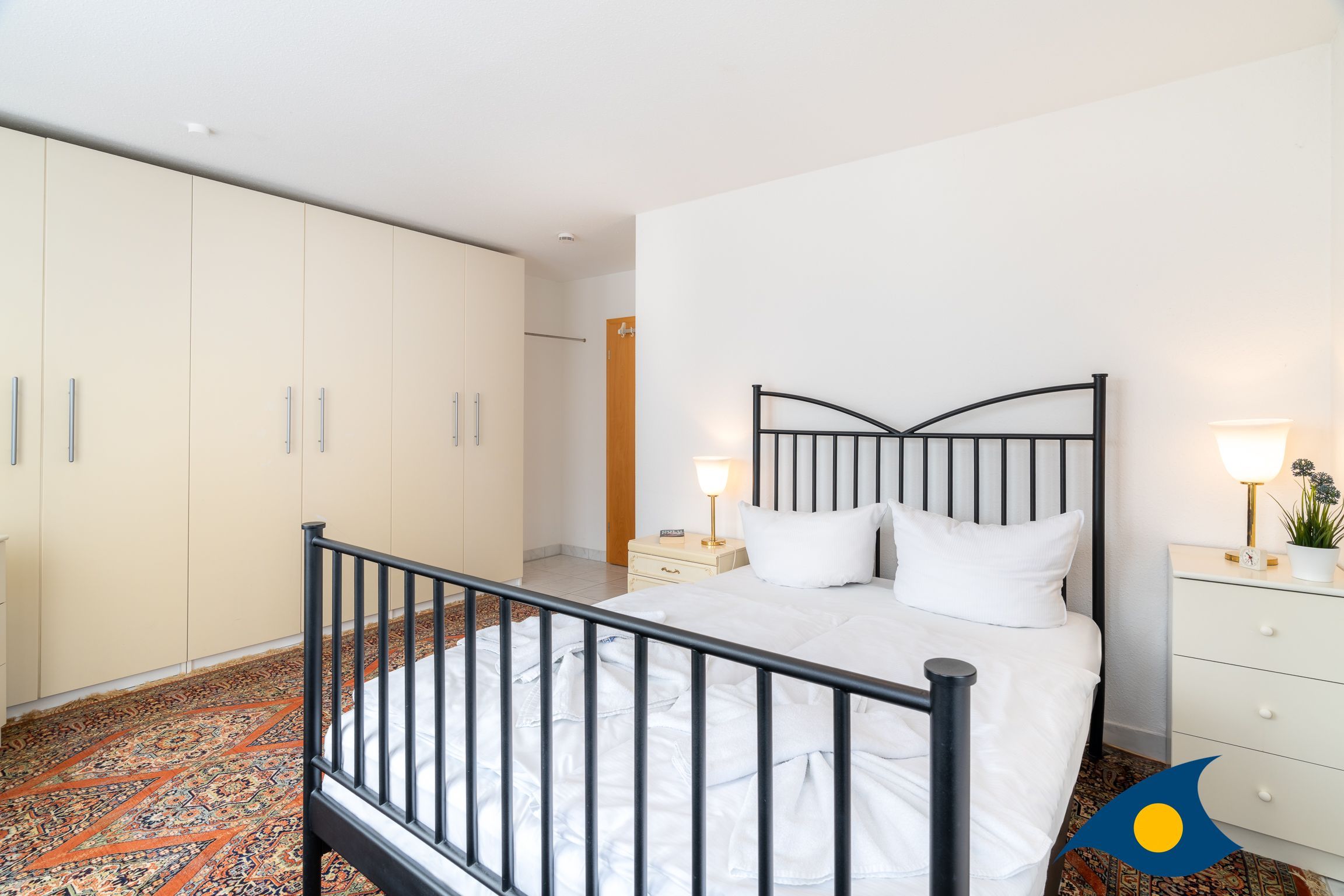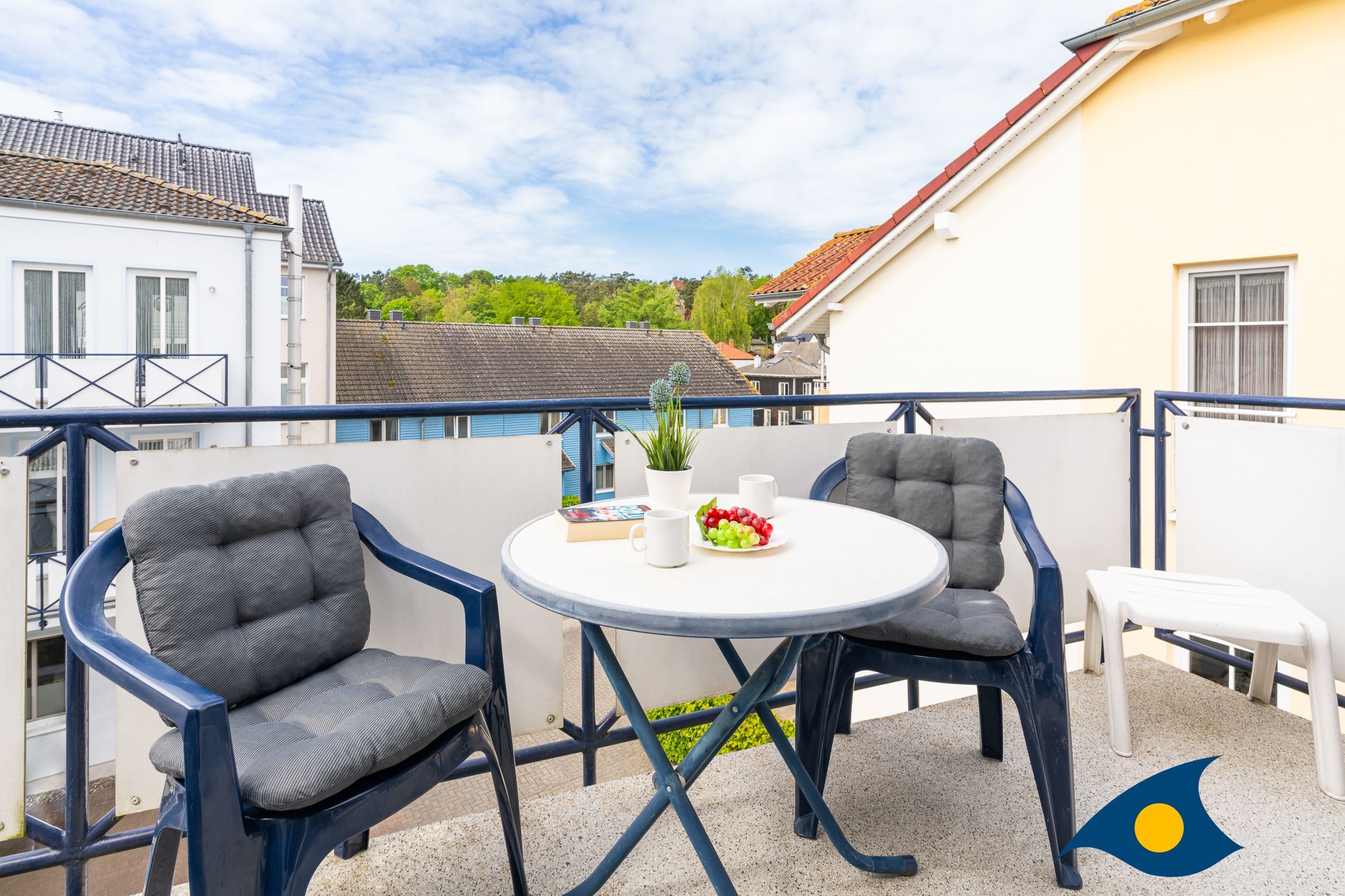 Im 2. Obergeschoss des Hauses befindet sich diese ca. 50 qm große Ferienwohnung, die Platz für bis zu 4 Personen bietet. Vom Wohnzimmer aus gelangen Sie auf den Sonnenbalkon, der mit einer Markise ausgestattet ist. Die separate Küche ist voll ausgestattet.