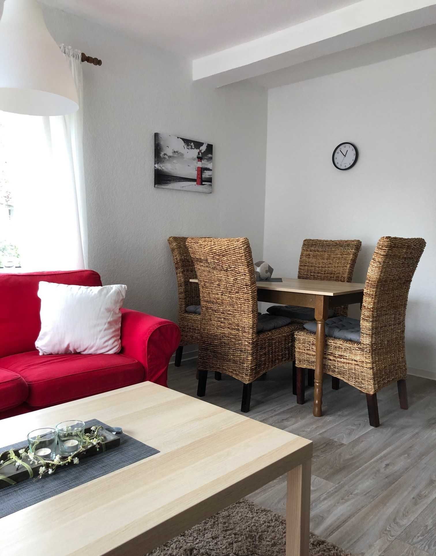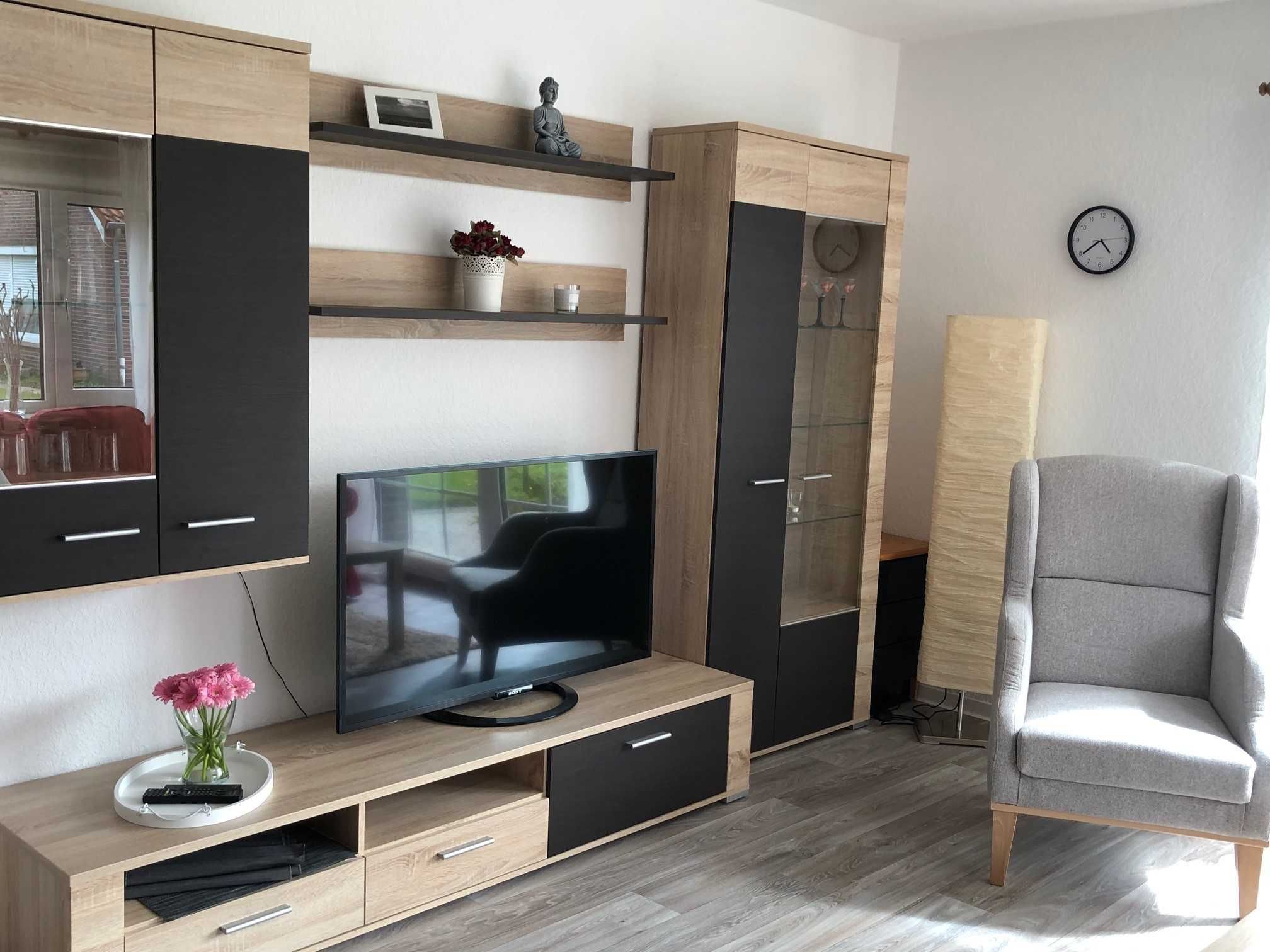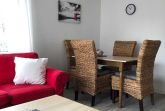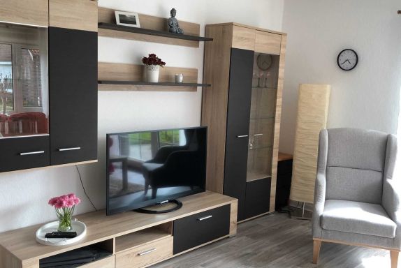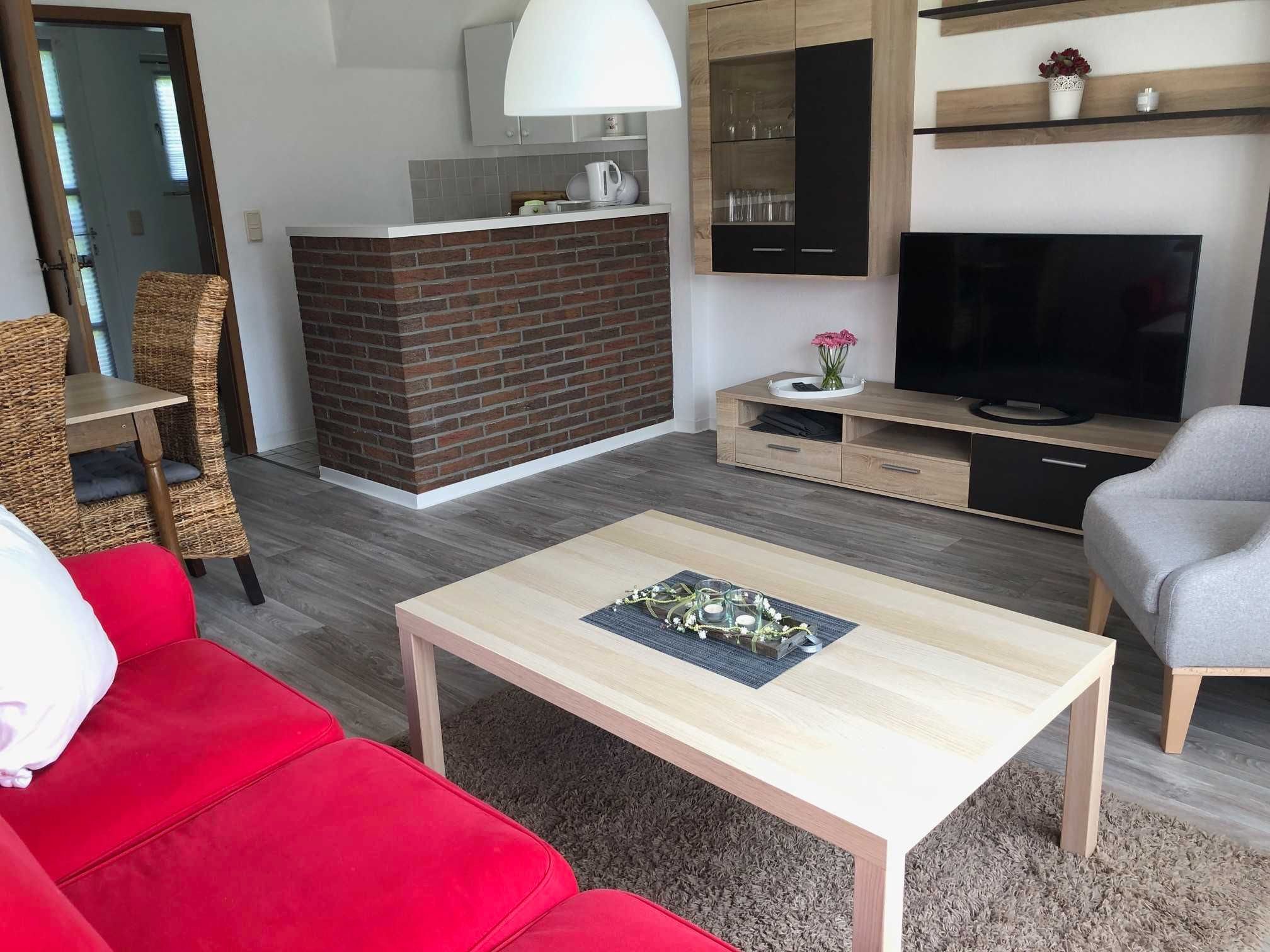 Im Erdgeschoss befindet sich ein gemütliches Wohn- und Esszimmer mit Flachbild-TV, Esstisch mit Bestuhlung, kleine Küchenzeile mit allen erforderlichen Haushaltsgeräten.