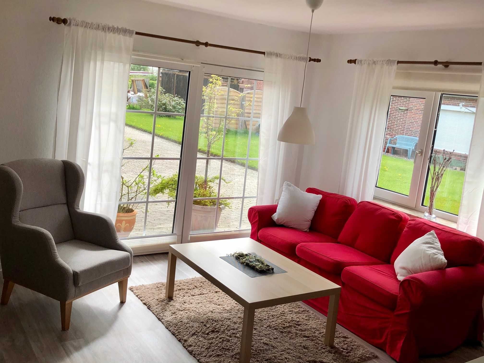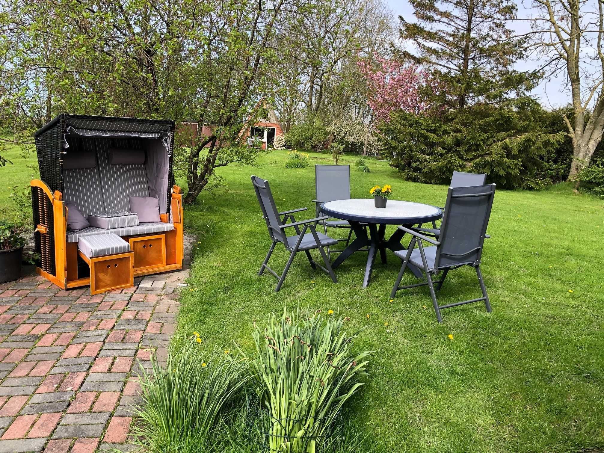 Gemütliches Nichtraucher Ferienhaus auf einem sehr grossen Grundstück mit Terrasse mit Strandkorb, Spiel- und Liegewiese in einer ruhigen Nebenstrasse abseits vom Touristenrummel im Nordseekurbad Dornumersiel im Ortsteil Westerbur.