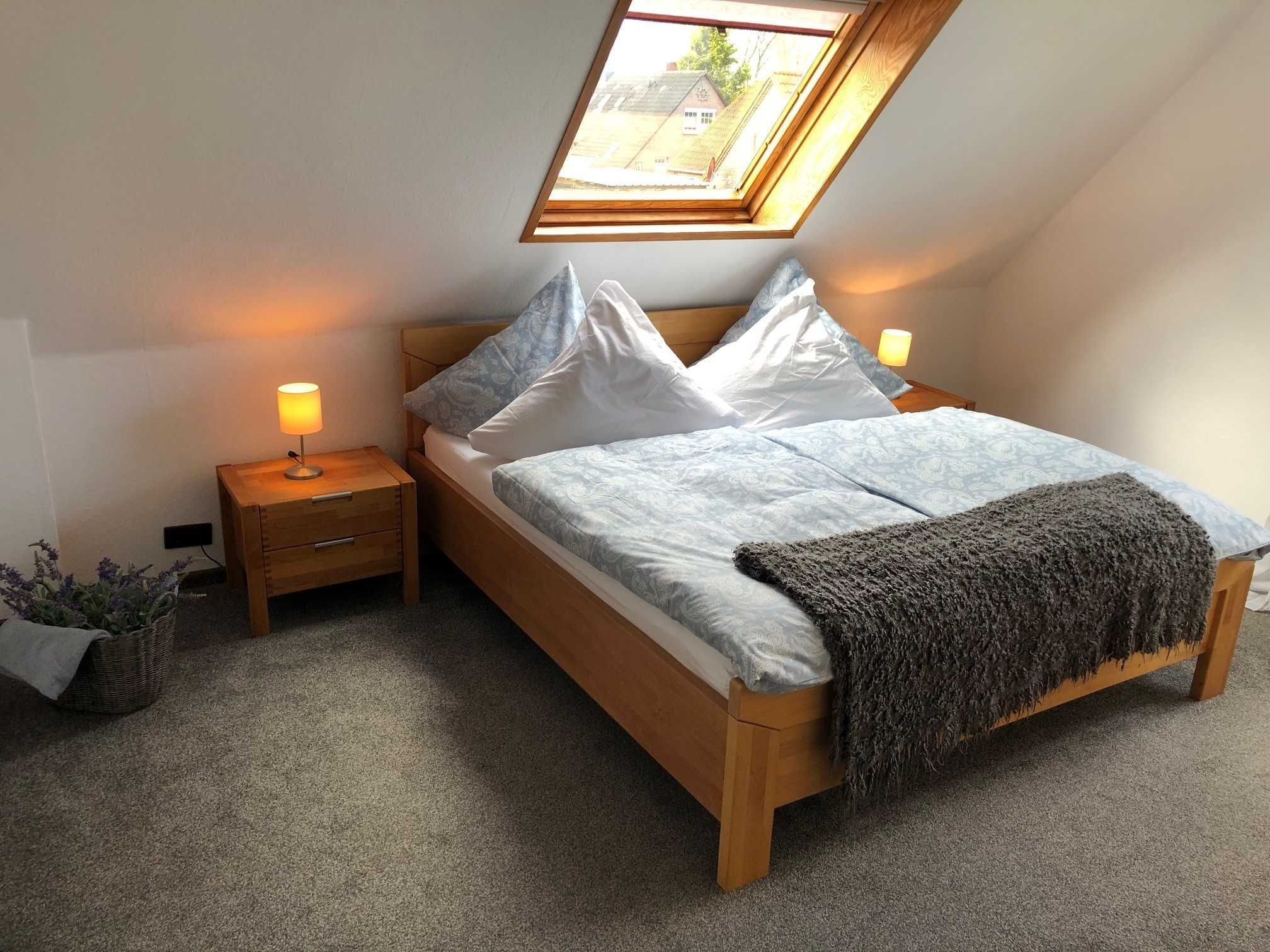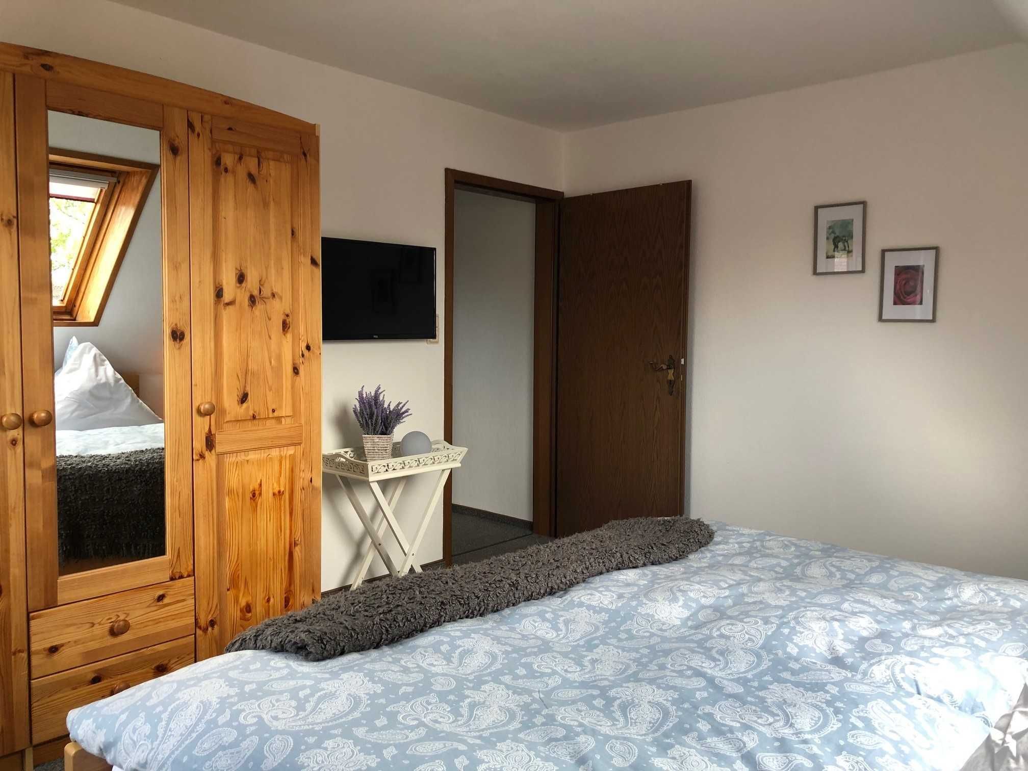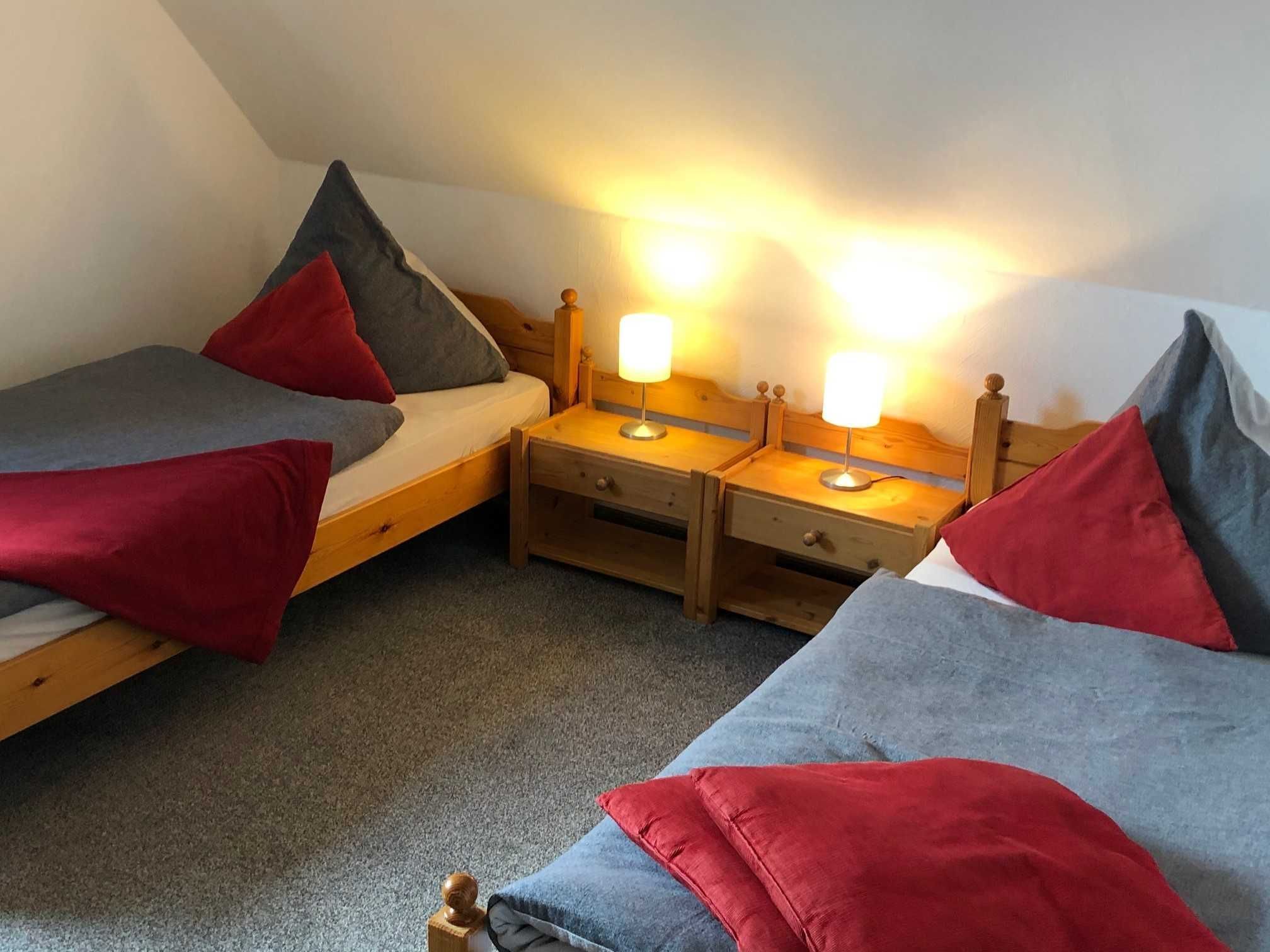 Im Obergeschoss befindet sich ein Schlafzimmer mit Doppelbett, ein Schlafzimmer mit zwei Einzelbetten.