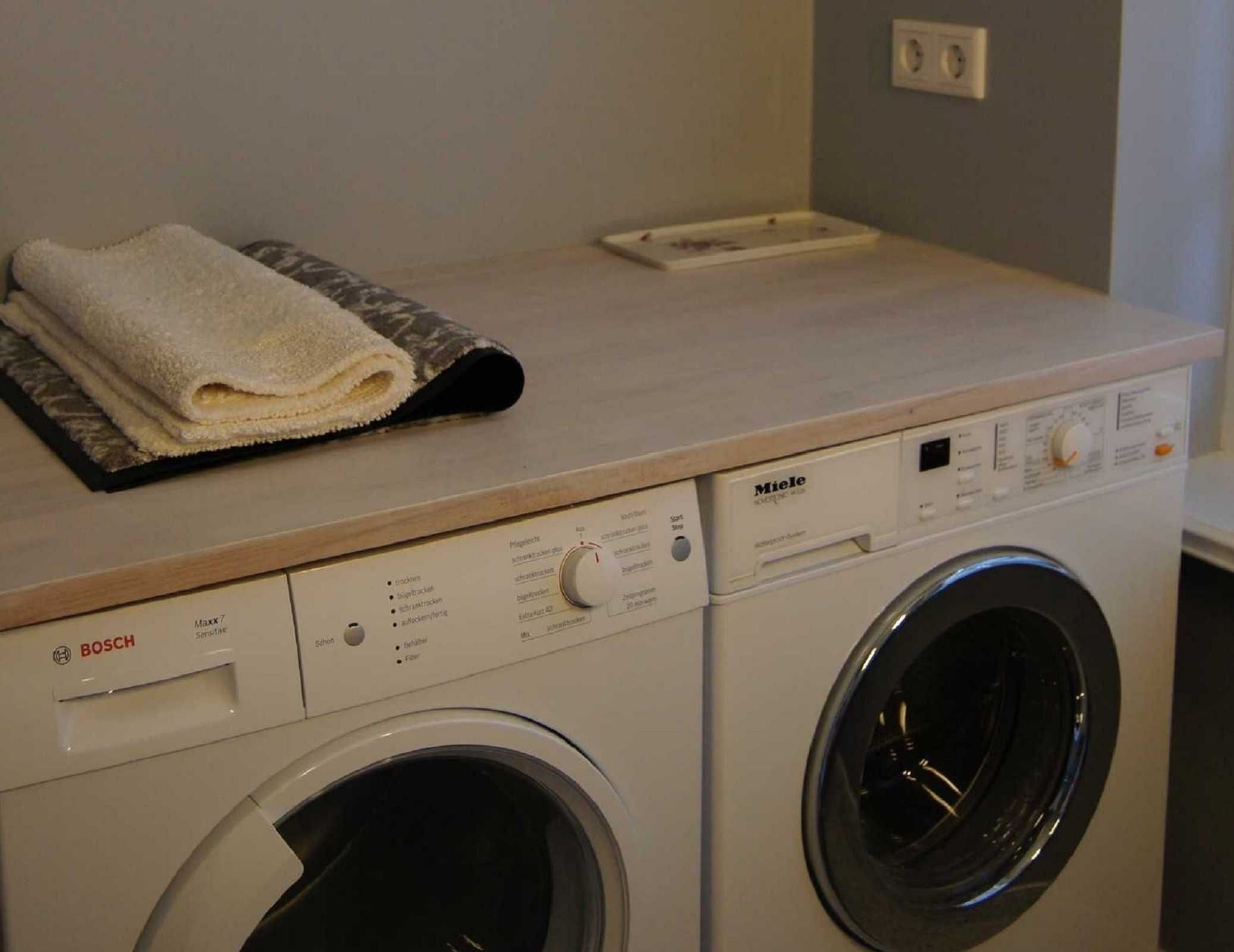 Außerdem ein Duschbad mit Hauswirtschaftsbereich (Waschmaschine/ Trockner/ Bügeln).