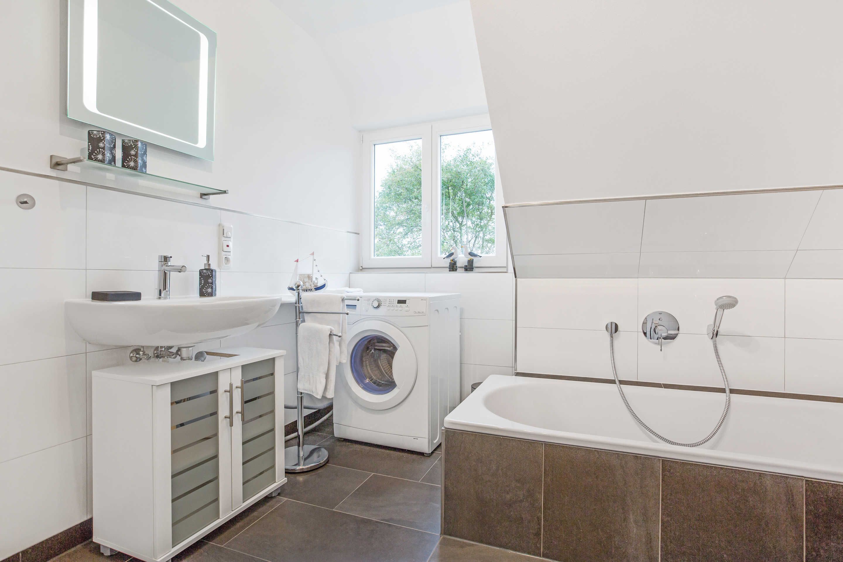 Im oberen Bereich Ihres Wohlfühl-Domizils gibt es gleich vier Schlafzimmer mit insgesamt sieben Betten; zwei der Zimmer verfügen über Wand-Fernseher. Ein geräumiges Bad mit Badewanne, separater Dusche und Waschmaschine komplettiert die Räumlichkeiten.
