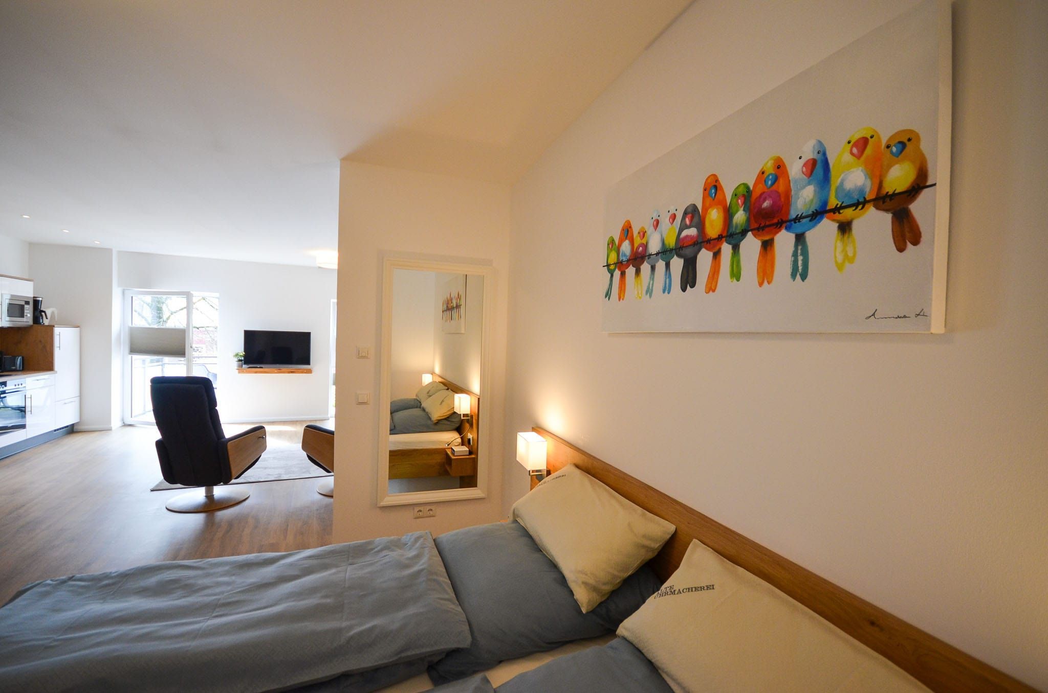 Wir freuen uns, Ihnen unser im April 2022 eröffnetes Boardinghouse Alte Uhrmacherei vorzustellen. Wenn Sie ein weiteres Zuhause neben dem eigenen suchen, dann haben wir für Sie die passenden wohnlichen Räume geschaffen. Unsere vier Apartments sind vollständig eingerichtet und bieten alles, was Sie von einem gemütlichen Refugium erwarten. Hier können Sie sich zurückziehen, wenn Sie Erholung suchen. Hier können Sie nach Ihrem wohlverdienten Feierabend die Beine hochlegen und die Annehmlichkeiten der großzügigen Ausstattung genießen.