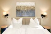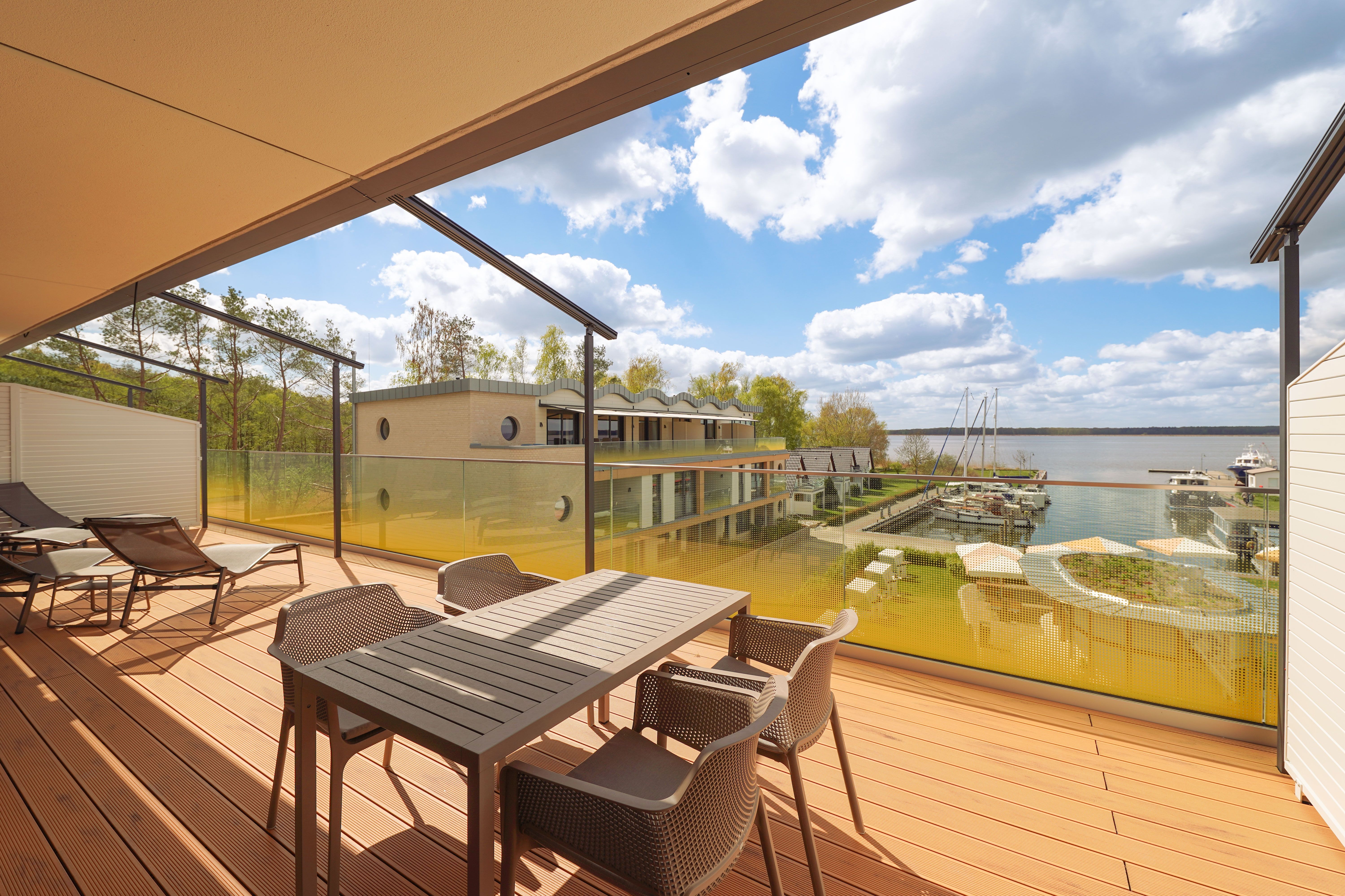 85m² Suite im OG für bis zu 4 Personen. 2 Schlafzimmer mit Doppel-Boxspringbetten (180x200).15m² Balkon mit einmaligem Blick auf Wasser und Hafen. Nichtraucher-Suite. Parkplatz undWLAN sind inklusive. Turmsauna mit Dachterrasse, Fitnessraum und Frühstück sind vor Ort zu buchbar. Wäschepaket und Endreinigung einmalig 139,- €.
