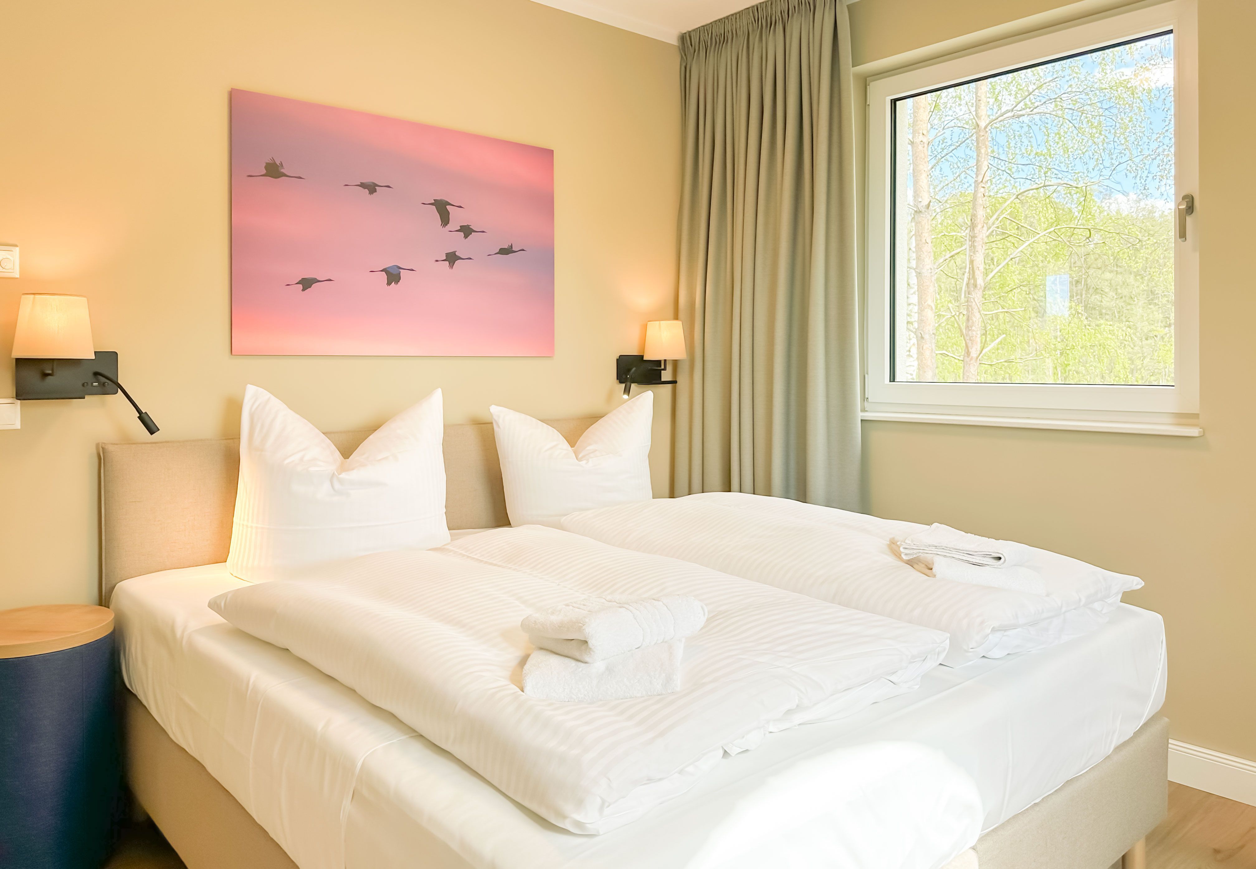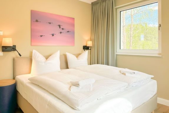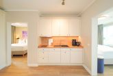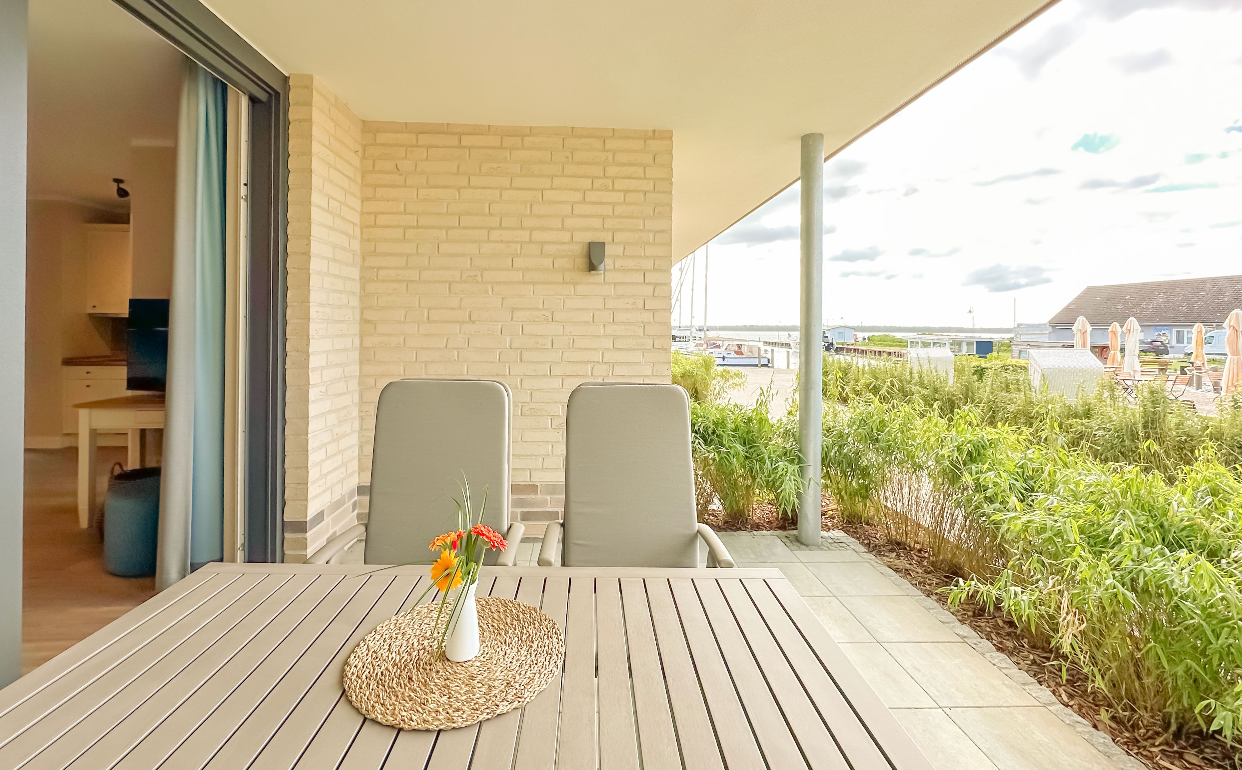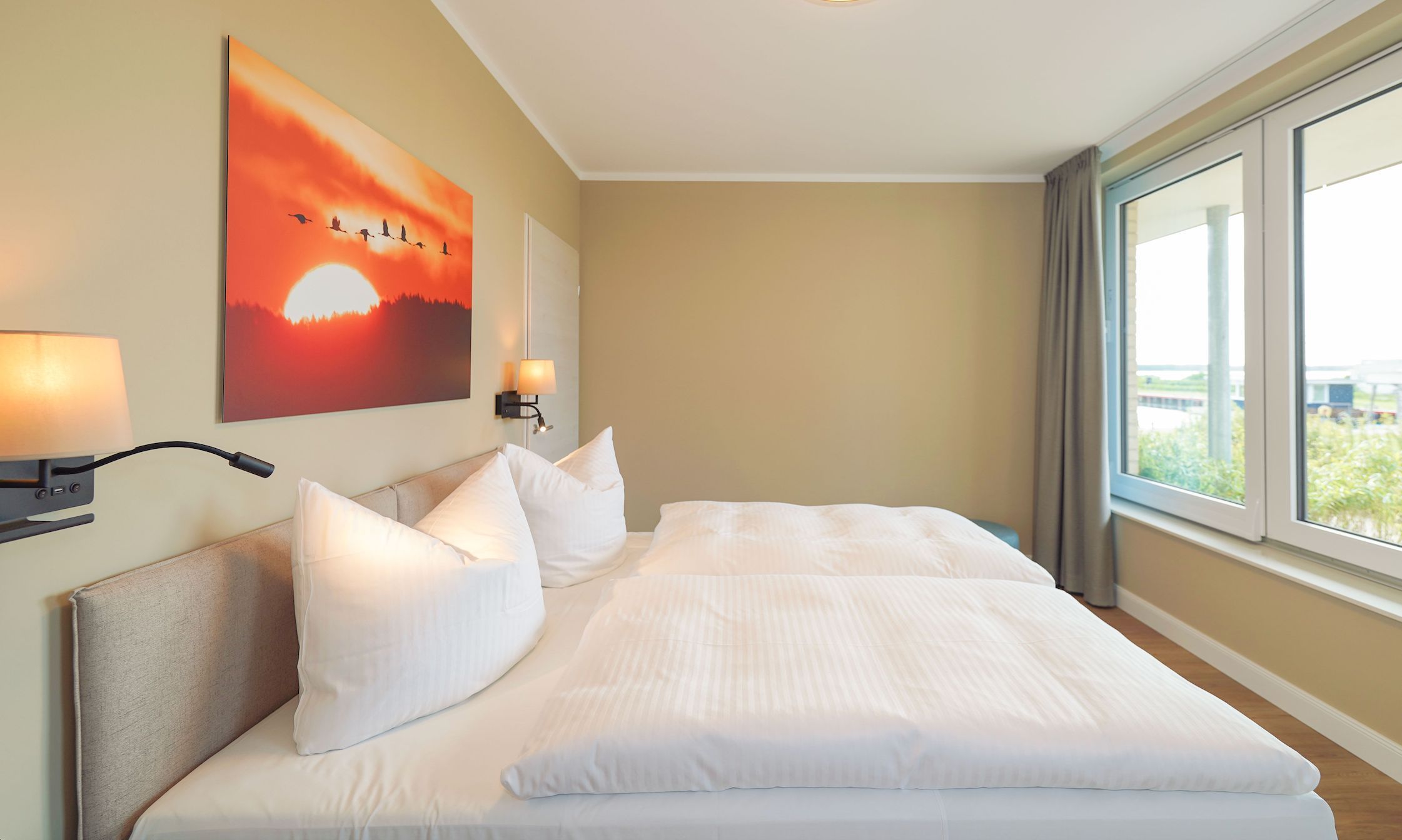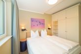 75m² Suite im EG, barrierefrei, bis zu 4 Personen. 2 Schlafzimmer mit Doppel-Boxspringbett (180x200). Voll-ausgestattete 2-Stellen Kochfeld Küche. 15 m² Veranda mit einmaligem Blick auf den Hafen. Nichtraucher-Suite. Hund möglich: 15€/Tag. Parkplatzund WLAN sind inklusive. Dachsauna mit Terrasse, Fitnessraum und Frühstück sind vor Ort zu buchbar. Wäschepaket und Endreinigung einmalig 139,- €.