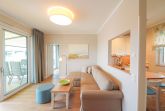 60m² Suite im DG für bis zu 3 Personen, alle Schlafzimmer mit Boxspringbett (180x200). Voll-ausgestattete 2-Stellen Kochfeld Küche. 40 m² Dachterrasse mit einmaligem Blick auf Wasser und Hafen. Nichtraucher-Suite. Parkplatz und WLAN sind inklusive. Dachsauna mit Terrasse, Fitnessraum und Frühstück sind vor Ort zu buchbar. Wäschepaket und Endreinigung einmalig 139,- €.