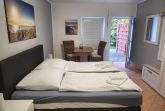 Jedes Zimmer verfügt über einen seperaten Eingang und eine möblierte Sonnenterrasse.