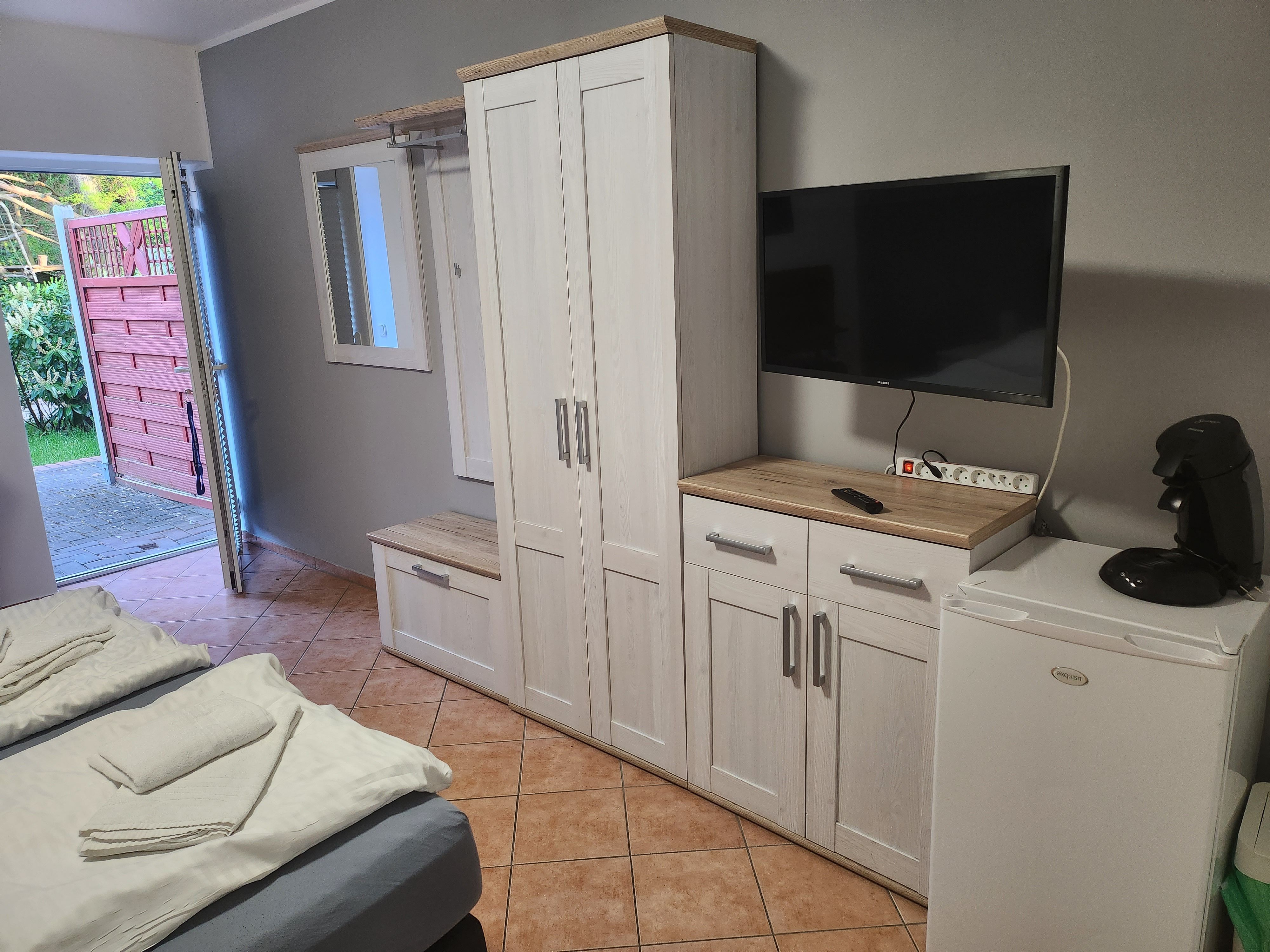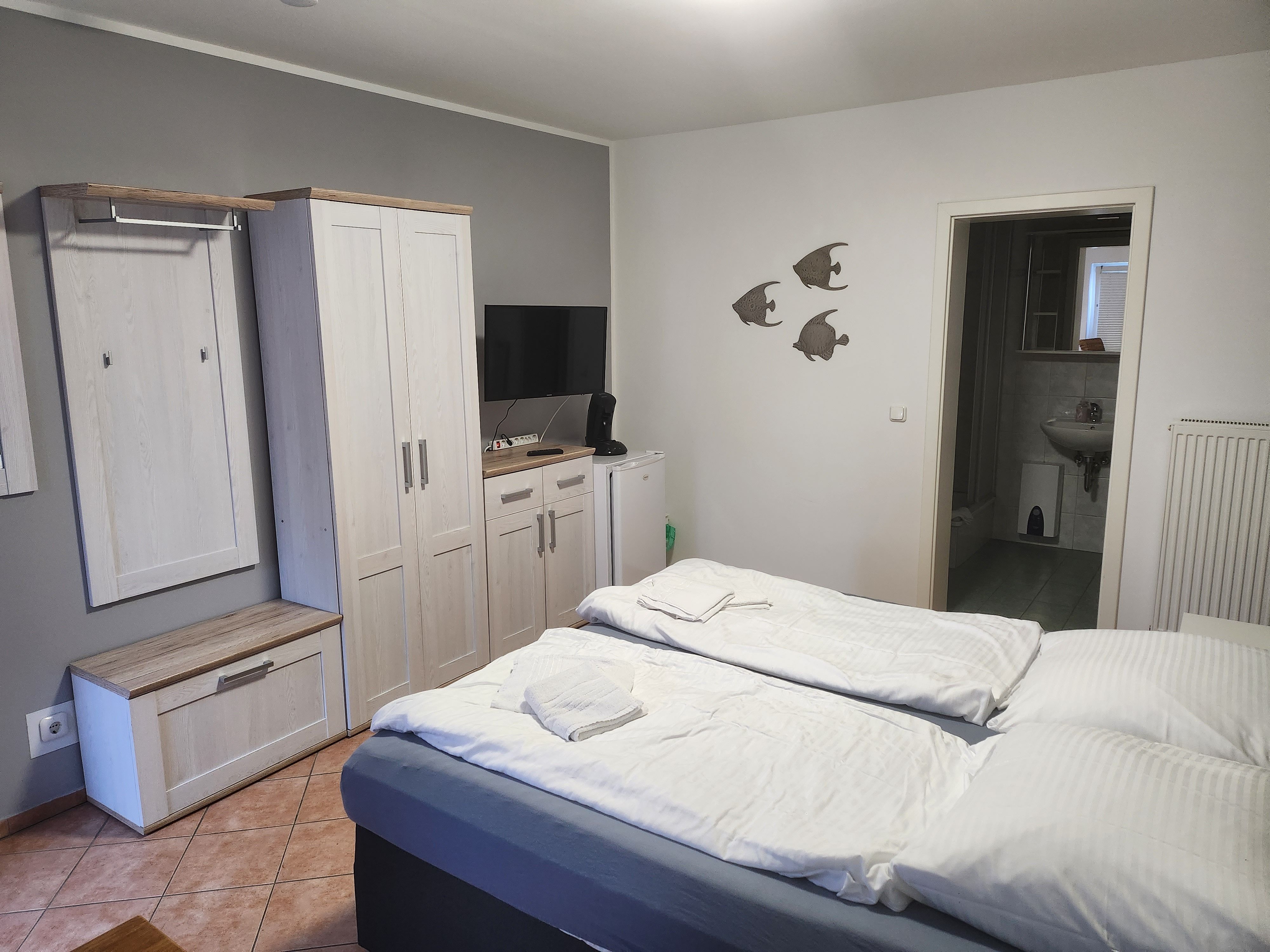 Wie bieten Ihnen in unserer Pension Doppelzimmer mit Bad/Dusche, Doppelbett, TV, Heizung, Kühlschrank, Kaffeemaschine, Toaster, Wasserkocher.