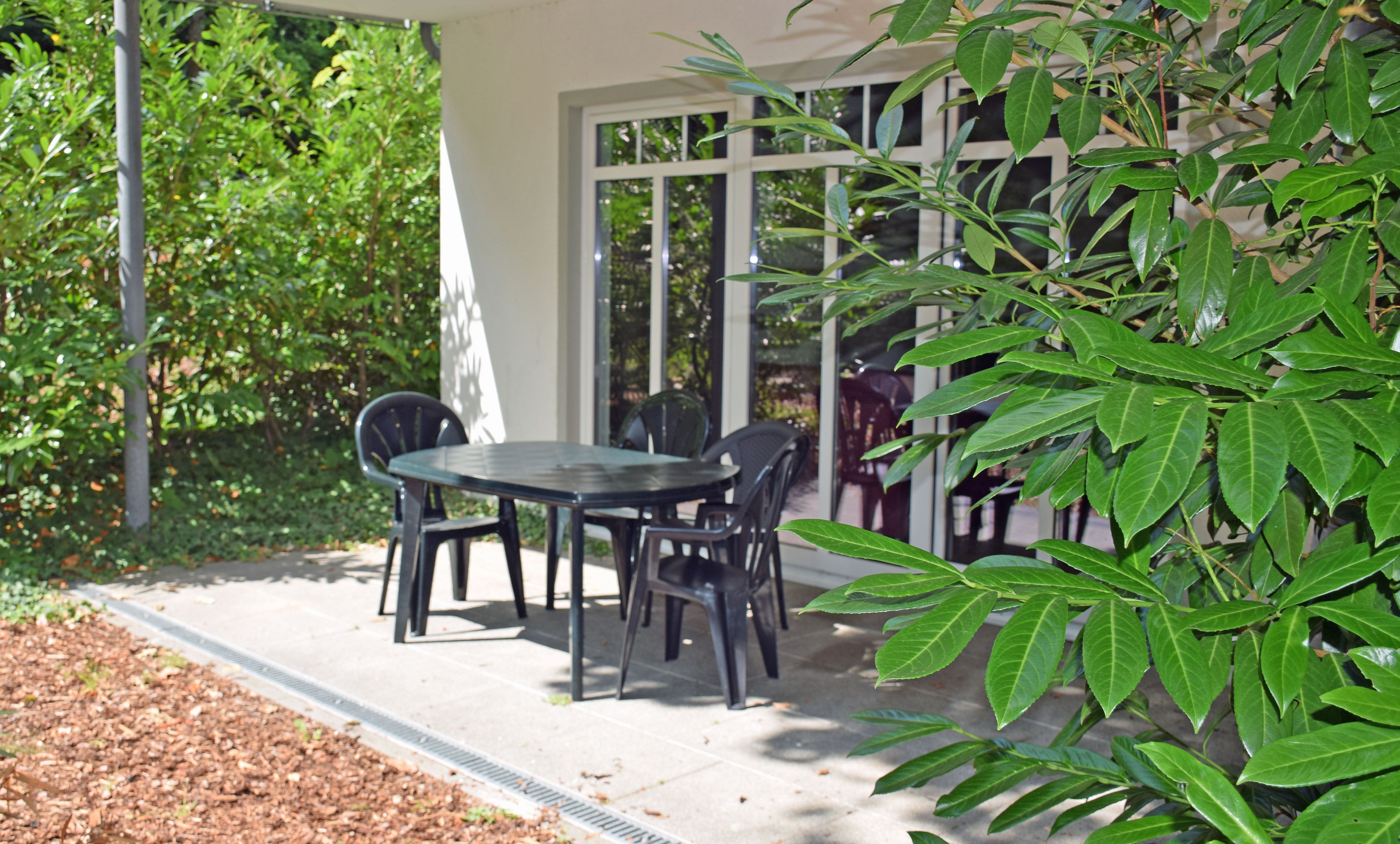 Balkon (Nr. 6, 7 und 9) oder Terrasse (Nr. 4 und 5) mit Gartenmöbeln