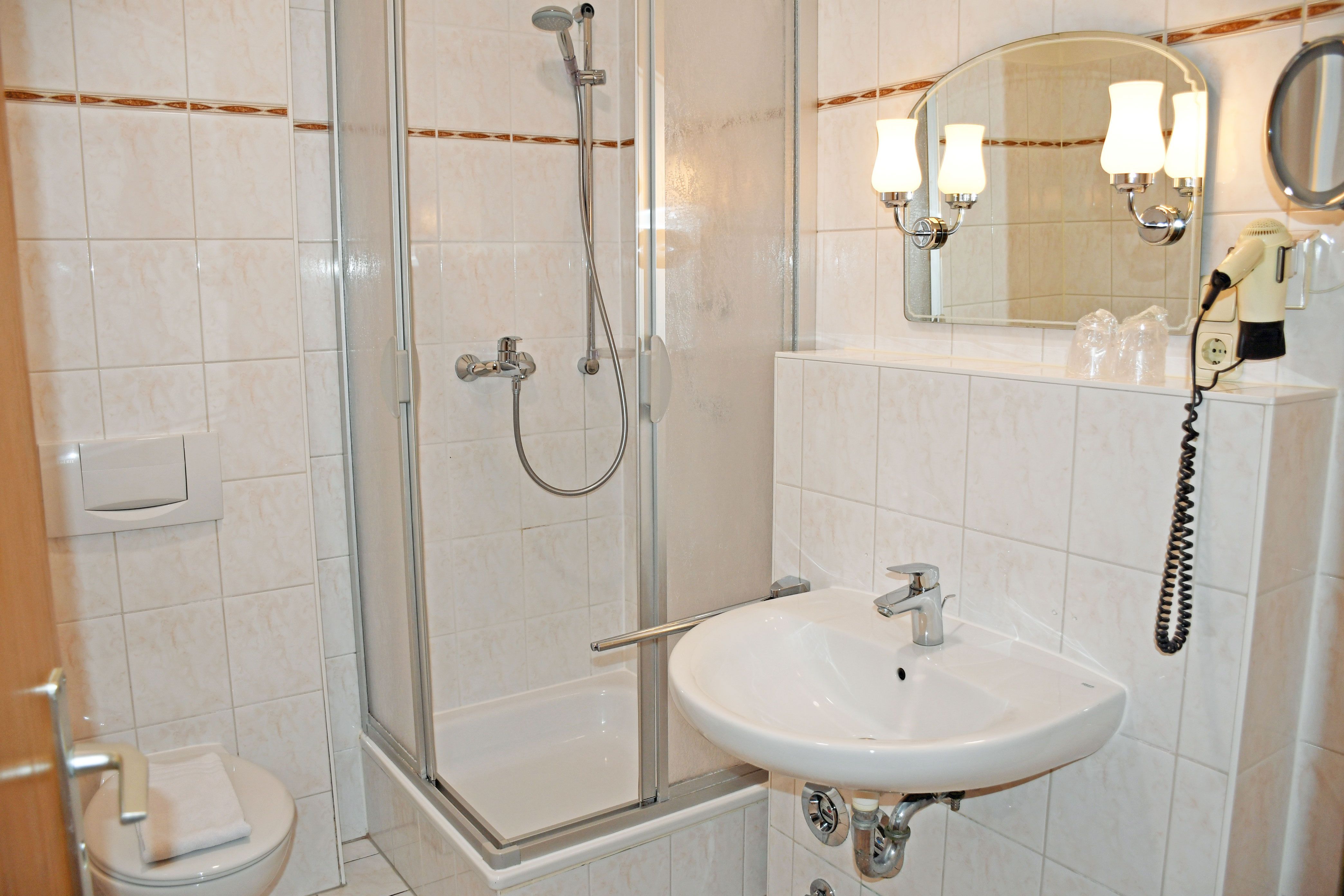Bad mit Dusche, WC und Föhn