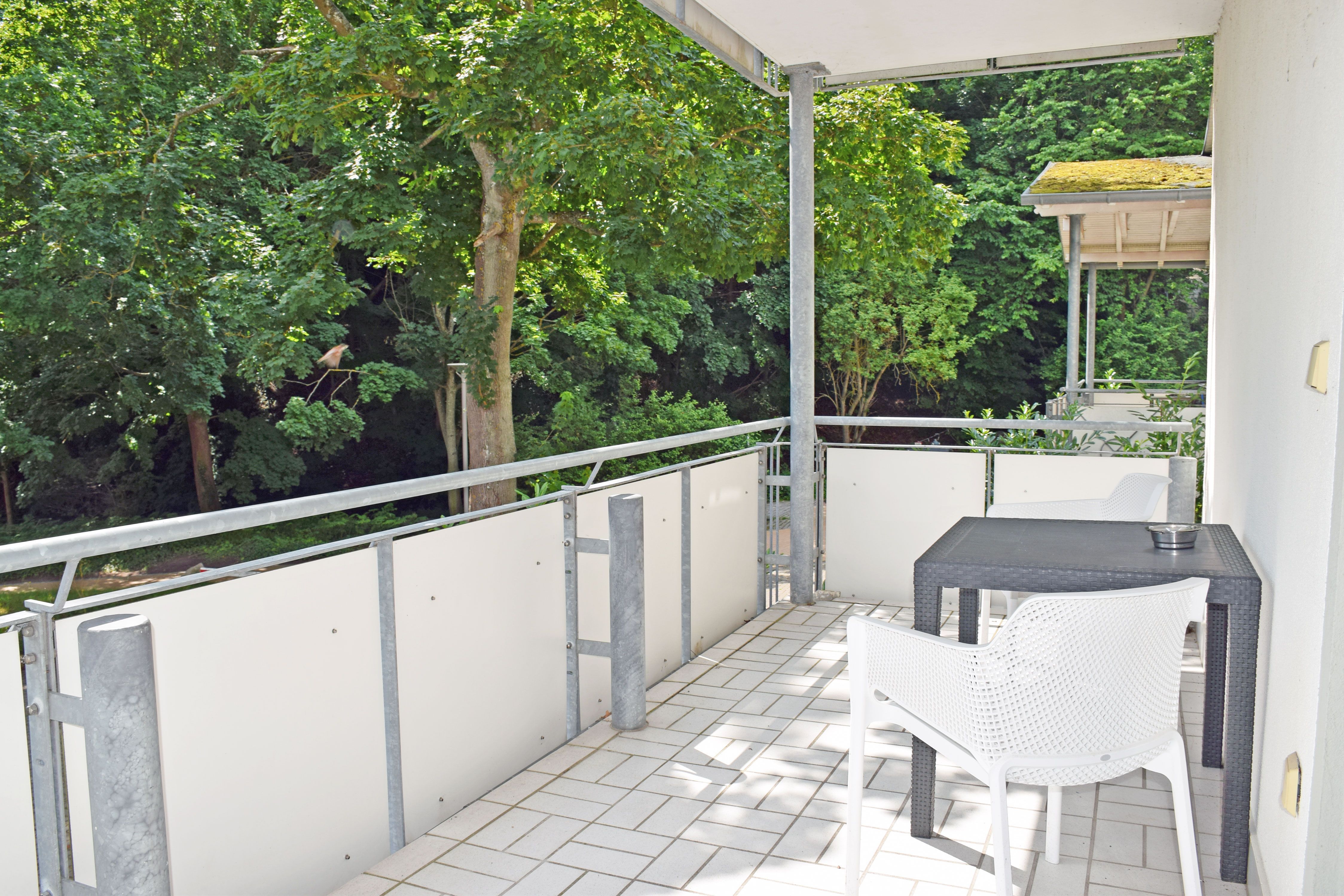 Balkon (Nr. 6, 7 und 9) oder Terrasse (Nr. 4 und 5) mit Gartenmöbeln