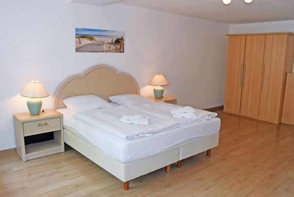 Schlafzimmer mit einem Doppelbett (180 x 200 cm) und großem Kleiderschrank
