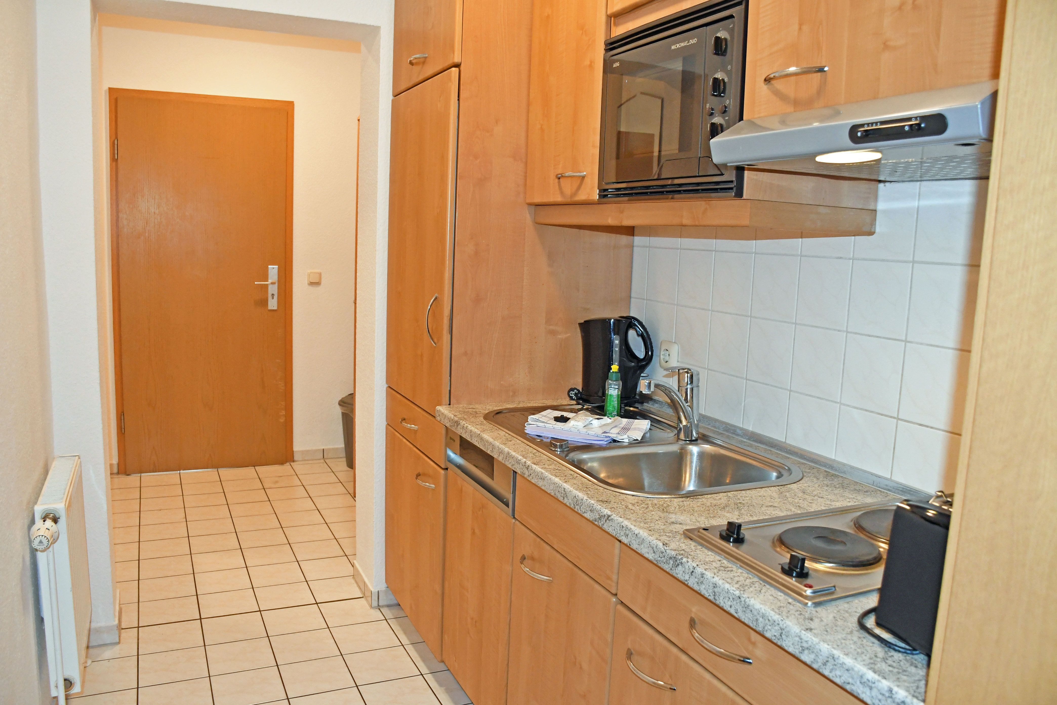 Unsere ruhig gelegenen, hellen und lichtdurchfluteten 2-Raum-Ferienwohnungen mit Balkon oder Terrasse sind wie folgt ausgestattet: