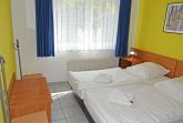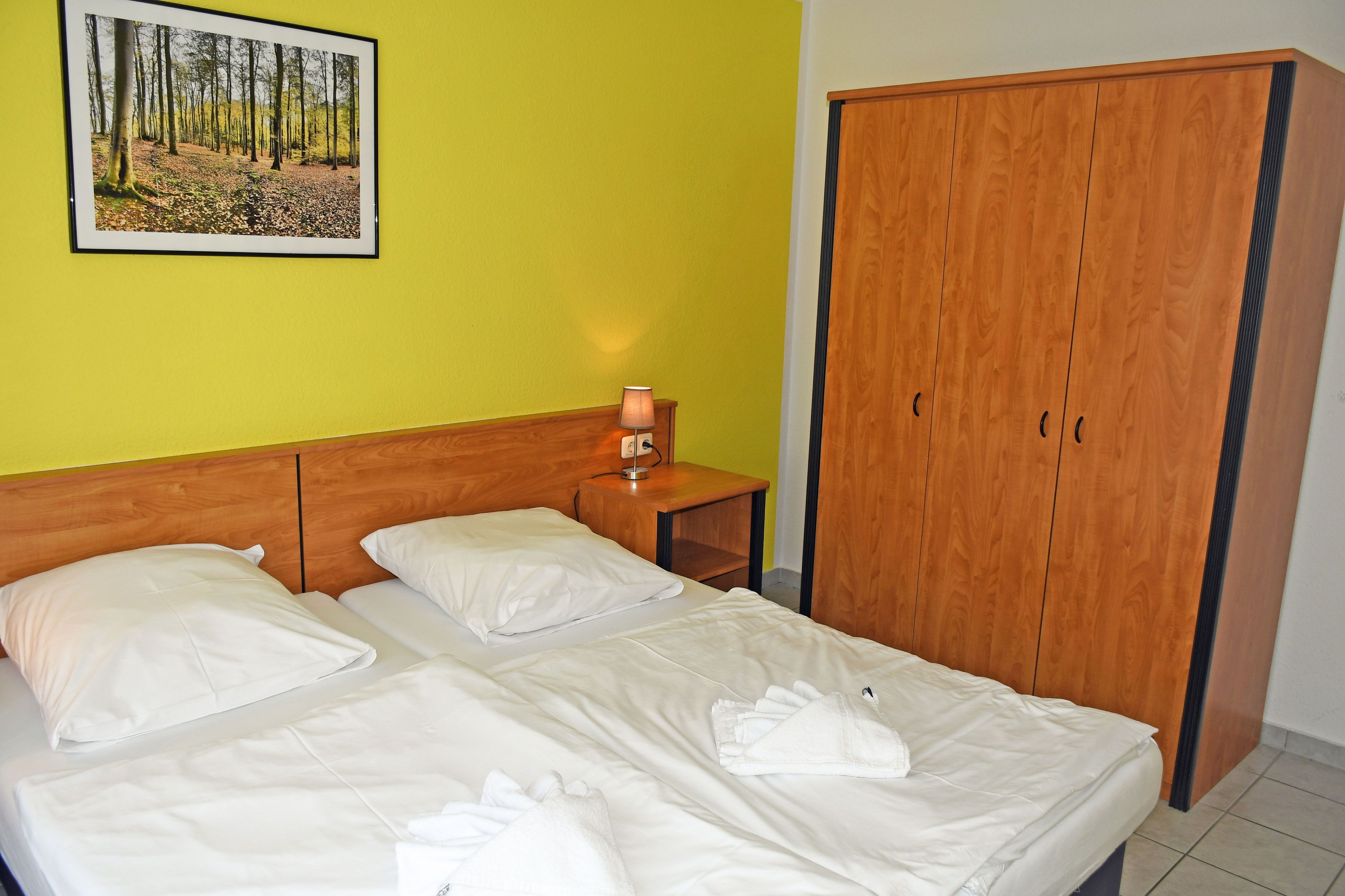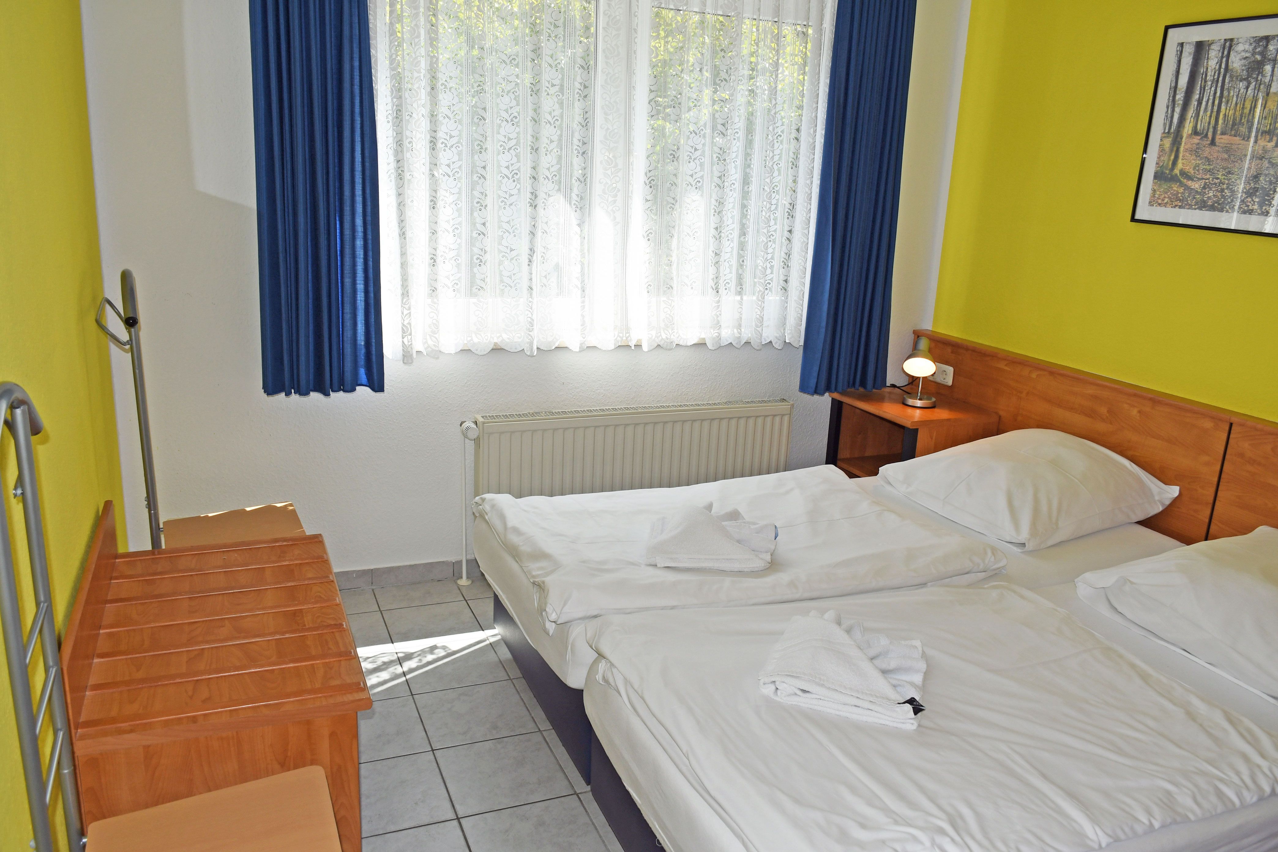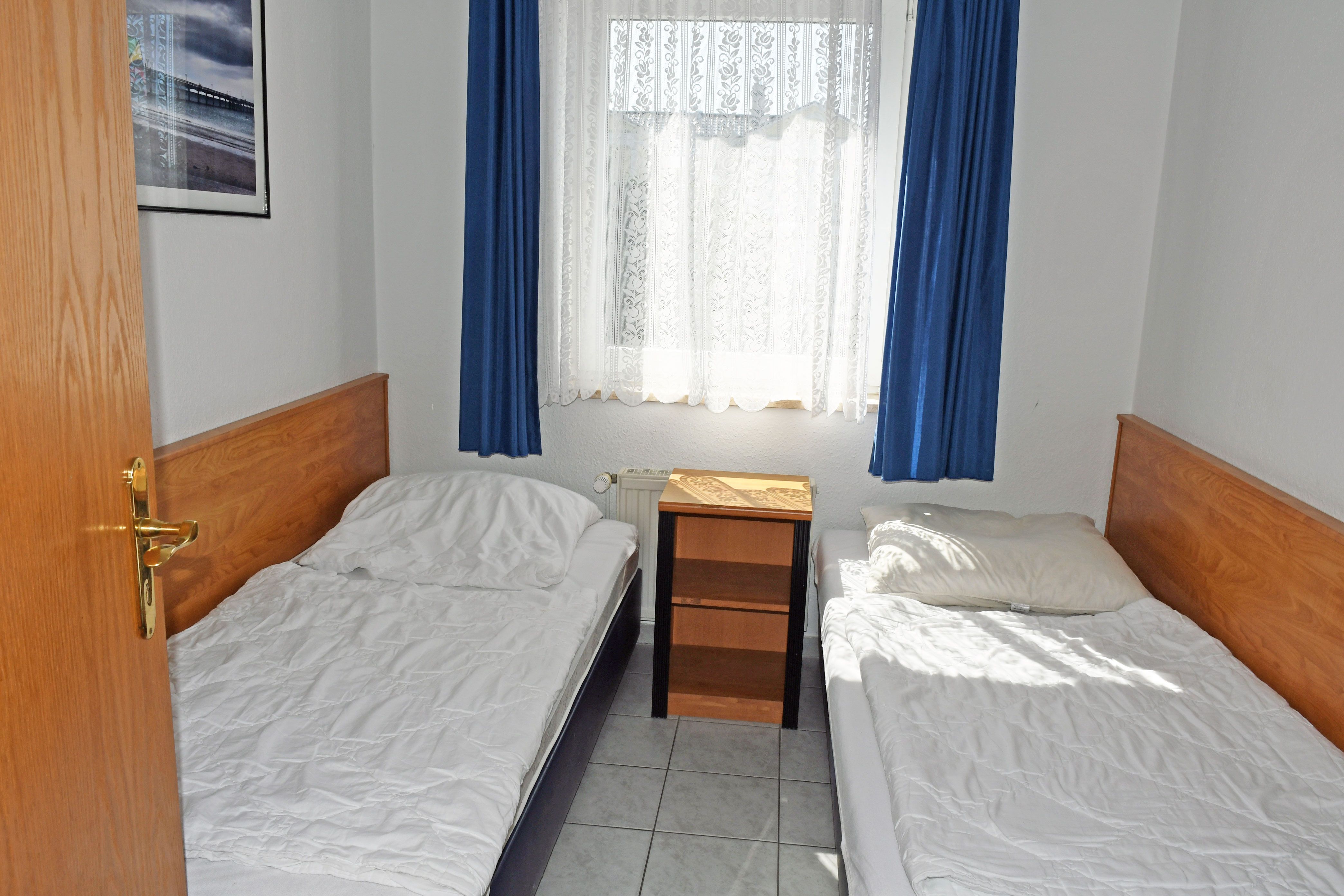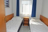 · Schlafzimmer mit 2 Einzelbetten (in der Fewo 18 Etagenbett) und kleinem Schreibtisch