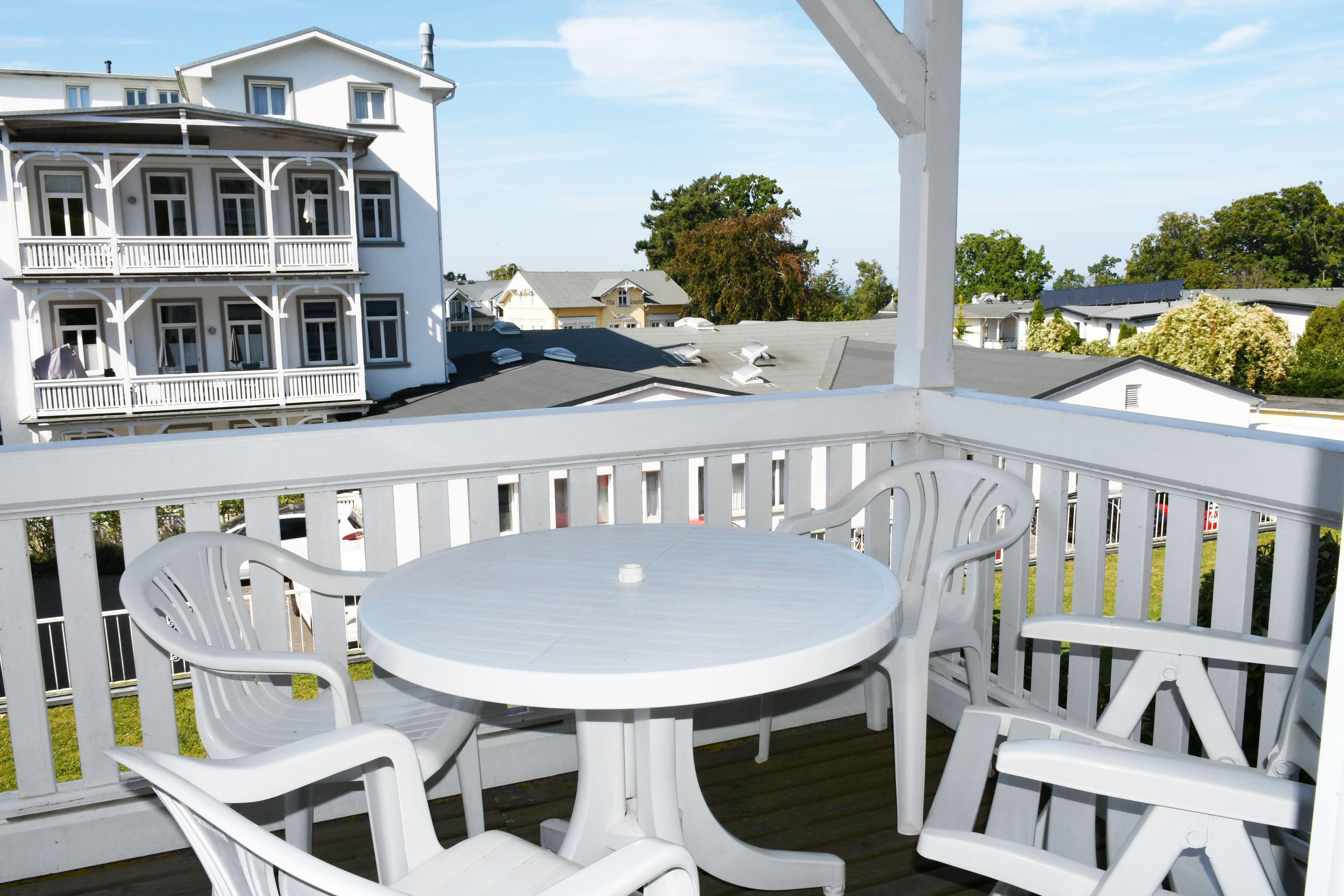 Das modernisierte Appartementhaus ist mit seinem Baustil an die Bäderstilarchitektur aus dem 19. Jahrhundert angelehnt. Schmucke Erker und einladende Balkone vermitteln das Wohlfühl-Ambiente, dass Sie für Ihren Rügen Urlaub erwarten dürfen ...