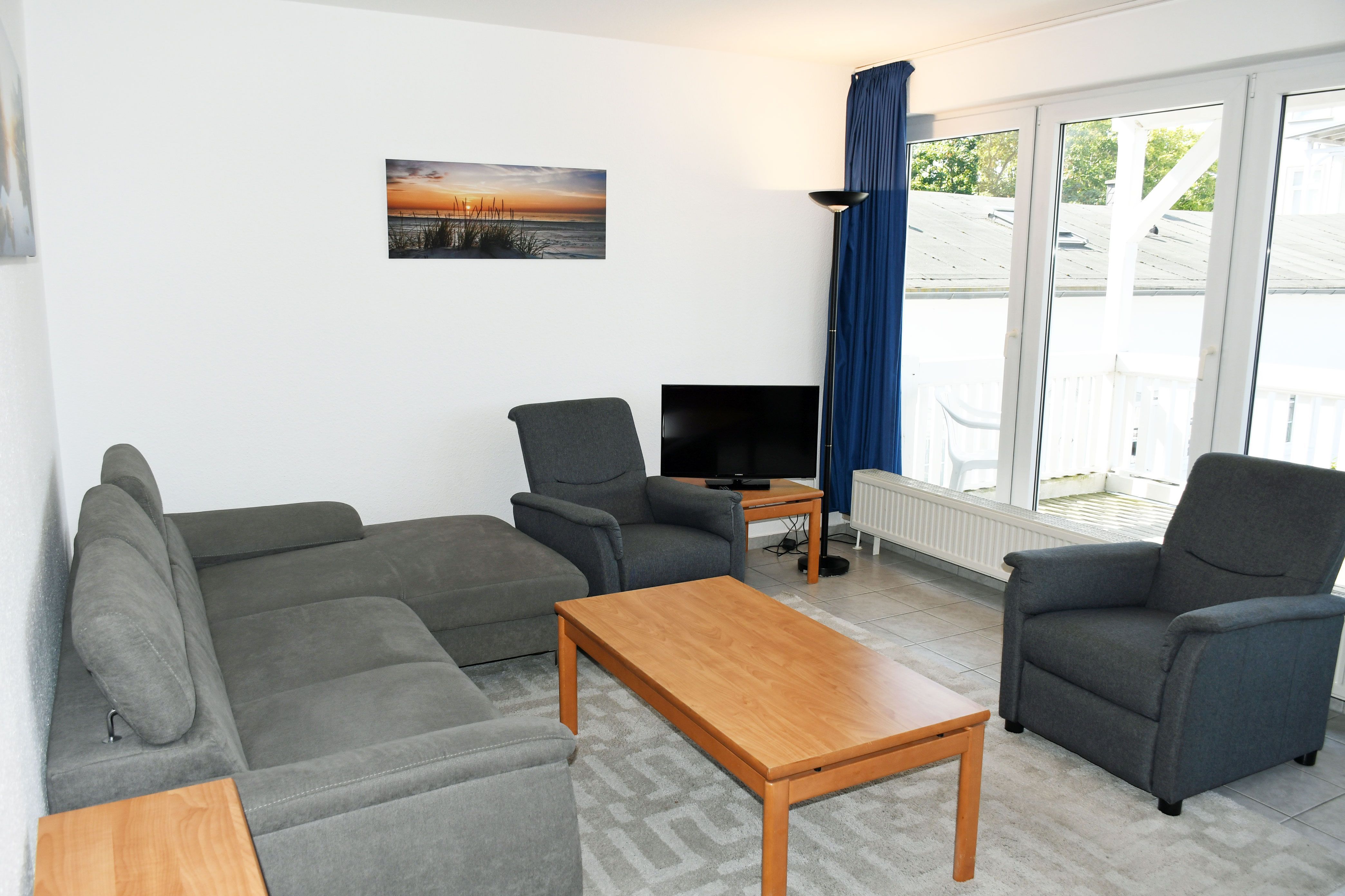 Unsere ruhig gelegenen, hellen und lichtdurchfluteten 3-Raum-Ferienwohnungen mit Balkon sind wie folgt ausgestattet: