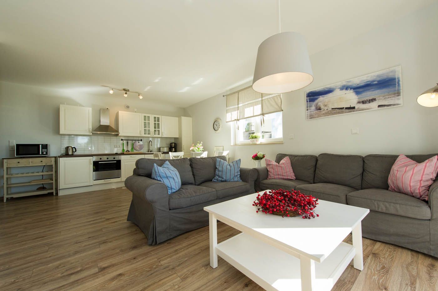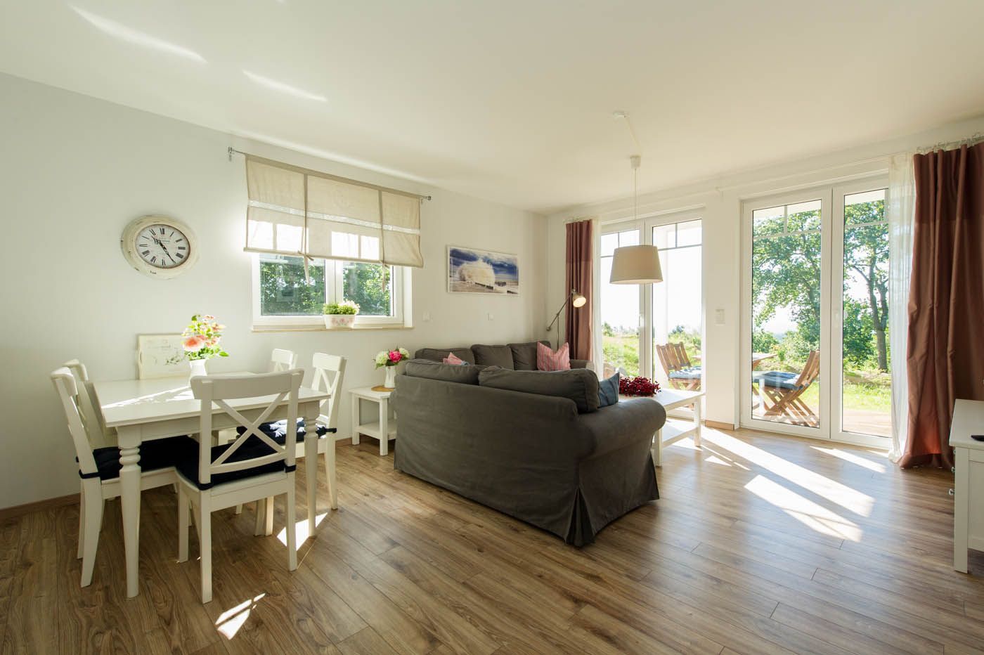 Sowohl für Familien, als auch zu zweit oder 2 befreundete Paare stehen Ihnen hier sehr schöne und hochwertig ausgestattete 3-Raum-Ferienwohnungen zur Verfügung. Alle Ferienwohnungen sind modern eingerichtet und verfügen u. a. über 2 Schlafzimmer und Meerblick. Die Wohnung Nr. 2 bietet darüber hinaus auch einen Kamin.