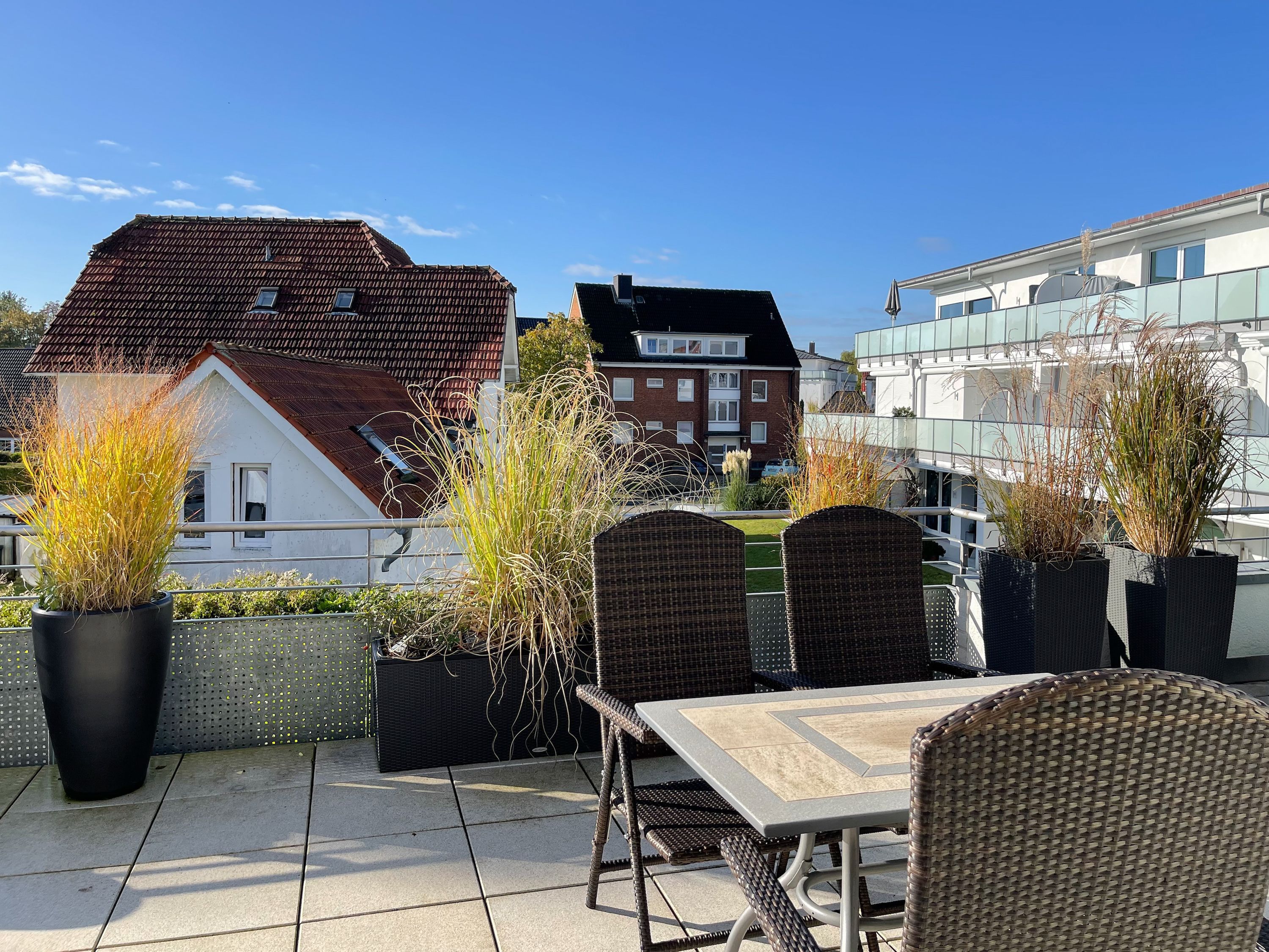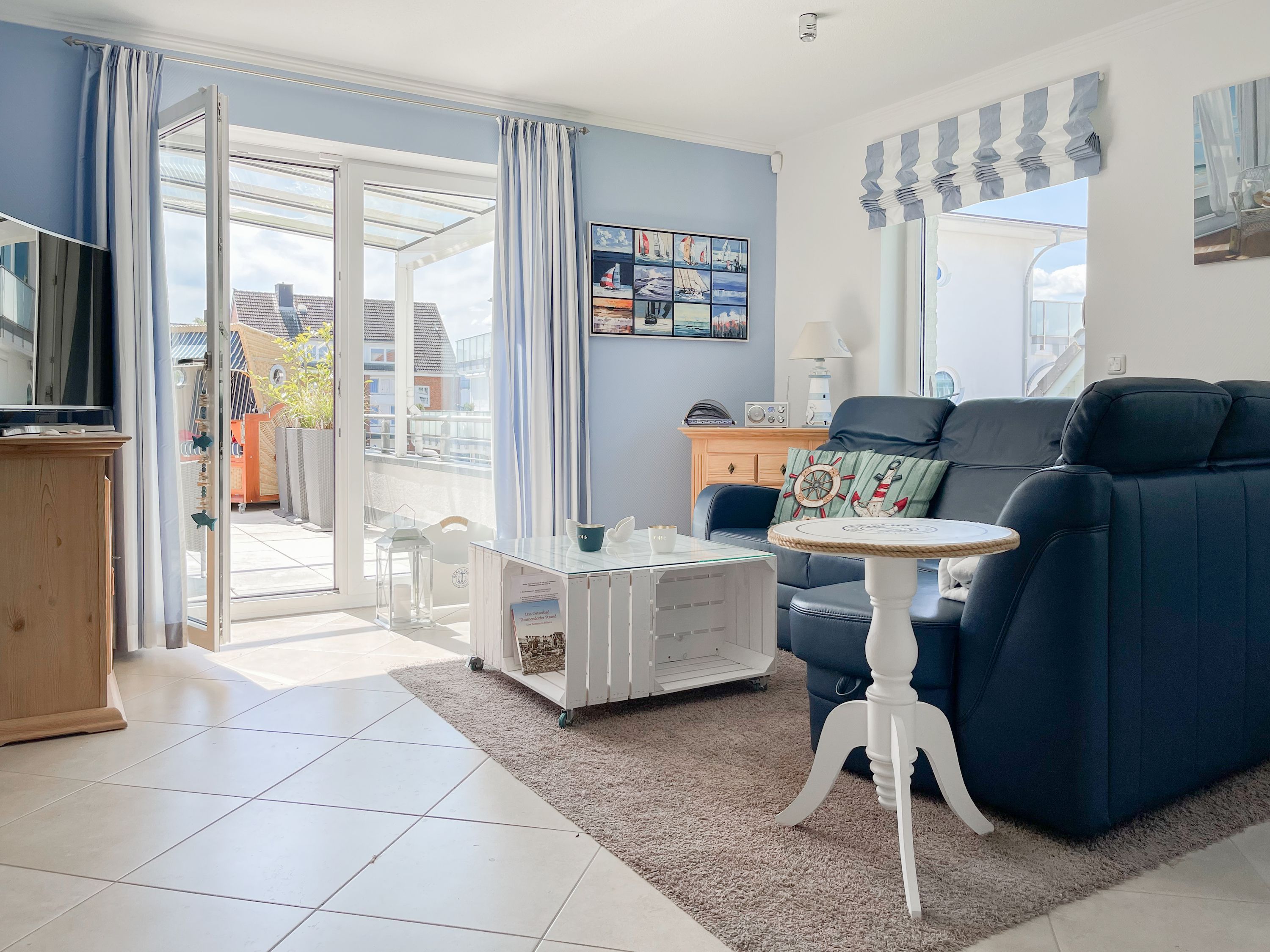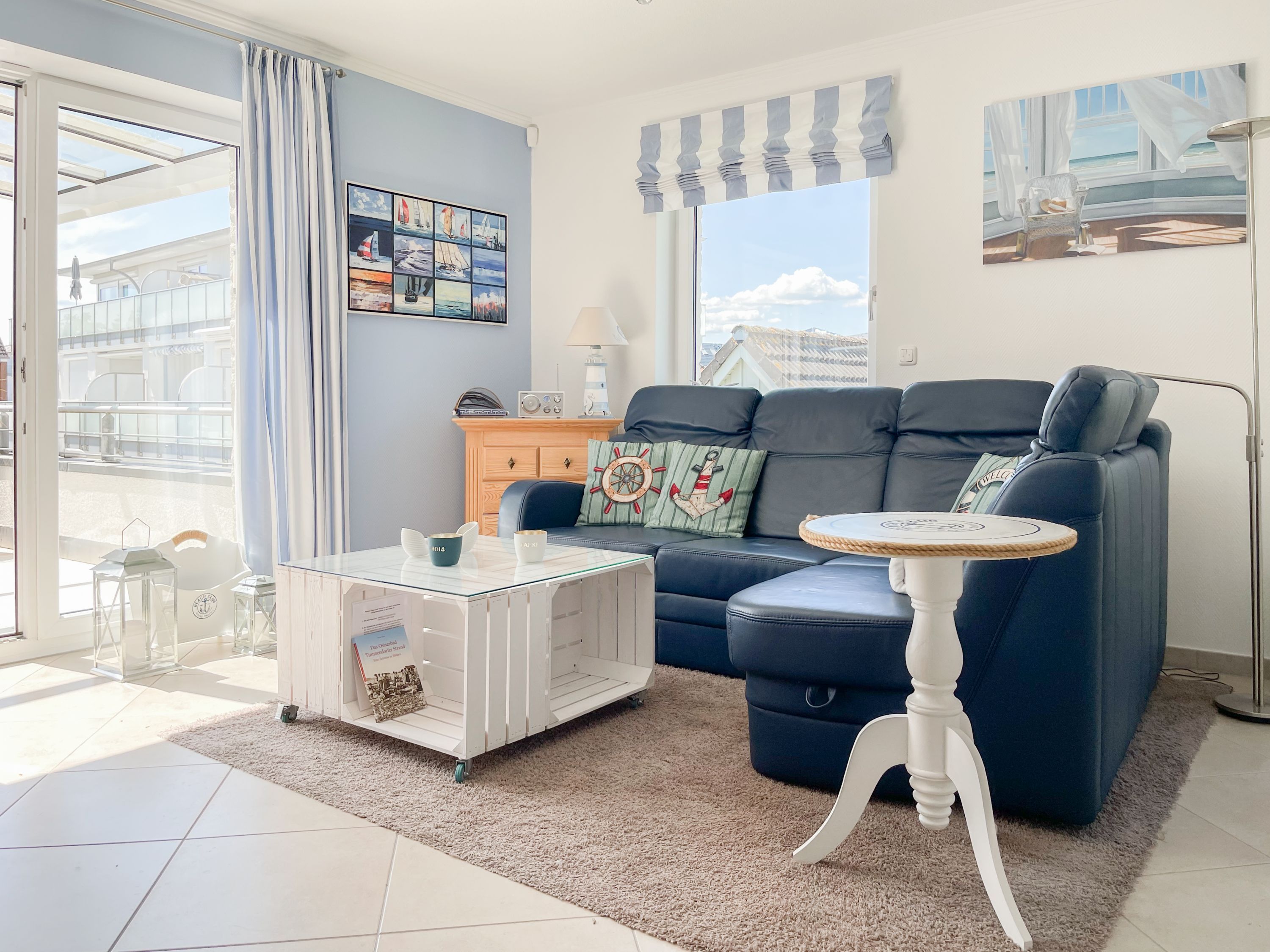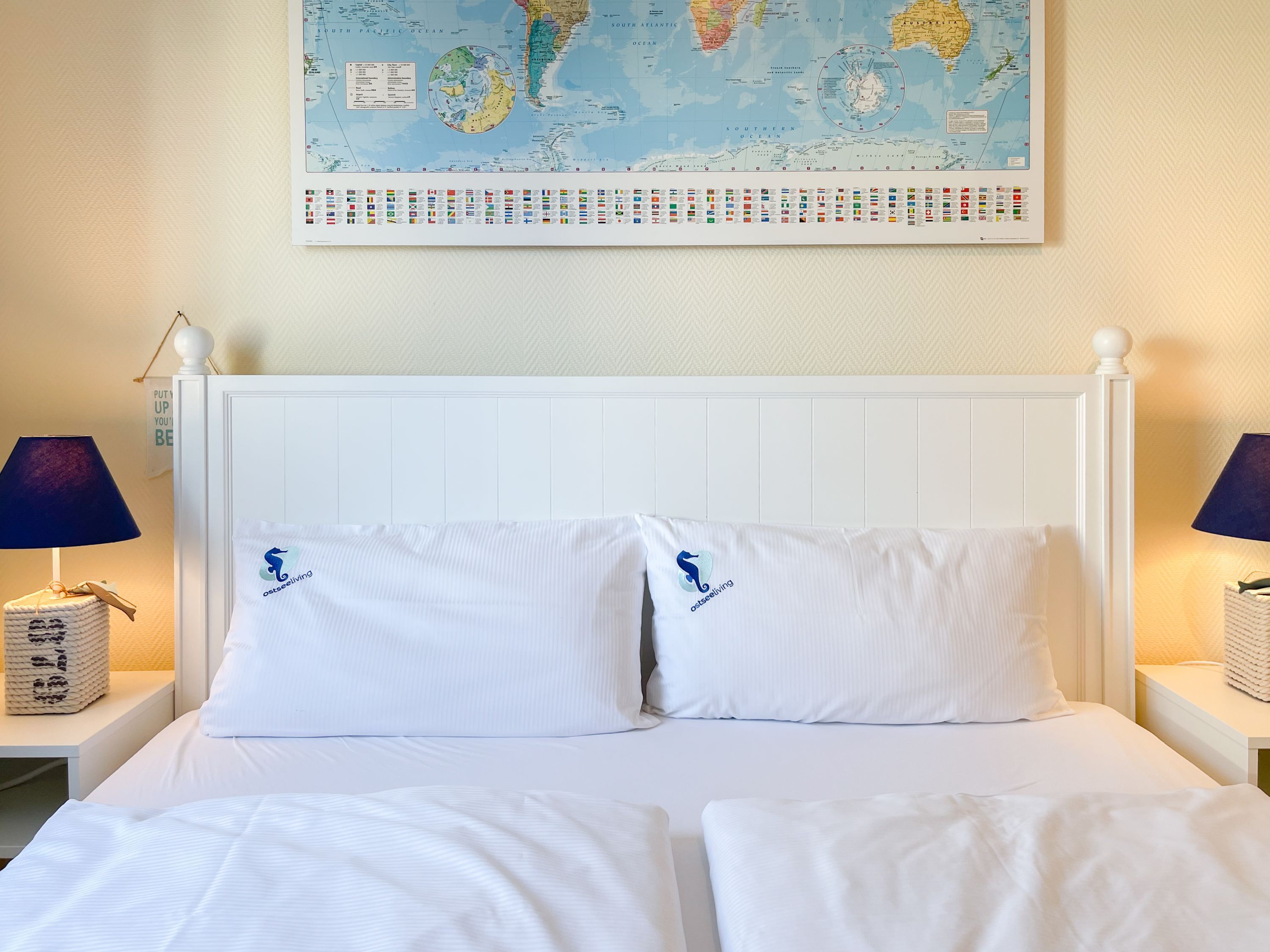 Die Oase 16 befindet sich in der 1. Etage, die bequem mit dem Aufzug zu erreichen ist und ausreichend Raum für 4 Personen bietet, um einen erholsamen Ostseeurlaub zu verleben. Die gemütliche, maritime Einrichtung schafft ein herrliches Ambiente zum wohlfühlen und viel Fensterfläche sorgt für lichtdurchflutete Räumlichkeiten. Alle Fenster der Wohnung sind mit elektrischen Außenjalousien versehen. Das absolute Highlight ist die riesige Dachterrasse in Südwestausrichtung für viele gemeinsame Sonnenstunden, die mit einer Essgruppe, Strandkorb und elektrischen Markisen ausgestattet ist. Der Außenbereich ist zum Teil überdacht und sowohl vom Wohnbereich als auch von einem Schlafzimmer zu betreten. Es stehen zwei separate Schlafzimmer zur Verfügung, die mit Doppelbetten (180x200 und 160x200) und Smart TV ausgestattet sind, sowie ein geräumiges Duschbad mit Fußbodenheizung und Handtuchtrockner. Mittelpunkt der Wohnung bildet der maritime Wohnbereich mit integriertem Essbereich und offener Küchenzeile in bester Ausstattung. Der großzügige Eingangsbereich ist hell gefliest und mit einem Einbauschrank ausgestattet und mit Glastüren vom Wohnbereich getrennt. Im an das Hauptschlafzimmer angrenzenden Wirtschaftsraum befinden sich Waschmaschine und Trockner sowie ein separater Gefrierschrank.