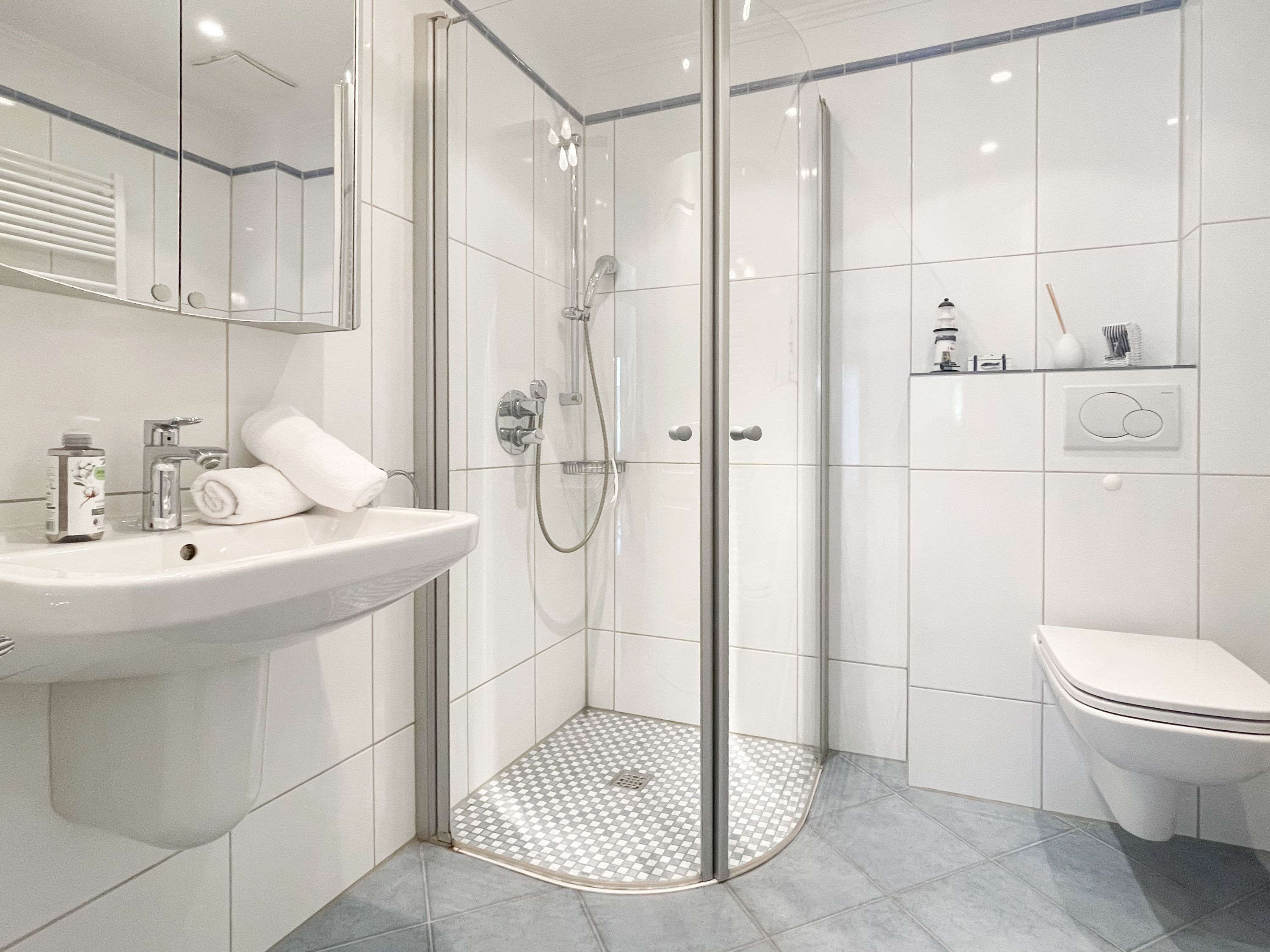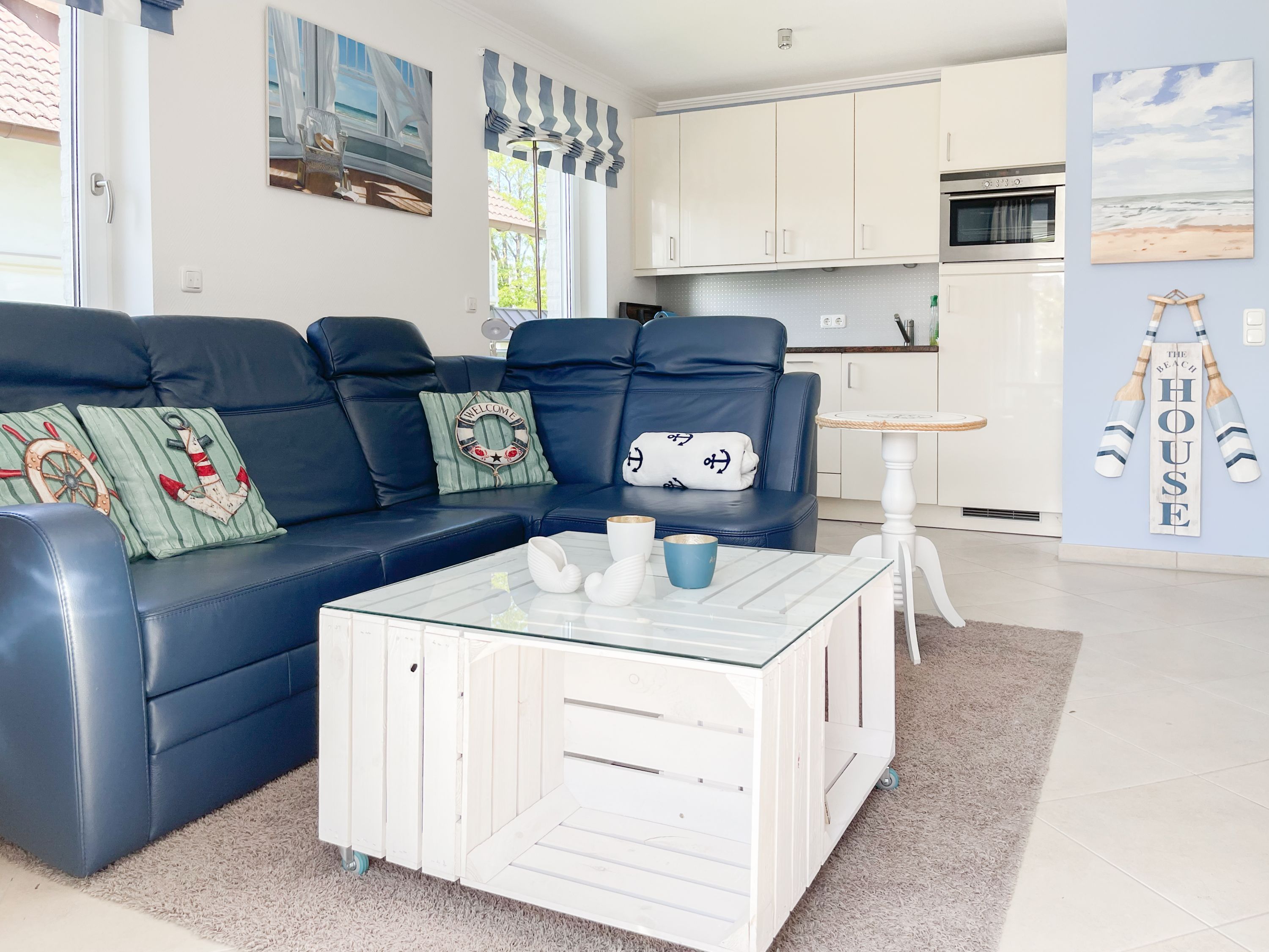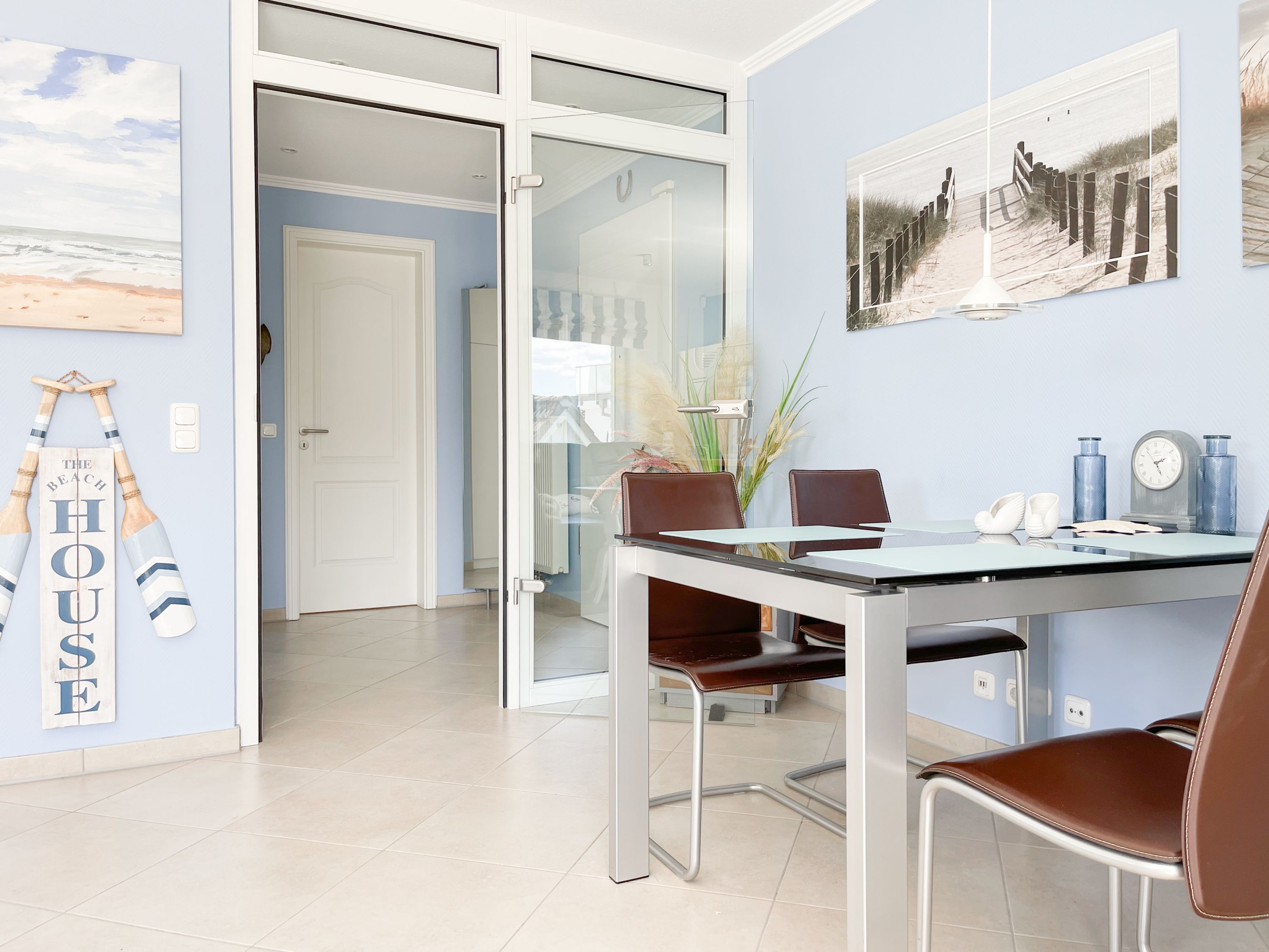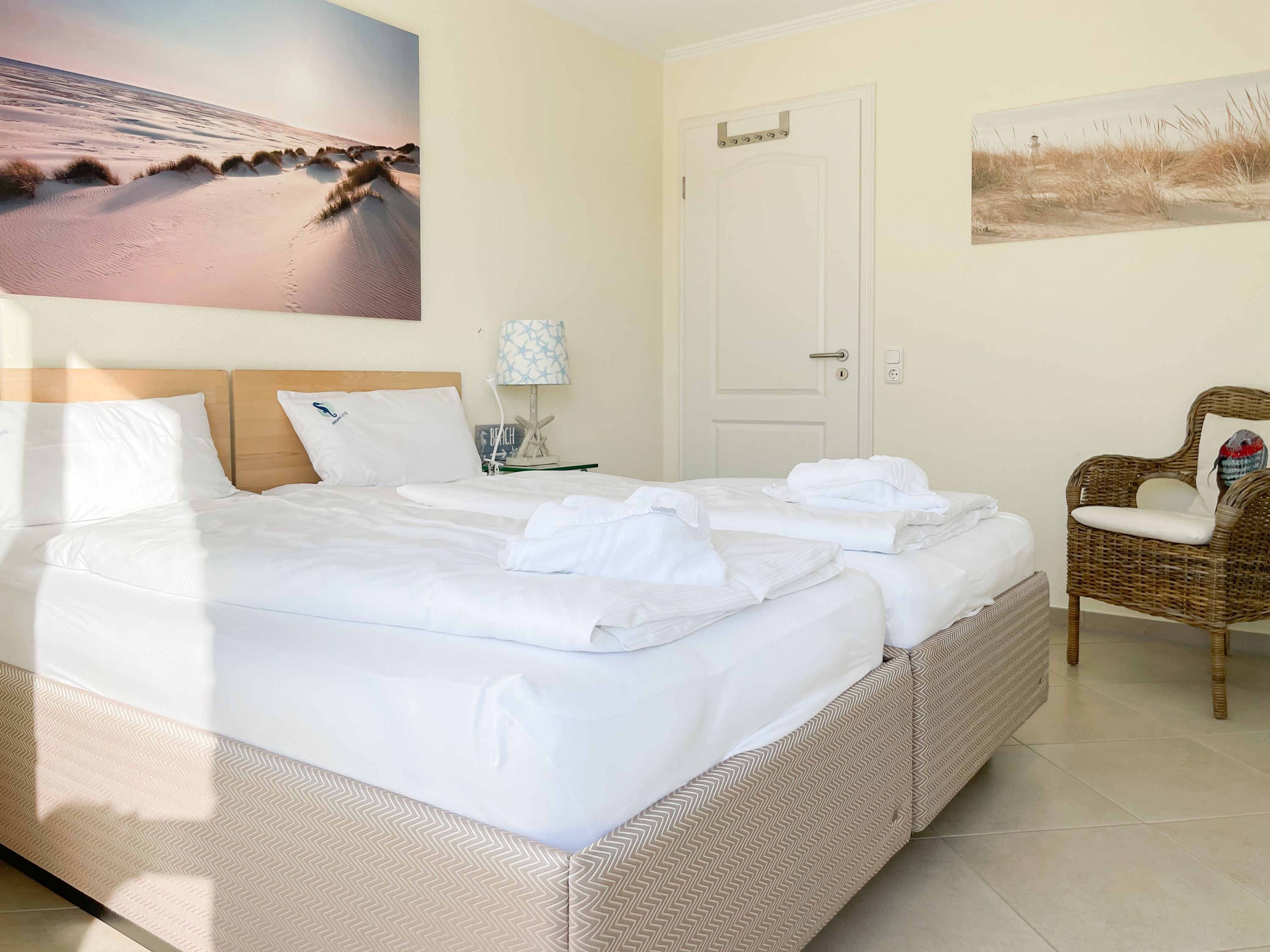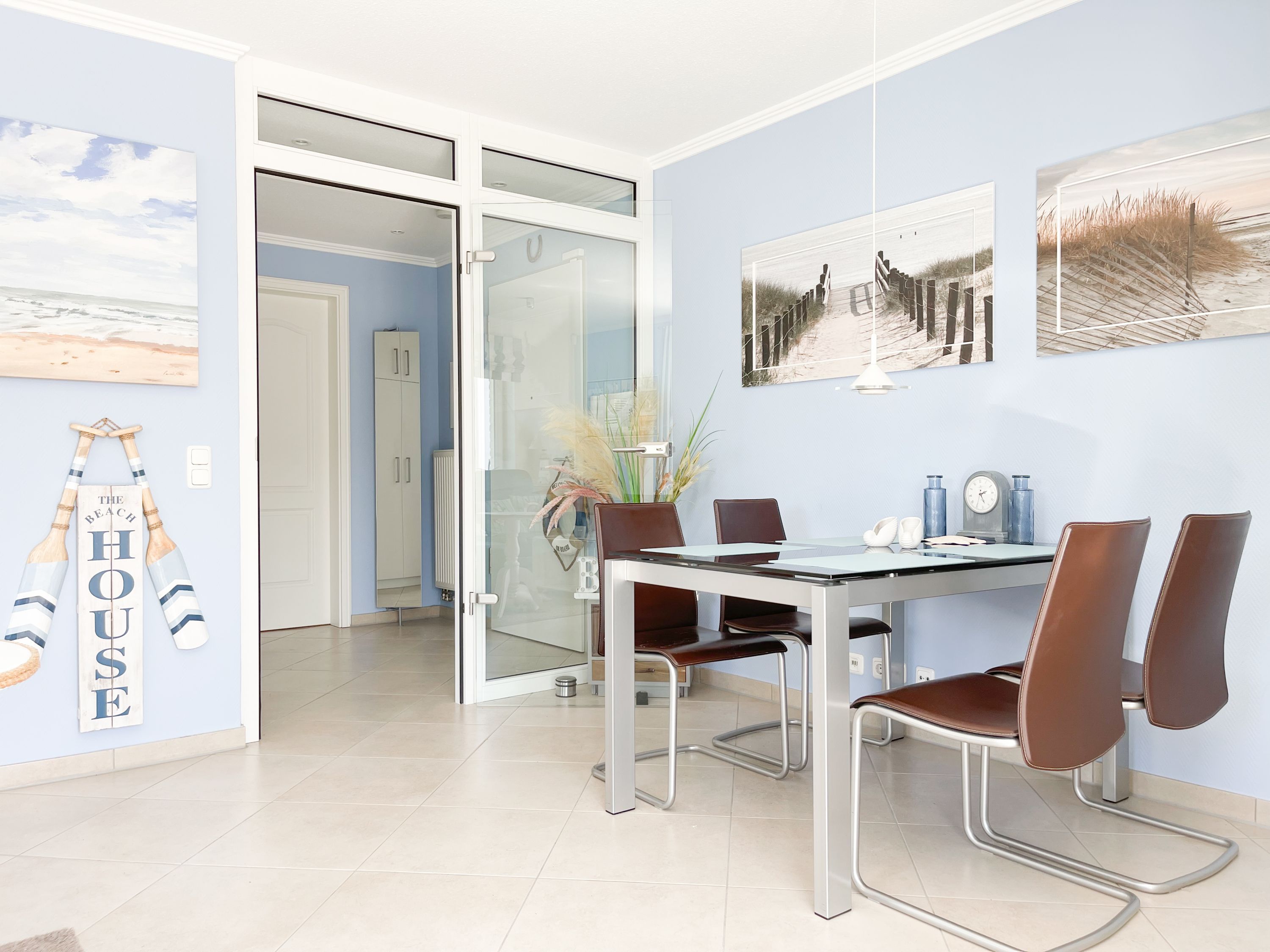 Die Oase 16 befindet sich in der 1. Etage, die bequem mit dem Aufzug zu erreichen ist und ausreichend Raum für 4 Personen bietet, um einen erholsamen Ostseeurlaub zu verleben. Die gemütliche, maritime Einrichtung schafft ein herrliches Ambiente zum wohlfühlen und viel Fensterfläche sorgt für lichtdurchflutete Räumlichkeiten. Alle Fenster der Wohnung sind mit elektrischen Außenjalousien versehen. Das absolute Highlight ist die riesige Dachterrasse in Südwestausrichtung für viele gemeinsame Sonnenstunden, die mit einer Essgruppe, Strandkorb und elektrischen Markisen ausgestattet ist. Der Außenbereich ist zum Teil überdacht und sowohl vom Wohnbereich als auch von einem Schlafzimmer zu betreten. Es stehen zwei separate Schlafzimmer zur Verfügung, die mit Doppelbetten (180x200 und 160x200) und Smart TV ausgestattet sind, sowie ein geräumiges Duschbad mit Fußbodenheizung und Handtuchtrockner. Mittelpunkt der Wohnung bildet der maritime Wohnbereich mit integriertem Essbereich und offener Küchenzeile in bester Ausstattung. Der großzügige Eingangsbereich ist hell gefliest und mit einem Einbauschrank ausgestattet und mit Glastüren vom Wohnbereich getrennt. Im an das Hauptschlafzimmer angrenzenden Wirtschaftsraum befinden sich Waschmaschine und Trockner sowie ein separater Gefrierschrank.