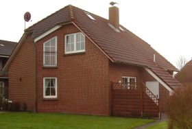 Modernes Nichtraucher Klinker Ferienhaus mit sichtgeschützter Terrasse und kleinem Garten. Zwei Schlafzimmer. Abschliessbares Gartenhaus. Hund erlaubt.