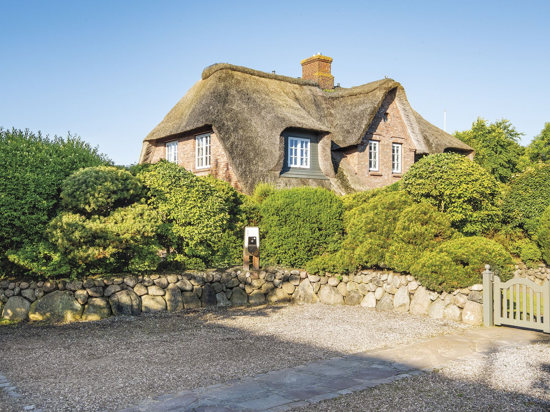 Bei der Ausstattung dieser Haushälfte wurde an nichts gespart: Die Holzeinbauten sind edel und im Sylter Stil. Im Erdgeschoss setzen die antiken Terracottaböden genauso einen Akzent wie die abgeschlossene hübsche Landhausküche in edlem Grau. Der Wohn-/Essbereich bietet viel Platz und wird gekrönt von einer Frühstücksterrasse nach Osten und einer Sonnenterrasse nach Süden. Im Obergeschoss erwarten Sie ein Doppelschlafzimmer mit WC en suite und ein Einzelschlafzimmer mit GrandLit, sowie ein separates Duschbad. Ganz besonders kuschelig ist die Schlafgelegenheit in der offenen Galerie des Spitzbodens. Das Untergeschoss ist über eine Treppe aus dem Wohnzimmer zu erreichen, neben einer Sauna-/Sanariumanlage mit kleiner Sitzecke befinden sich hier noch ein Weinkühlschrank, ein Doppelschlafzimmer mit Einbauschränken und ein Vollbad. Alle Schlafzimmer verfügen über einen TV. Ober- und Untergeschoss sind mit Sisalauslegeware ausgestattet.