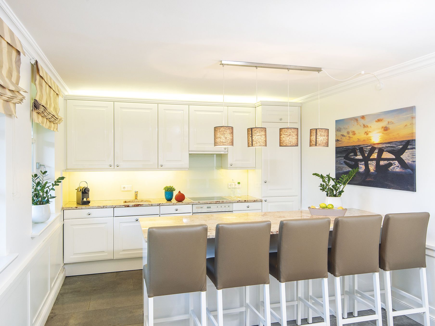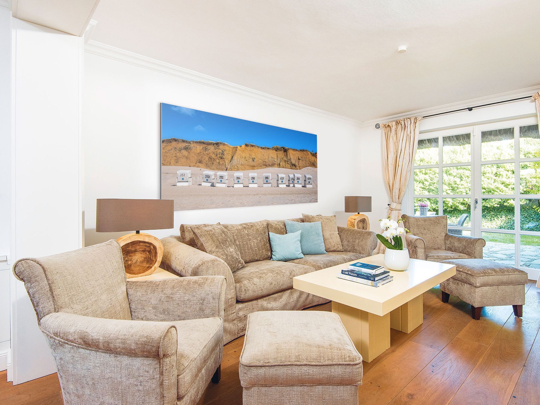 In einem wunderschön eingewachsenen Garten liegt das Haus Peter. Sie werden von einem großen, hellen Wohn- und Essbereich empfangen, hier lassen sich gemütliche Abende in geselliger Runde verbringen. Von dort aus gelangen Sie auch auf die Terrasse im Süd-Osten des Hauses. Ebenfalls auf dieser Ebene finden Sie ein Gäste-WC und ein großzügiges Schlafzimmer für eine Person. Das gesamte Quartier ist mit wunderschönem Holzfußboden ausgelegt. Das Obergeschoss verfügt über zwei Doppelschlafzimmer mit TV. Das größere mit Blick nach Osten in den Garten hat einen direkten Zugang zum Bad mit Eckbadewanne - kuscheliges Relaxen an kühlen Tagen ist hier garantiert. Das andere Doppelschlafzimmer begeistert mit freiem Blick zum Quermarkenfeuer und den oftmals spektakulären Sonnenuntergängen in Kampen. Ein Duschbad und ein drittes Schlafzimmer mit einem gemütlichen Doppelbett finden Sie ebenfalls auf dieser Etage. Versteckt im großzügigen Garten finden Sie eine gemütliche Sitzecke mit Sonne zu jeder Tageszeiten.