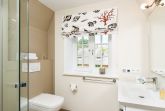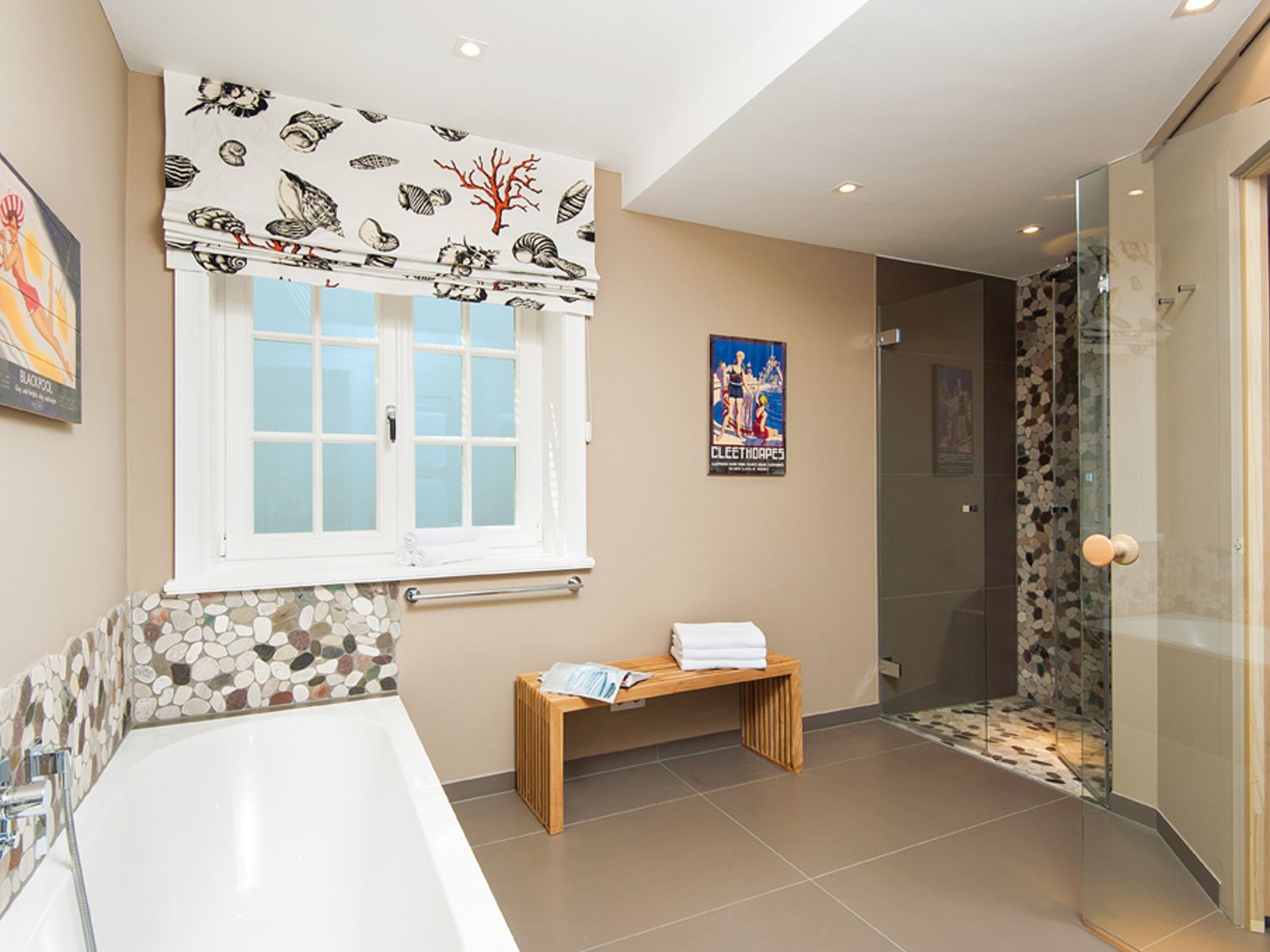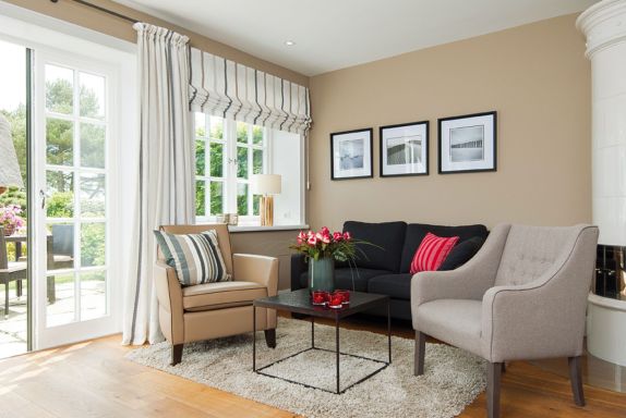 Diese Haushälfte befindet sich in ruhiger Lage unmittelbar am Naturschutzgebiet Braderuper Heide. Dennoch gelangen Sie fußläufig schnell ins Zentrum von Kampen. Dieses Quartier erwartet seine Gäste mit einer Vielzahl von Wohlfühl-Faktoren. Der großzügige Garten mit Terrasse und separatem Strandkorbplatz lädt zum Verweilen ein. Das Ambiente auf den drei Ebenen des Hauses erfreut durch liebevoll ausgesuchte Ausstattung, Dekoration und den modern interpretierten Landhaus Stil. Im Erdgeschoss befindet sich ein helles Wohnzimmer mit einem antiken, nordischen Kachelofen, einer offene Küche und ein Gäste WC. Im Obergeschoss erwartet Sie ein Schlafzimmer mit einem großzügigen Einzelbett, sowie ein Doppelschlafzimmer mit Duschbad und Aussicht auf das Wattenmeer. Das Untergeschoss ist ausgestattet mit einem weiteren Doppelschlafzimmer, einem Duschbad und einer behaglichen Sauna, samt Dusche und Badewanne. Ein rundum kuscheliges, charismatisches Haus zum Wohlfühlen.