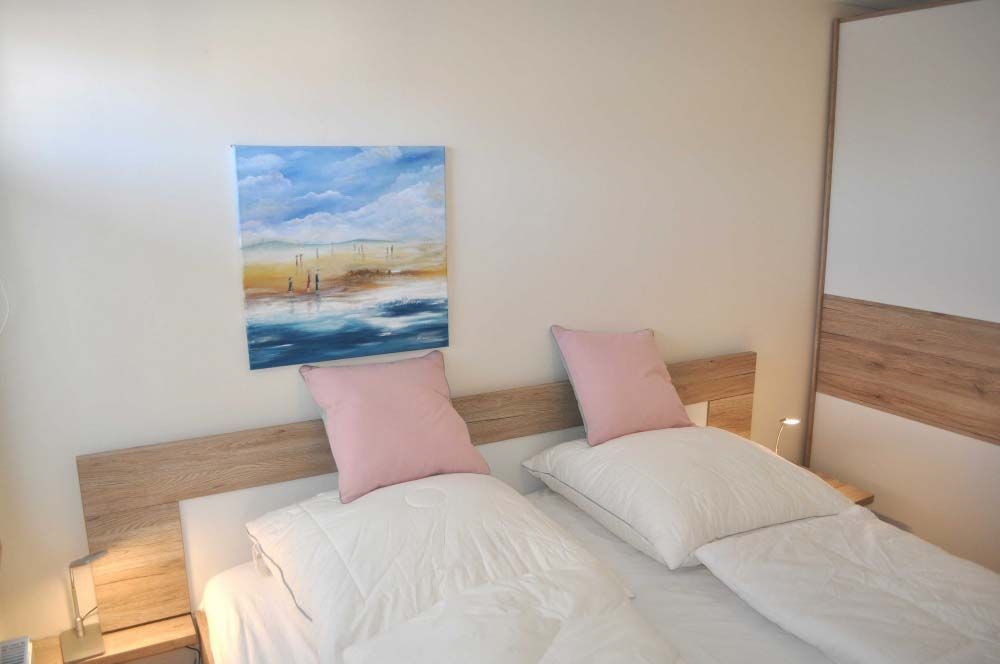 Schlafzimmer 1: 2 Matratzen, Ablage, Doppelbett 2,00 x 1,80 m, Flachbildschirm, Kabel-TV, Kleiderschrank, Nachttisch, Staubsauger, Verdunklungsrollo