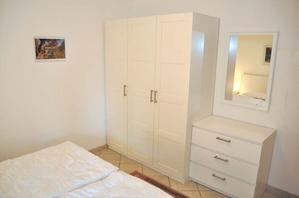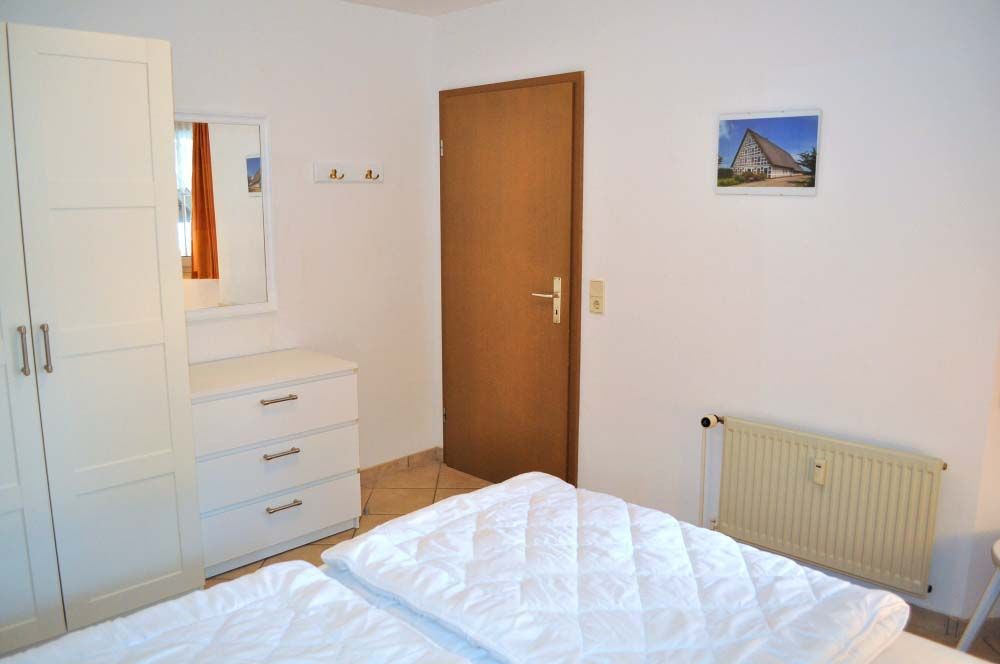 Schlafzimmer 1: 2 Nachttische, Doppelbett, Klappstuhl, Radiowecker, Schrank, Spiegel, Stuhl