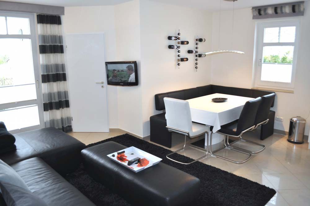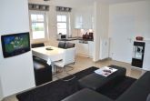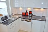 Wohnzimmer: 3 Lederstühle, 4 Plattenherd mit Ceranfeld, Dunstabzugshaube, Eierkocher, Einbauküche, Esstisch, Flachbildschirm, Geschirr, Kabel-TV, Kaffeemaschine, Kochtöpfe, Kofferradio mit CD-Player, Kühlschrank mit Gefrierfach, Lederecksitzbank, Lederfußbank, Lederschlafcouch, Mikrowelle, Nespresso Maschine, Sideboard, Spülmaschine, Stehlampe, Wasserkocher
