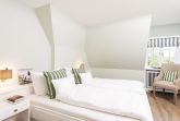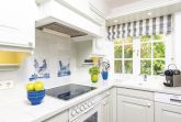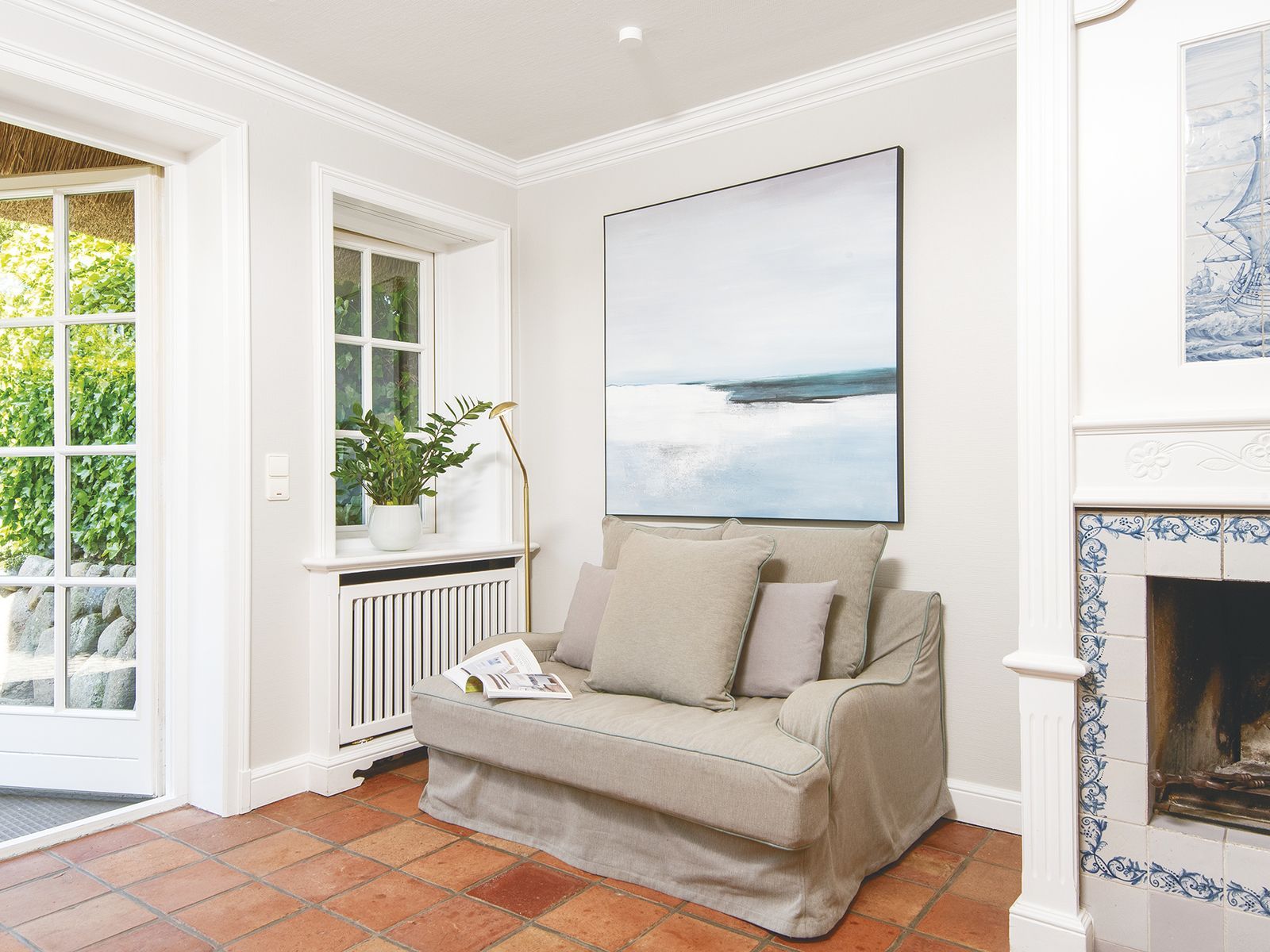 Gemütliches Ambiente nur einen kleinen Fußmarsch von Kampens Zentrum entfernt und alles, was vier Personen zum Wohlfühlen brauchen. Schon der Weg zum Haus führt Sie durch einen romantisch eingewachsenen Gang. Vom kleinen Flur gelangt man direkt in den behaglichen Wohnbereich mit Kamin und Essecke für Vier, offener Küche und Zugang zur Terrasse gen Westen samt Strandkorb. Das Hausteil hat ein Doppelschlafzimmer mit Duschbad im Obergeschoss und ein weiteres Doppelschlafzimmer mit Wannenduschbad im Untergeschoss. Das gesamte Hausteil ist mit Fliesen und Laminat ausgelegt.