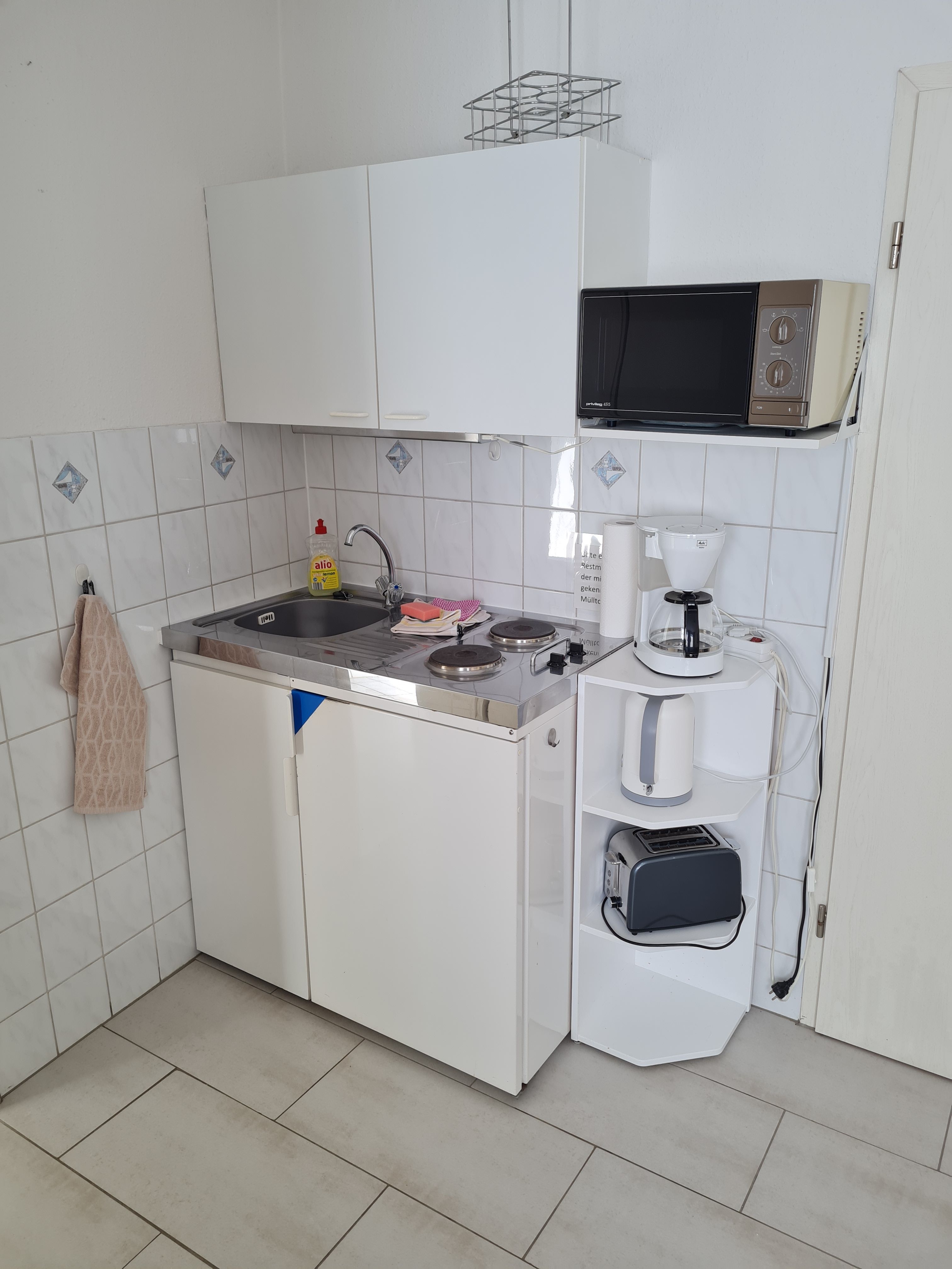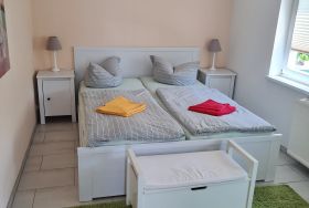 Unsere Zweiraum-Ferienwohnung befindet sich im Erdgeschoss und ist für bis zu 2 Personen geeignet. Die Ferienwohnung bietet einen kombinierten Wohn- und Küchenbereich sowie ein separates Schlafzimmer mit Doppelbett und ein Badezimmer mit Dusche/WC. Eine gemütliche Sitzecke im Garten mit Grillmöglichkeit lädt zum Verweilen ein. Ein Parkplatz ist inklusive.