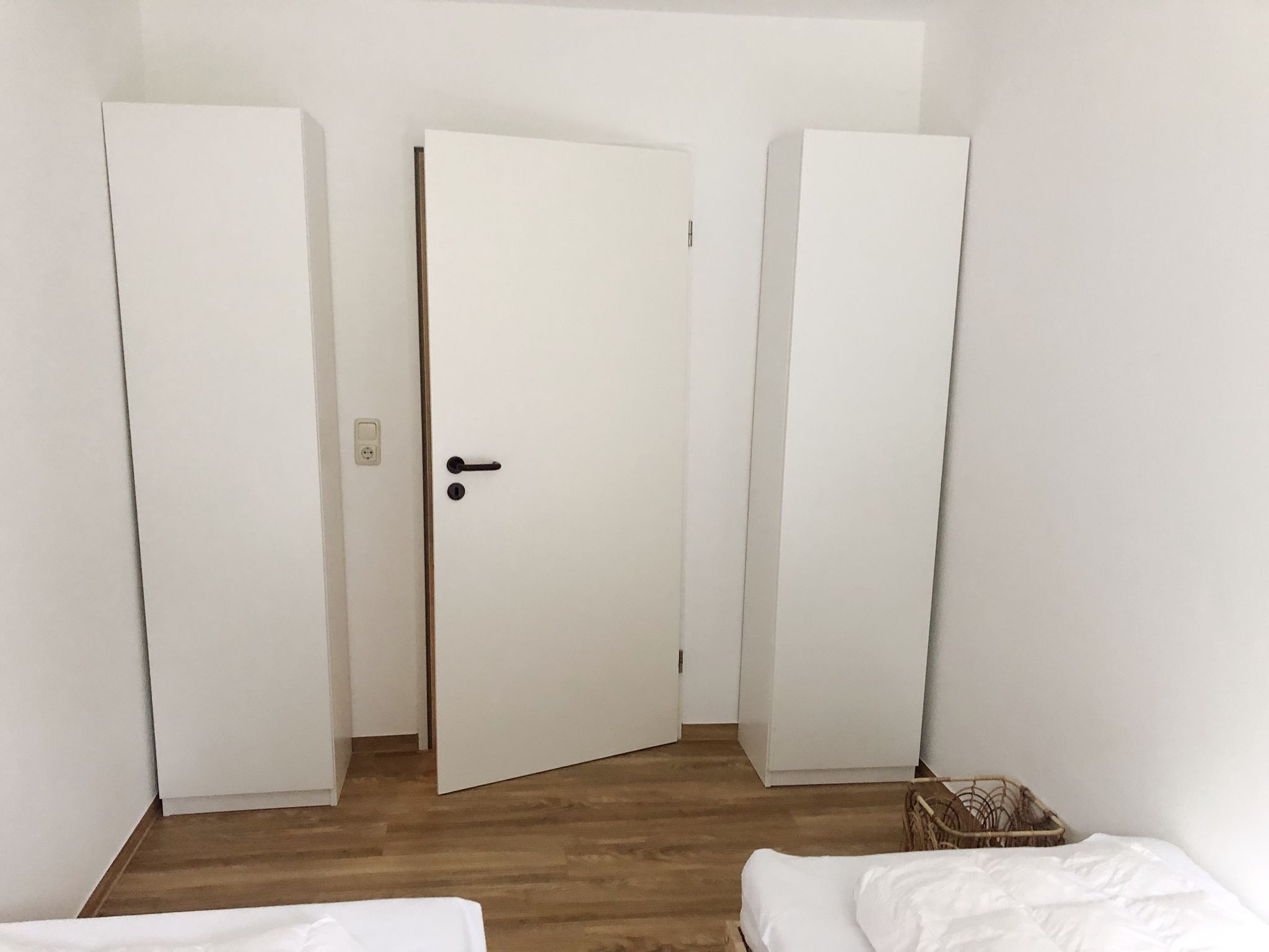 2 Einzelbetten 0,80 m x 2,00 m, 2 schmale Schränke