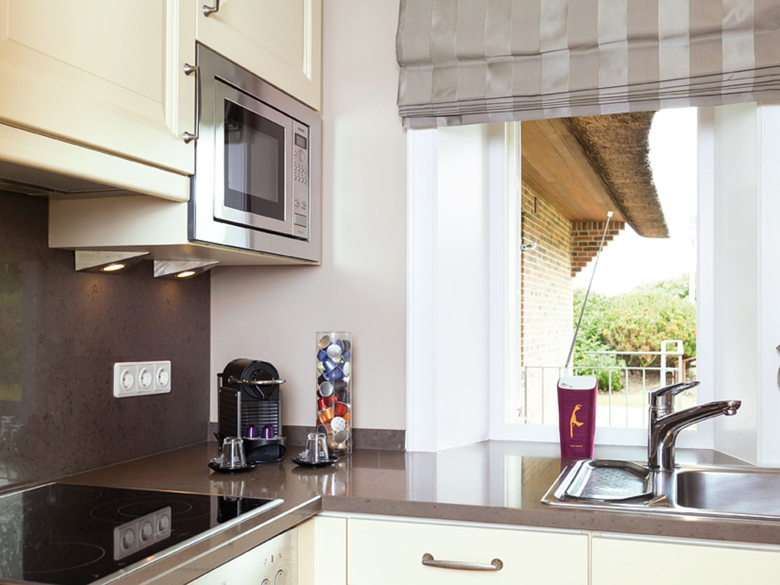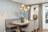 Den richtigen Rahmen für totale Entspannung und einen adäquaten Ausgangspunkt für schöne Sylt-Erlebnisse bietet dieses Hausteil auf drei Ebenen. Im Untergeschoss lädt ein Doppelzimmer zu schönen Träumen ein. Das Bad besitzt Wanne und Dusche. Im Erdgeschoss bietet das Wohnzimmer neben schönem Essbereich und gemütlicher Sofaecke, auch einen Kamin für romantische Momente. Im Obergeschoss sorgen ein modernes Duschbad und ein helles Doppelschlafzimmer für Behaglichkeit. Die Terrasse dieses Hausteils geht nach Süden hinaus und wartet mit eigenem Strandkorb auf. Für das Wohlgefühl sorgt die Sauna- Dampfbad- Oase, die allen Gästen des Prahl Hüs zur Verfügung steht.